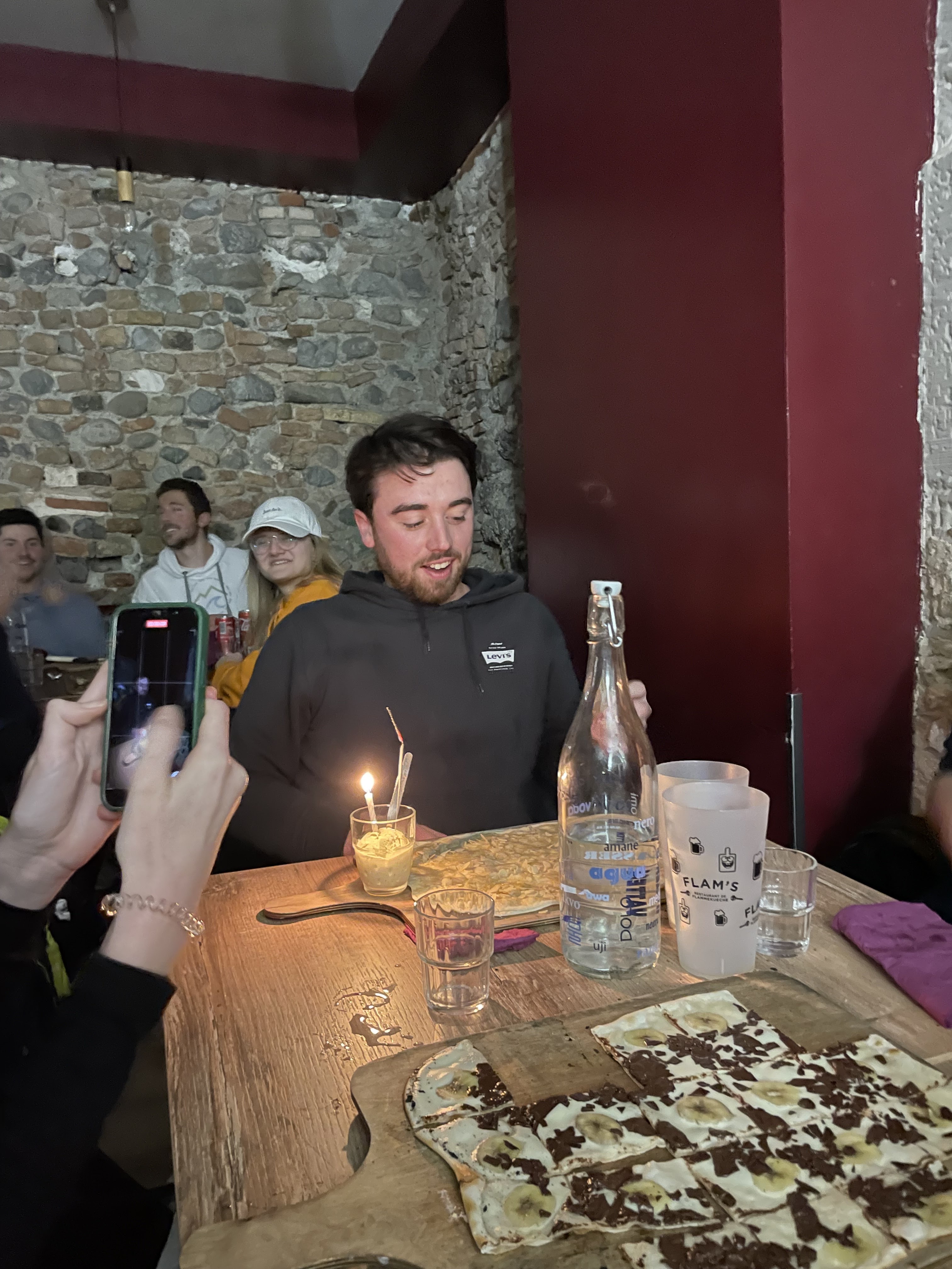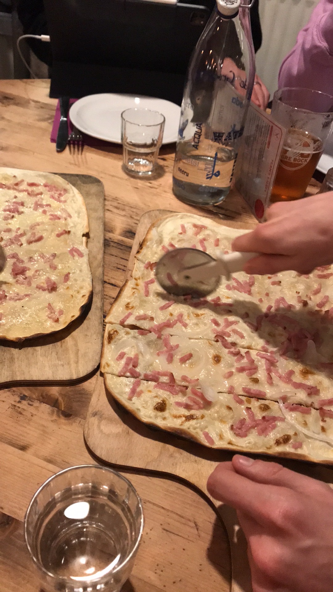 Excellente soirée. Malgré la foule, le service dépote et l’amabilité du patron est exemplaire. Les Flàmmeküeches sont excellentes, bien garnies et ce que ce soit les salées mais également et à ma grande surprise les sucrées aussi...mention spéciale pour la framboise chocolat blanc, à se damner ! Les boissons ne sont pas en reste. Avec un grand choix de cocktails au verre et en pichet. Idem pour les bières et le vin. Le tout pour une addition modérée au regard de la qualité de l’ensemble. Dernière chose mais je pense que vous l’aurez compris : pensez à réserver.