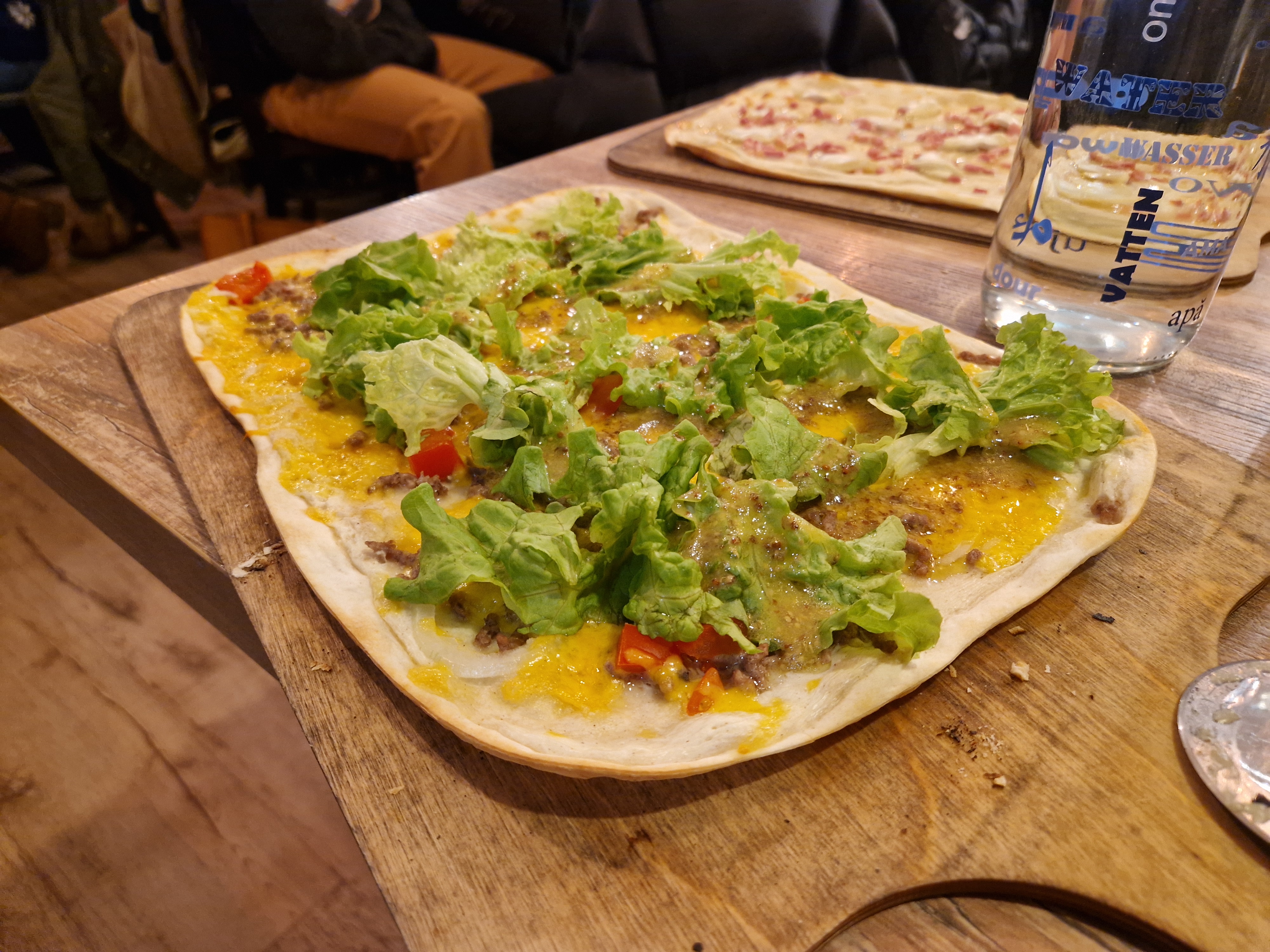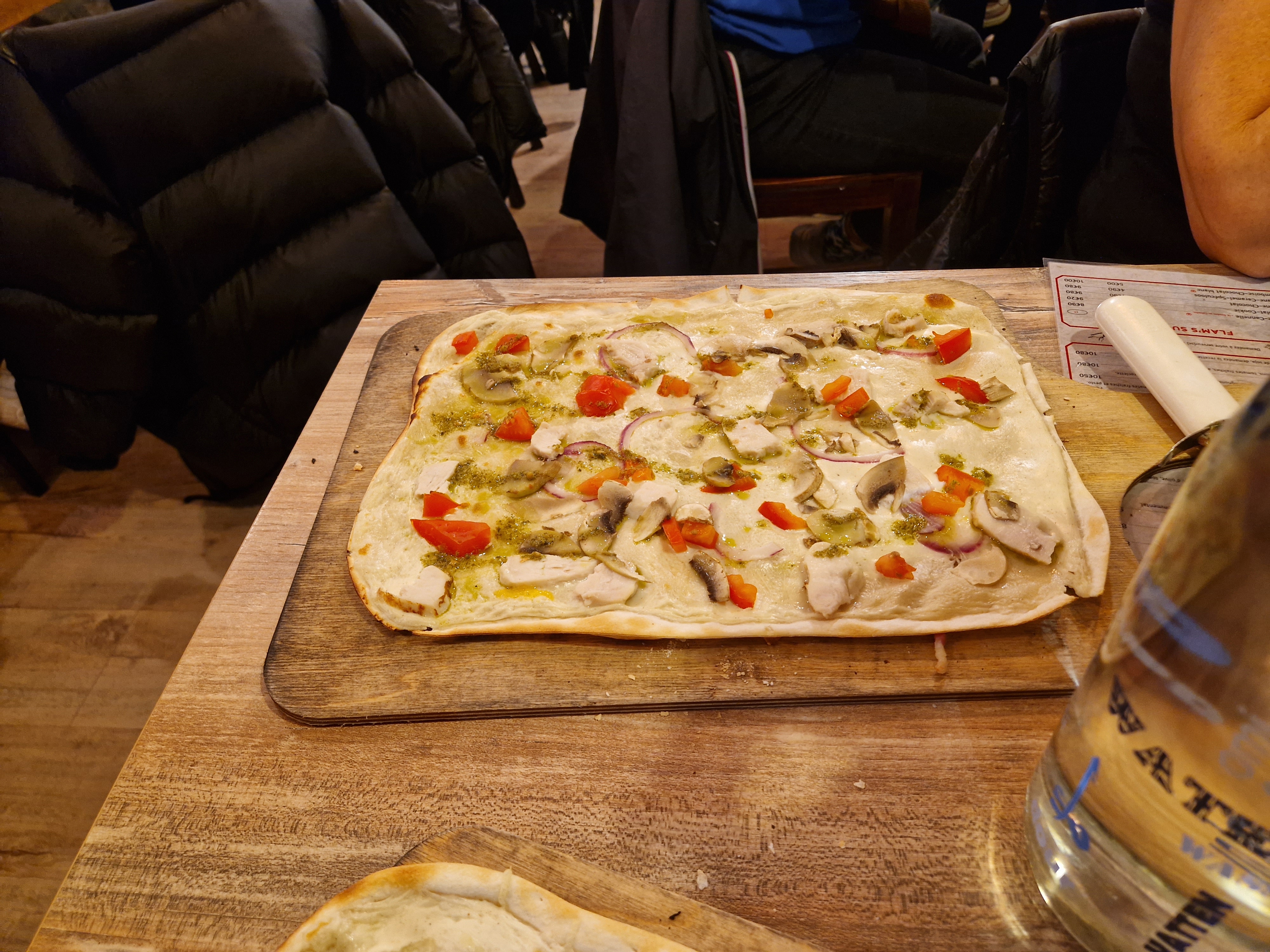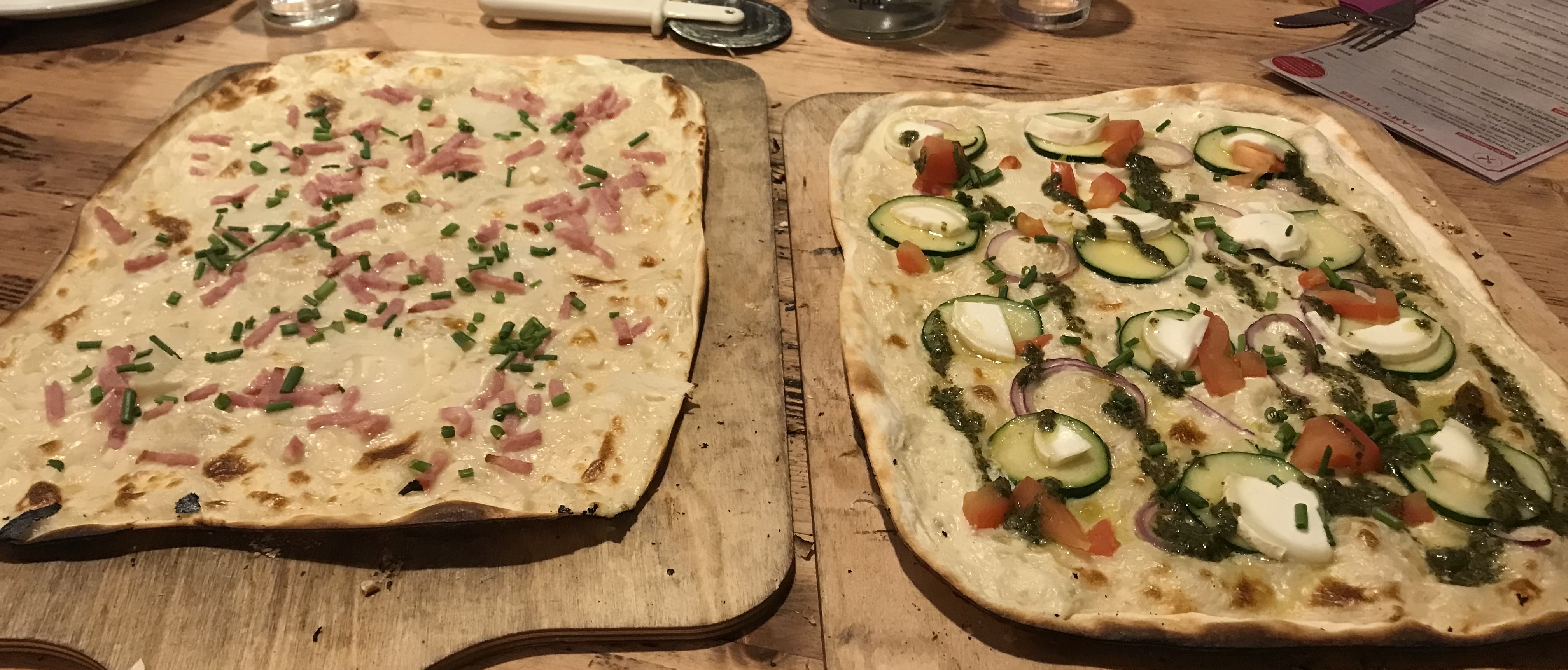 Je recommande pour les groupes ! (Nous étions 15) A éviter pour un repas en amoureux car bruyant. Formule à volonté avec toute la palette de flamekuches de la carte. Large choix de desserts. Service efficace et sympathique.