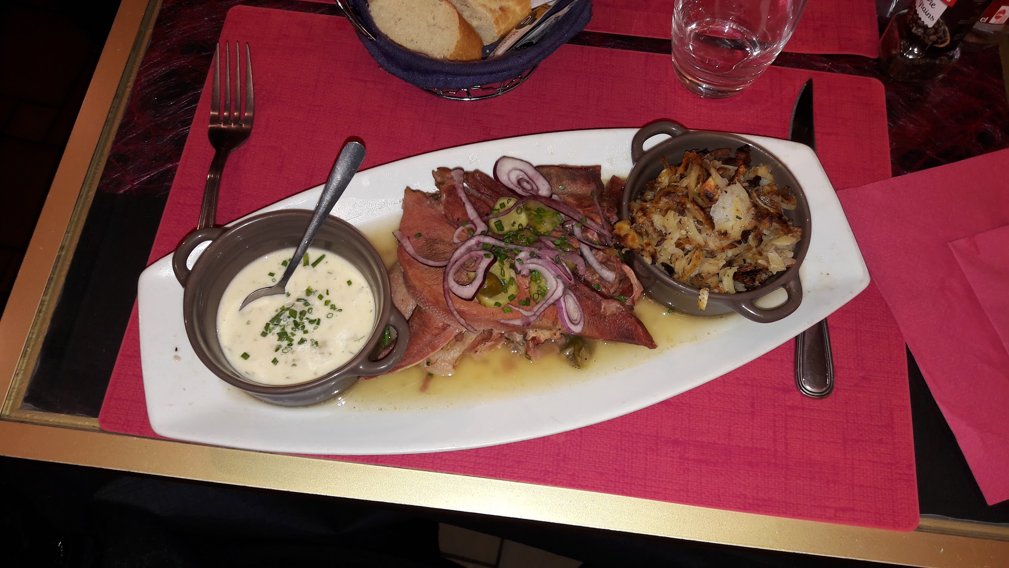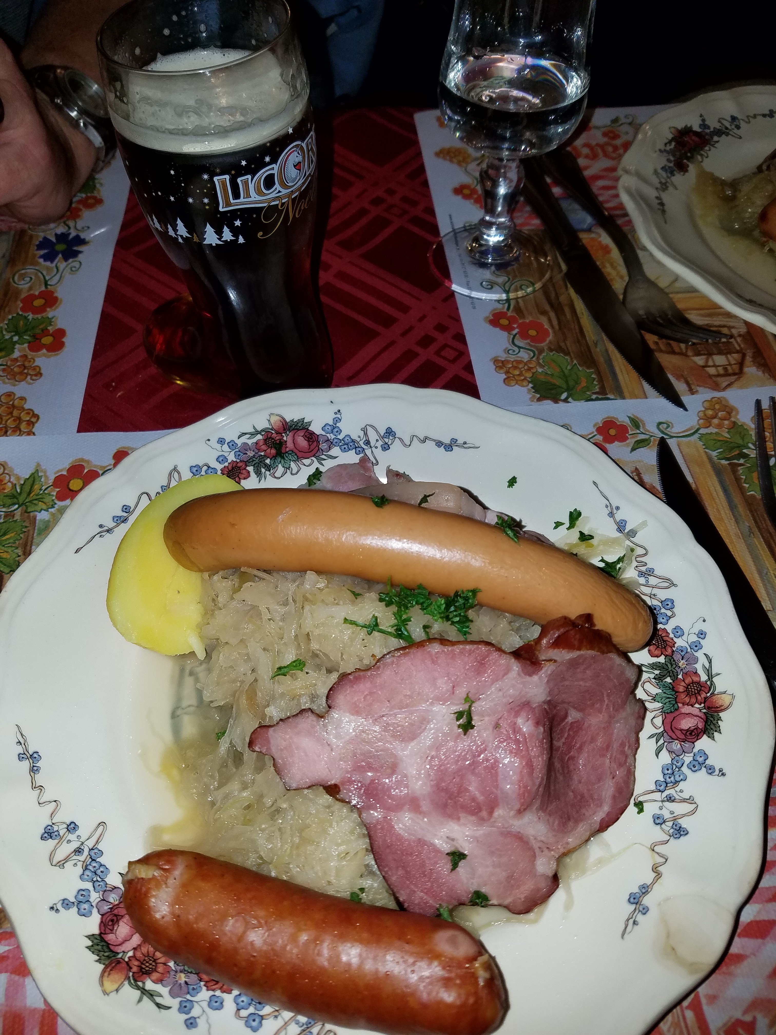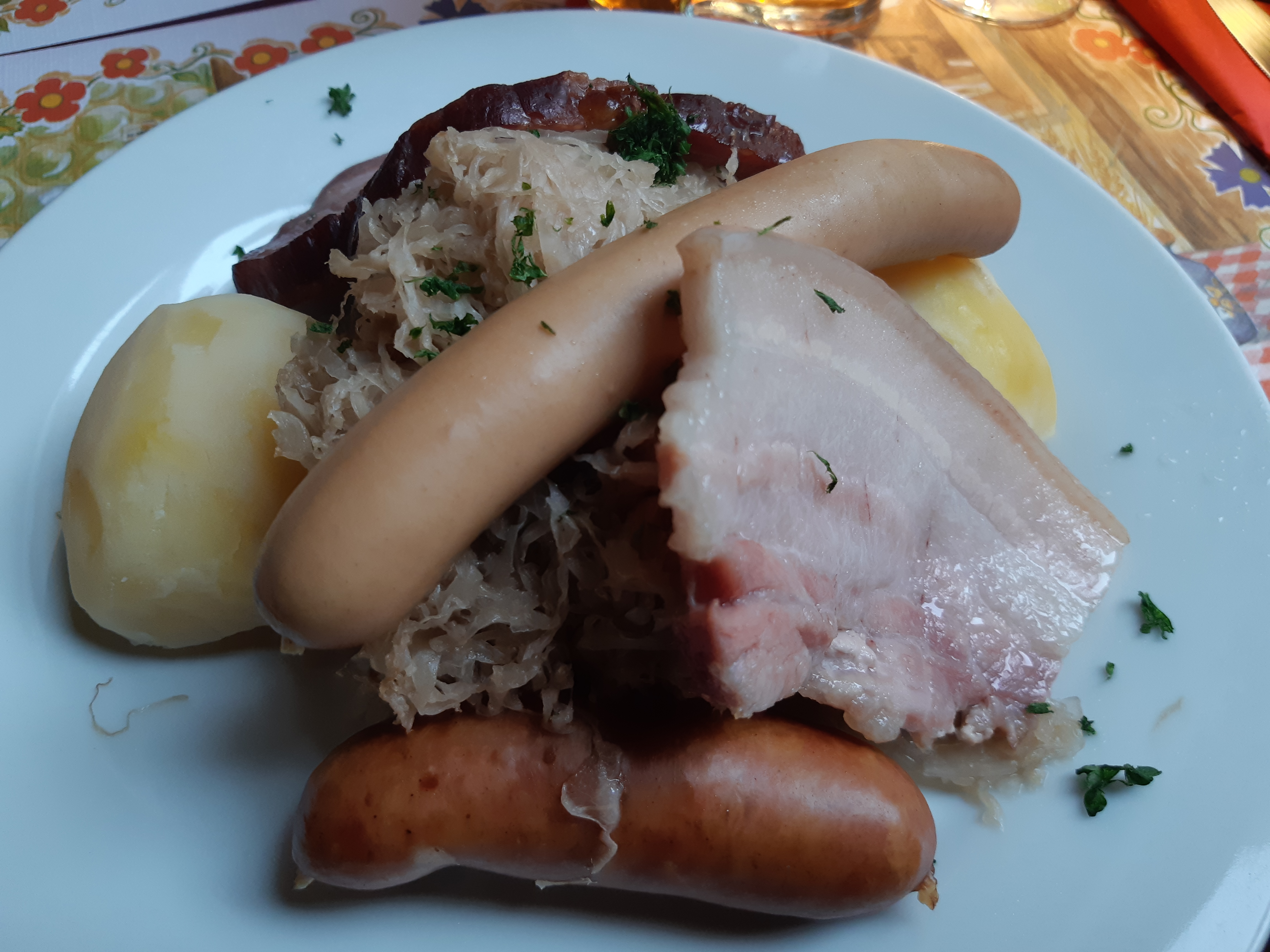 Bonne choucroute. Mais il faisait froid dans le restaurant et la serveuse à commencé à débarrasser la table avant qu'on ait tous fini de manger ! Elle semblait pressée de finir son service.