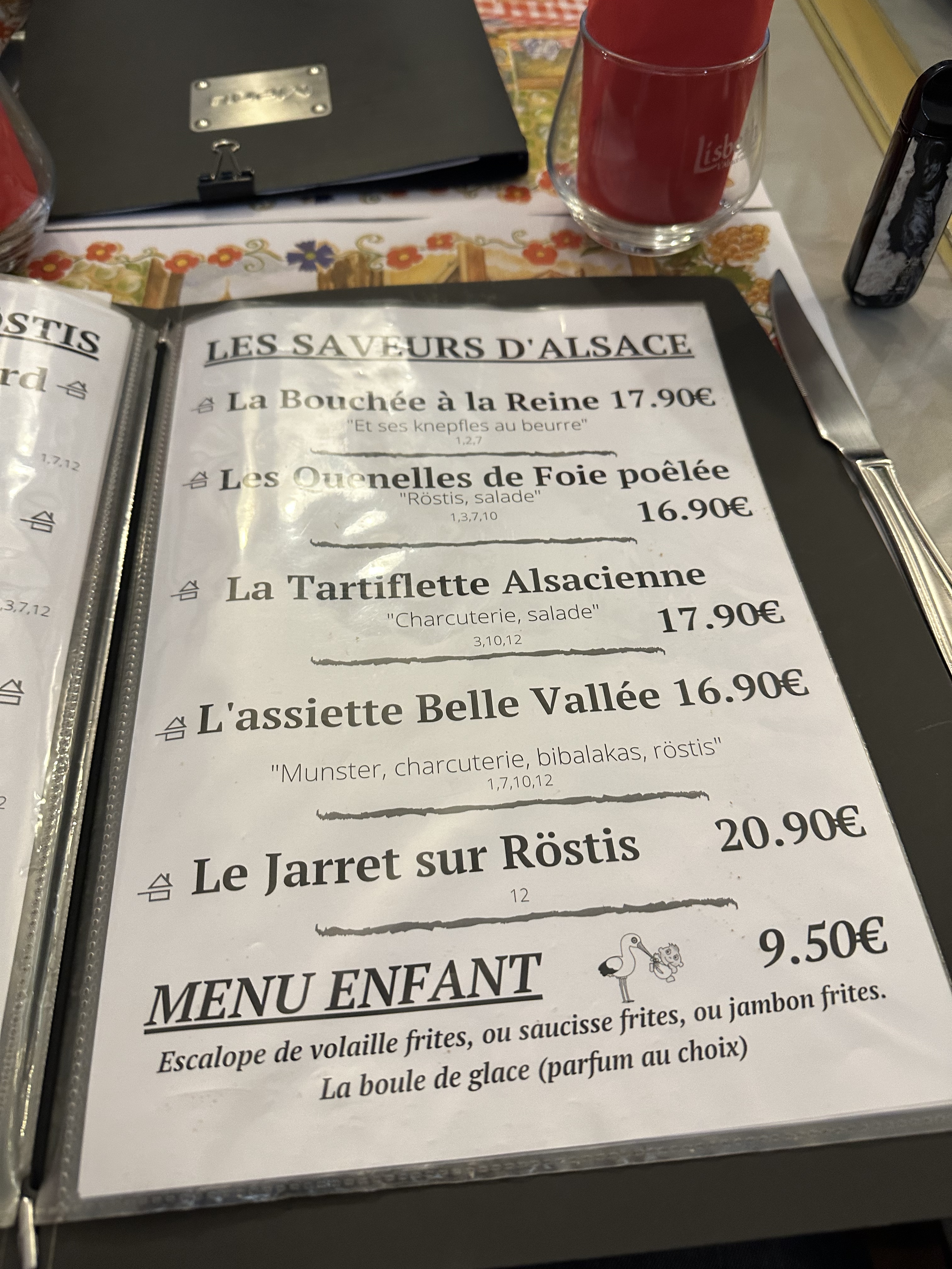 Restaurants typique alsacien plats délicieux et des prix très correct