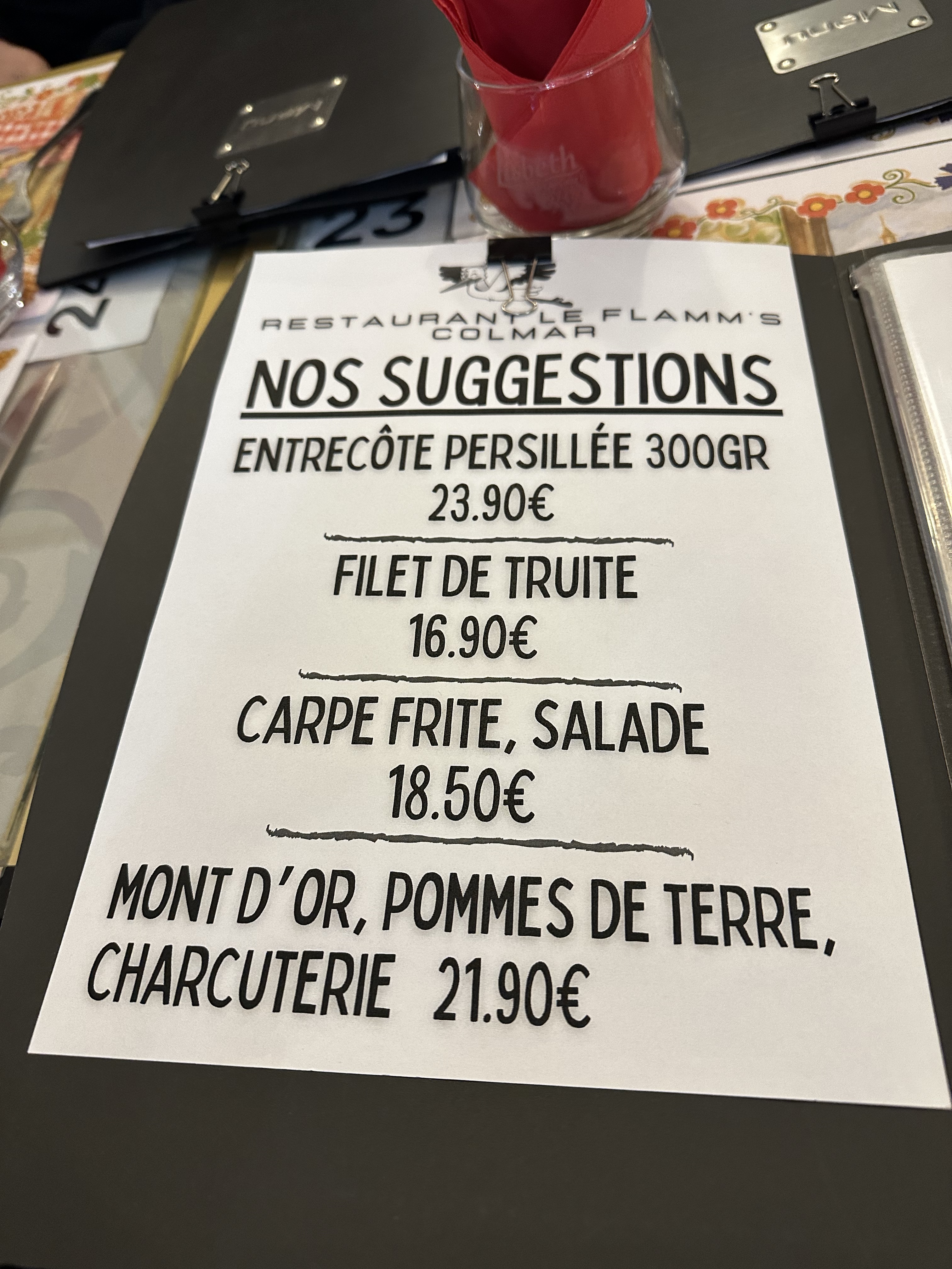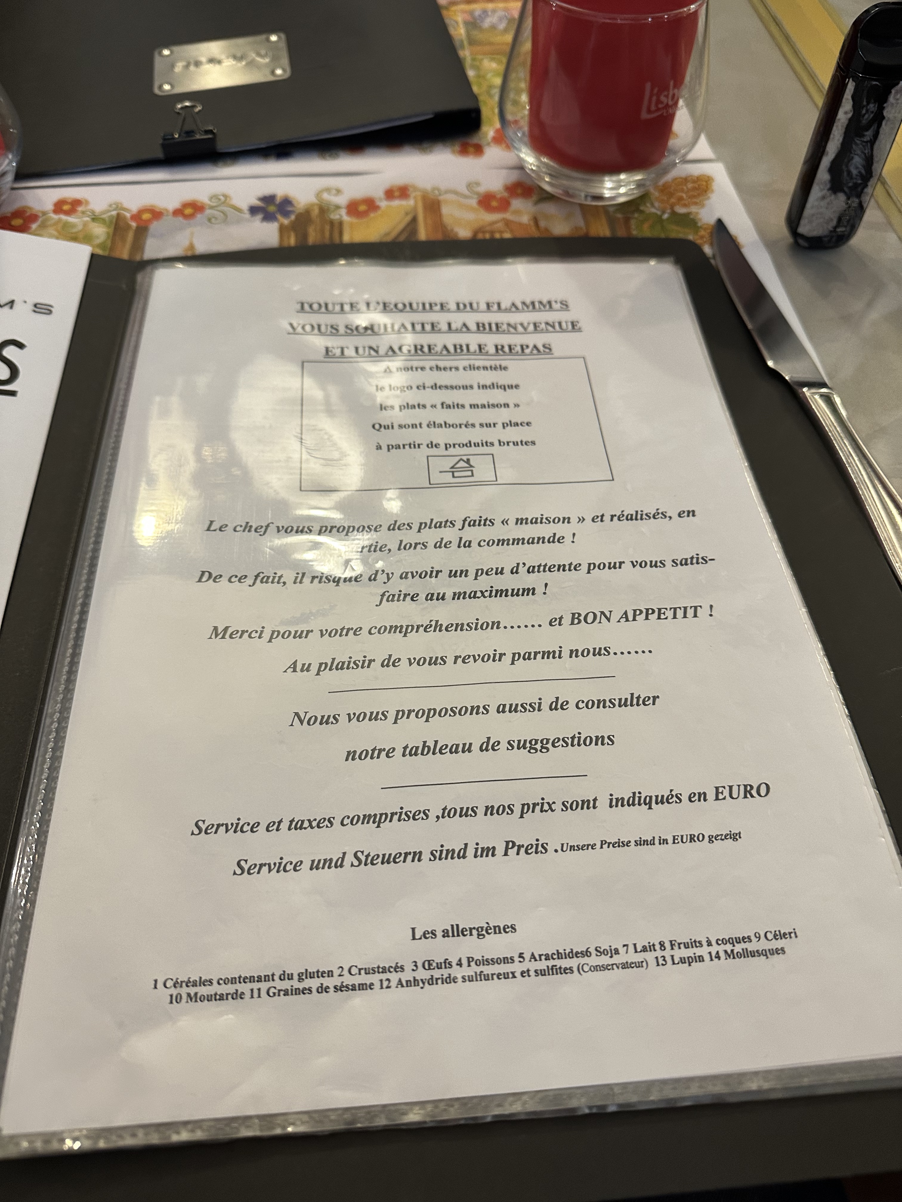 Après avoir fait plusieurs restaurants a Colmar et d'autres à Strasbourg (franchement déçus de quelques uns) je suis tombé sur le flamm's qui paye pas de mine mais quand on prend le temps de découvrir on trouve un cadre typique, sympathique et une cuisine digne d'Alsace avec une cuisine annoncée comme presque entièrement faite maison(sauf quelques desserts). Excellent rapport qualité prix, un des meilleurs de Colmar!!