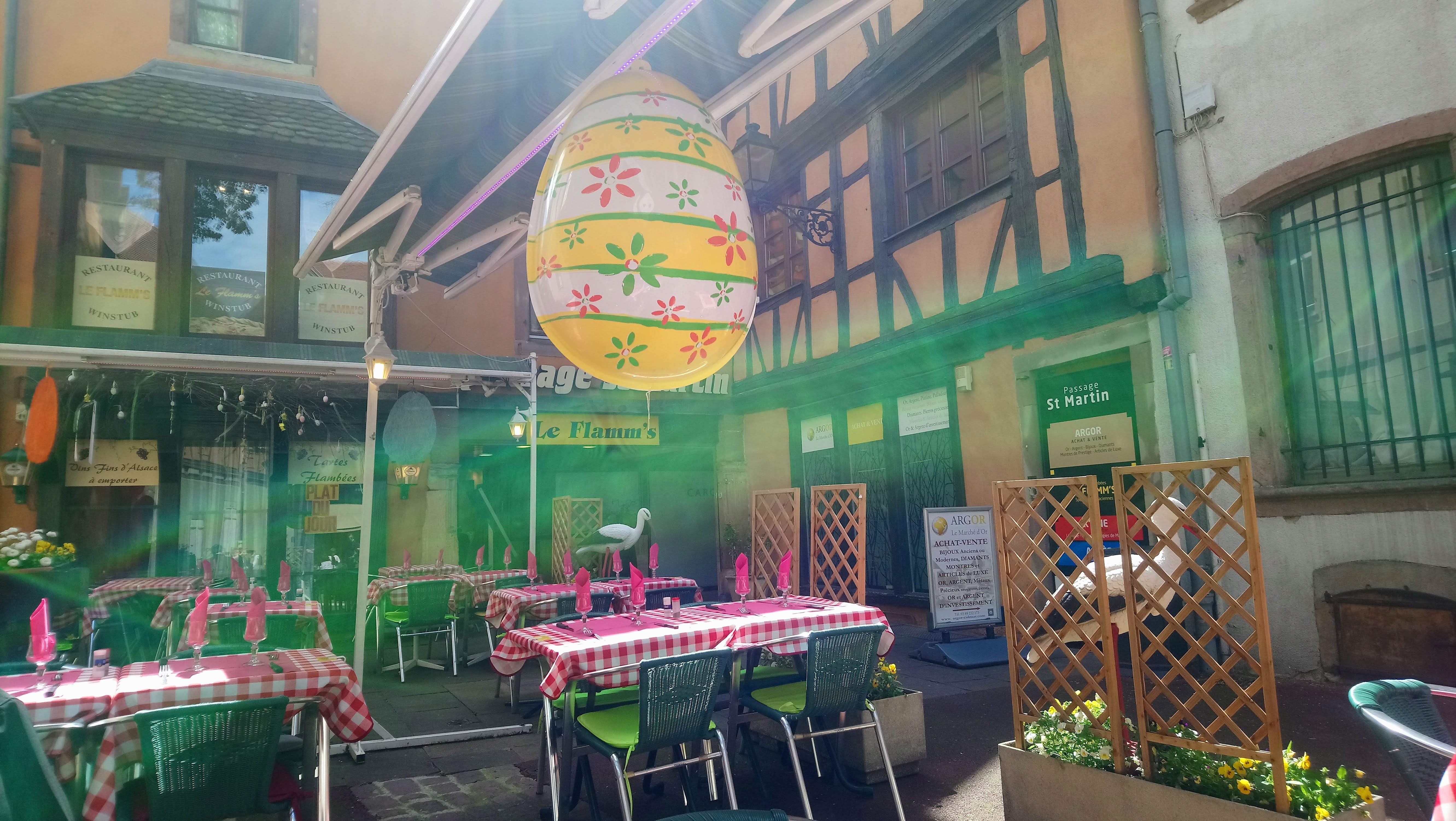 Très sympathique dîner en terrasse avec des tartes flambées qui ont tenu leurs promesses. Le dessert kouglof glacé était également très bon, arrosé de liqueur local. Pas tjrs facile de trouver l'entrée : il faut passer par le passage St Antoine