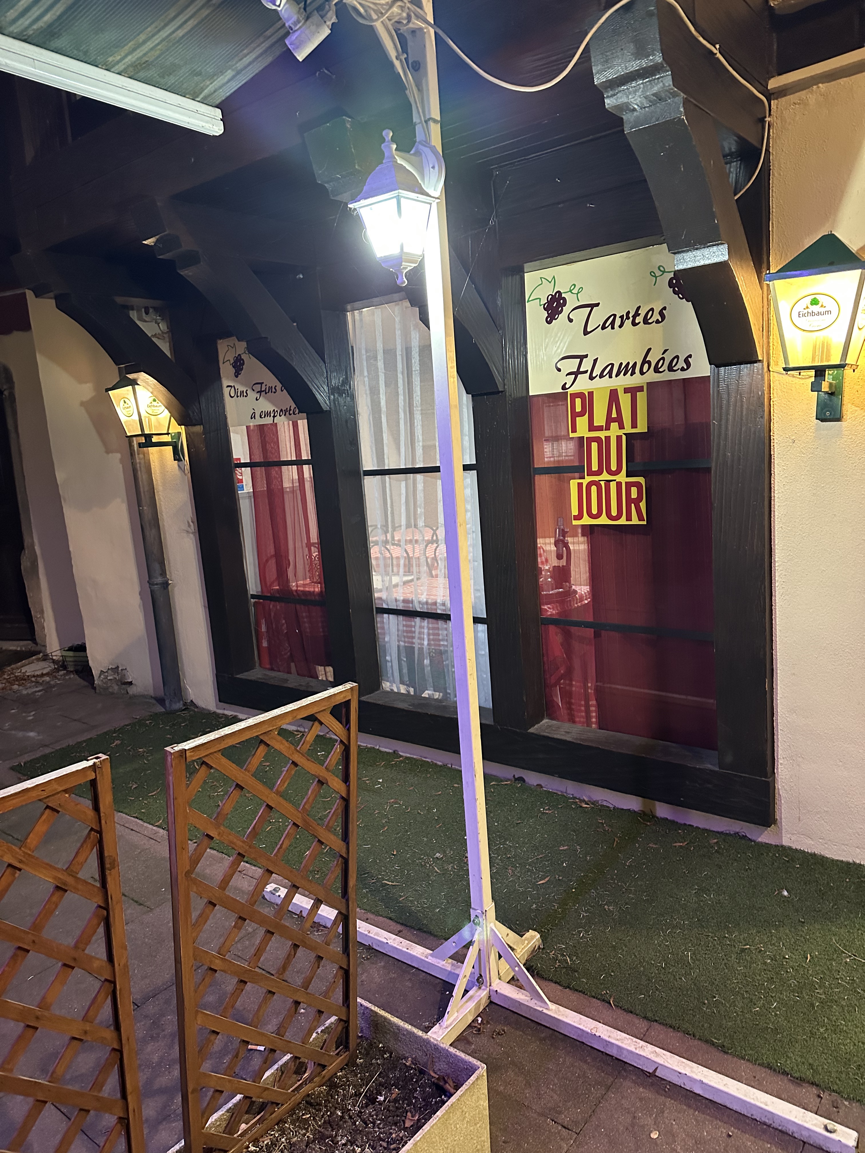 Plats très bons (flam’s et tourte alsacienne) Une serveuse sympa, les autres viennent vous voir toutes les 3 minutes pour les mêmes questions (boisson, plat, si ça va). On sent qu’on nous pousse à consommer vite et partir (heureusement que notre serveuse avait compris que nous n’étions pas forcément pressé!). Bonnie Tyler en première ligne, qui grimace devant nous lorsque nous demandons à attendre qq minutes avant d’être servies 🤨 Pourtant, le restaurant était loin d’être plein un samedi soir à 19h30…..