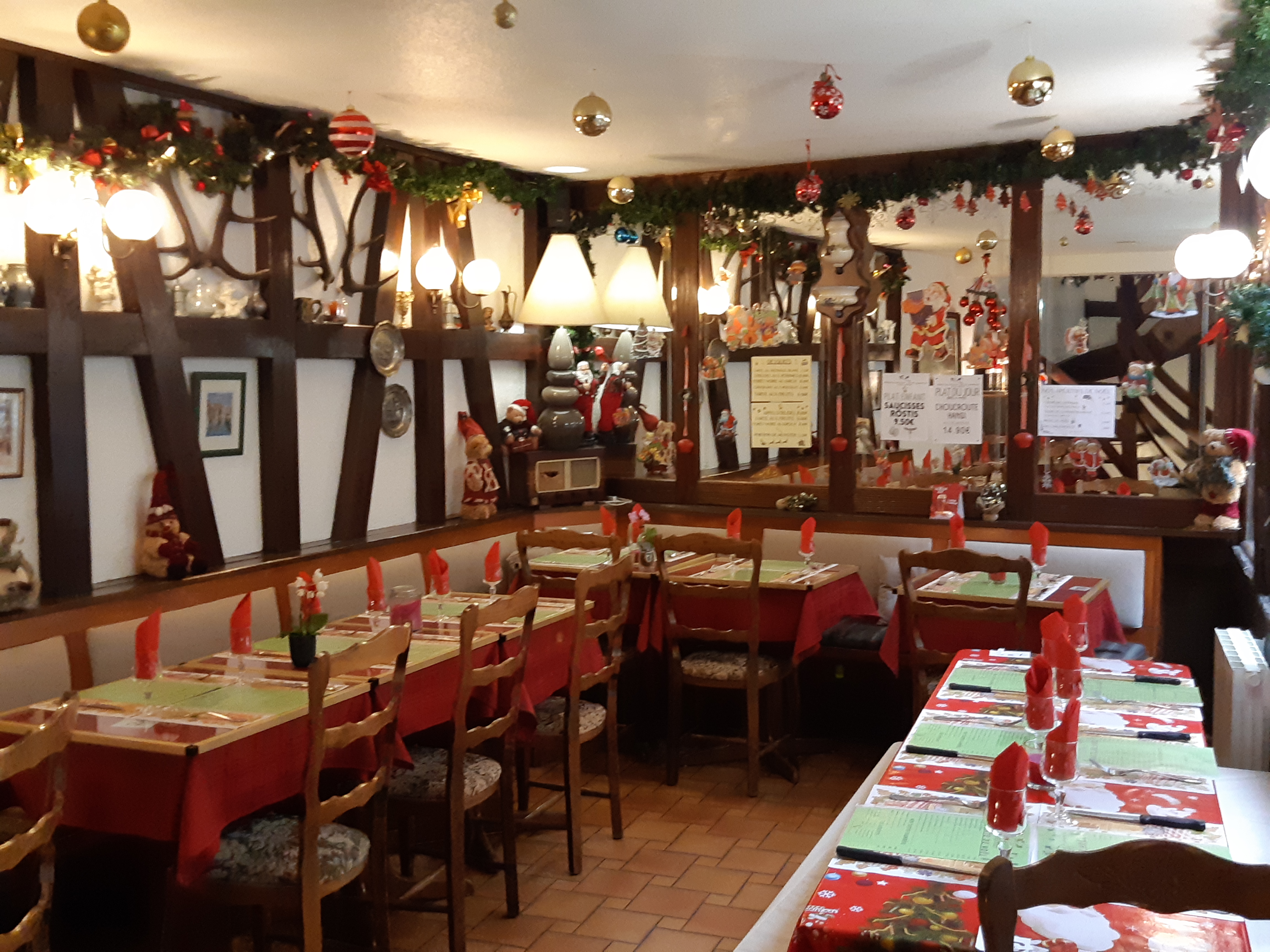 Une devanture qui ne paie pas de mine mais quelle bonne découverte !! De passage pour le marché de Noël, nous avons pu nous faire servir après 21h et c'était très appréciable. Un restaurant très chaleureux, typique et familial. Merci à notre serveuse pour son sourire et sa disponibilité ! Nous avons craqué pour la choucroute (grand format pour Monsieur et petit format pour madame) et une assiette de frites pour les enfants. La serveuse n'a pas mal pris que nos enfants n'aient pas très faim et se partagent une assiette de frites. Les desserts (forêt noire et cheesecake ) étaient très aériens et sont très bien passés après la choucroute. Alors n'hésitez pas à pousser la porte! Le tout pour des prix très raisonnables !