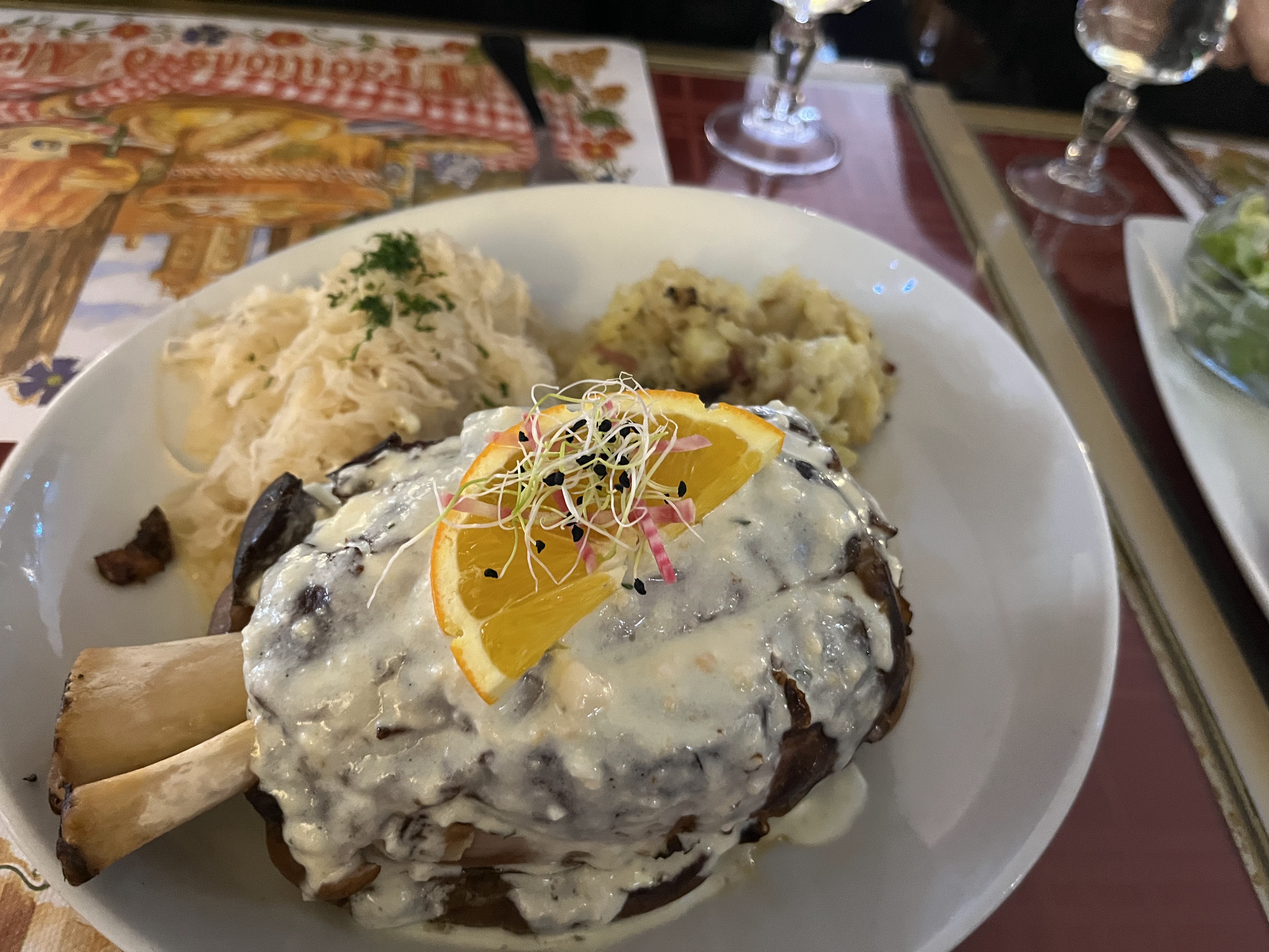 Très bien reçus, le repas est copieux, nous avons pris un jarret à la sauce munster, choucroute et roesti, nous n'avons pas réussi à finir. Nous recommandons vivement.