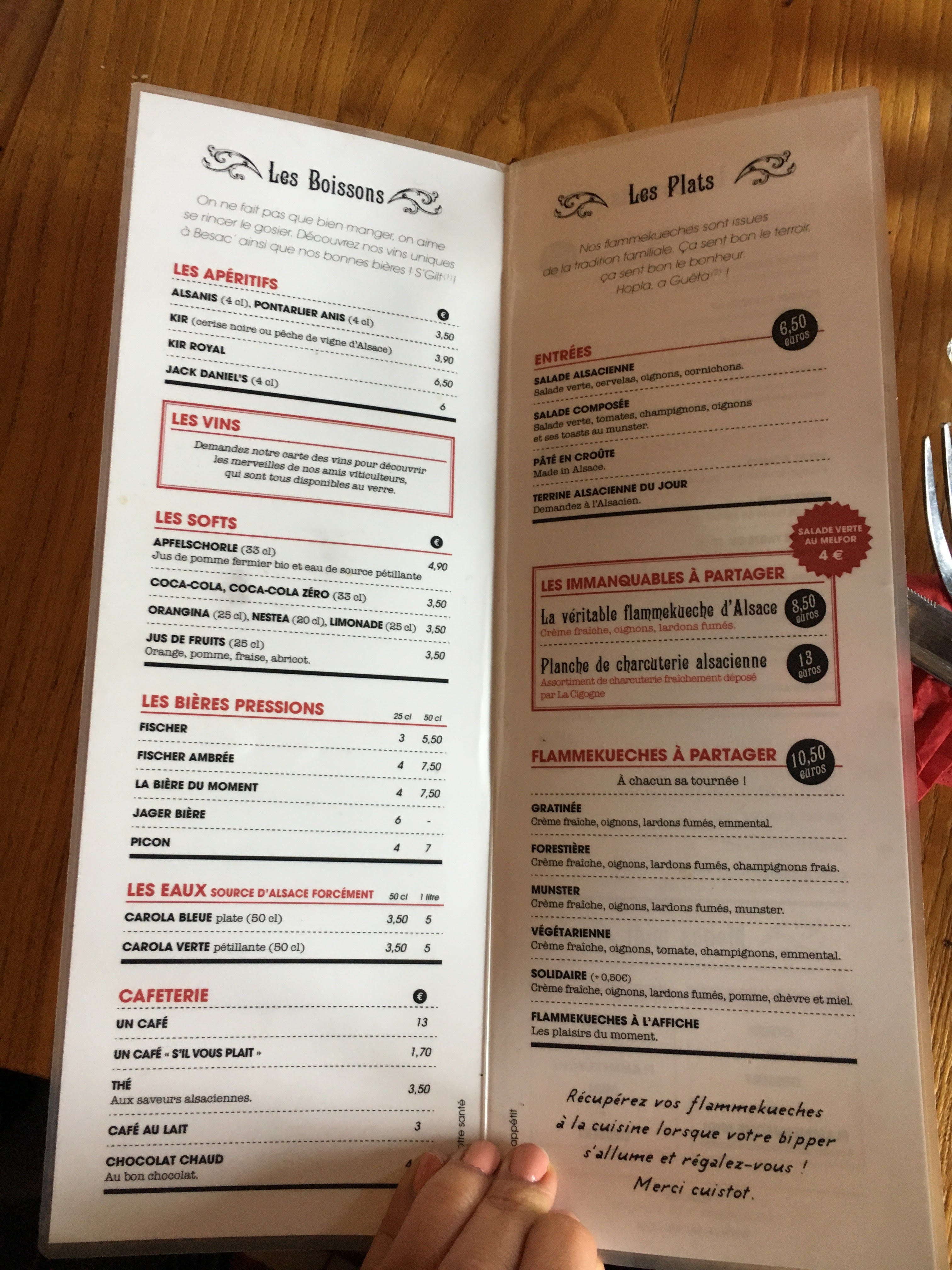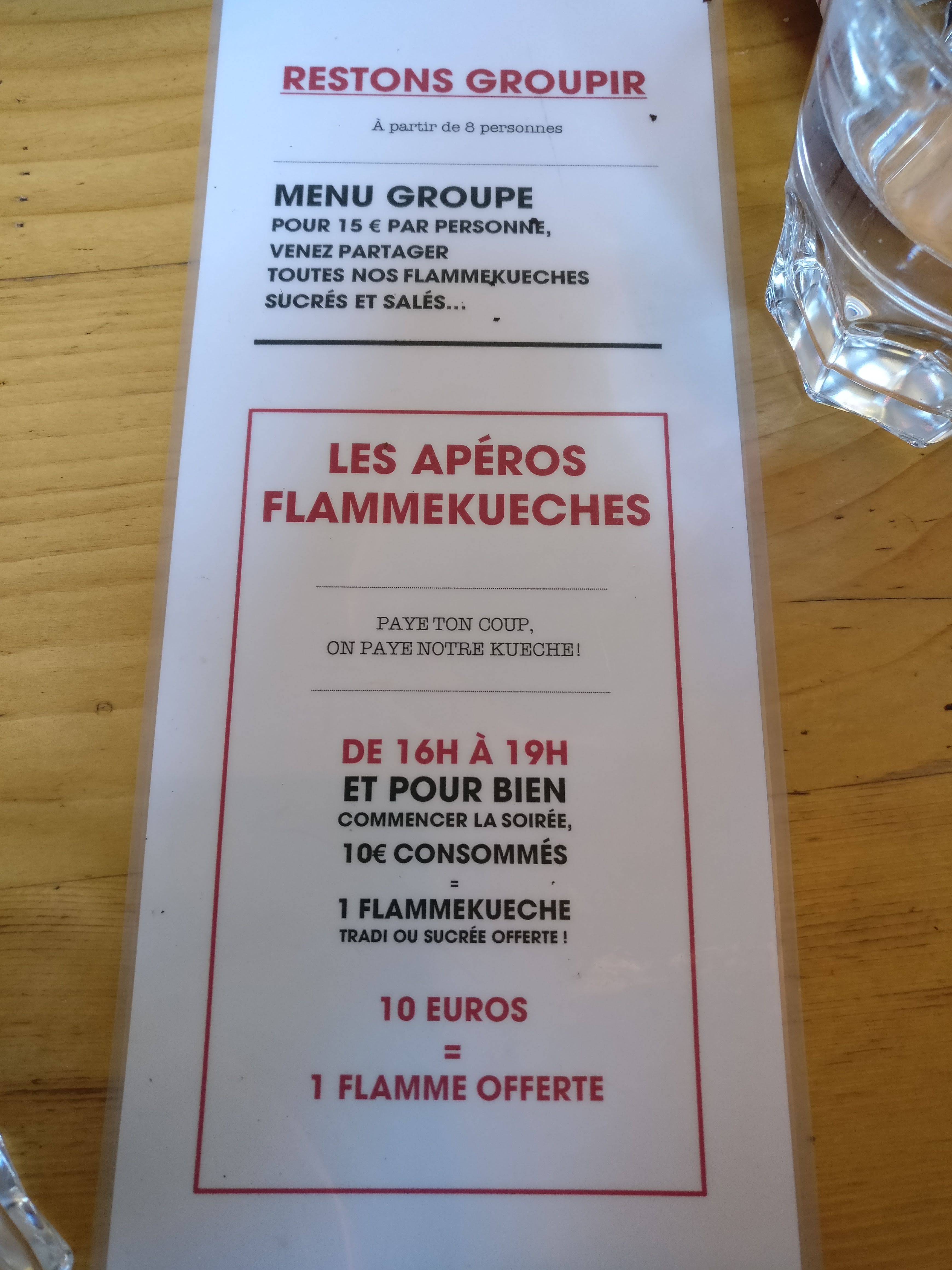 Le flammekuch c’était très bon, je n’ai aimé le service que devrait être par force à partager