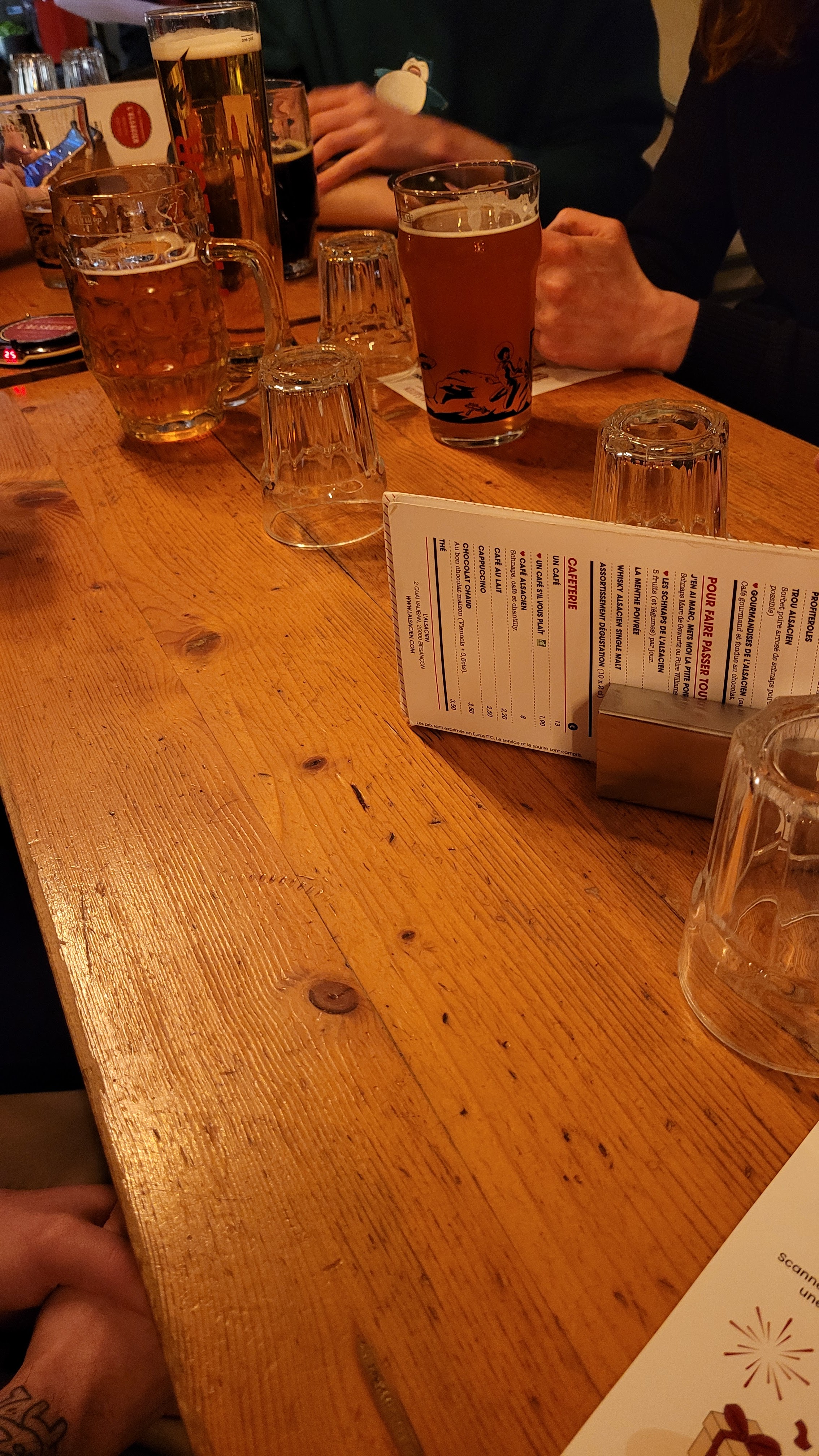 C'est génial, le lieu est bien situé dans le centre, et le concept est super, simple et efficace : bières et partage de tartes flambées délicieuses. Le service est top. Merci beaucoup pour cette excellente expérience. On a essayé la traditionnelle, la forestière, et la munster. Un régal. Par contre, attention à la bière Hara-kiri... 😁