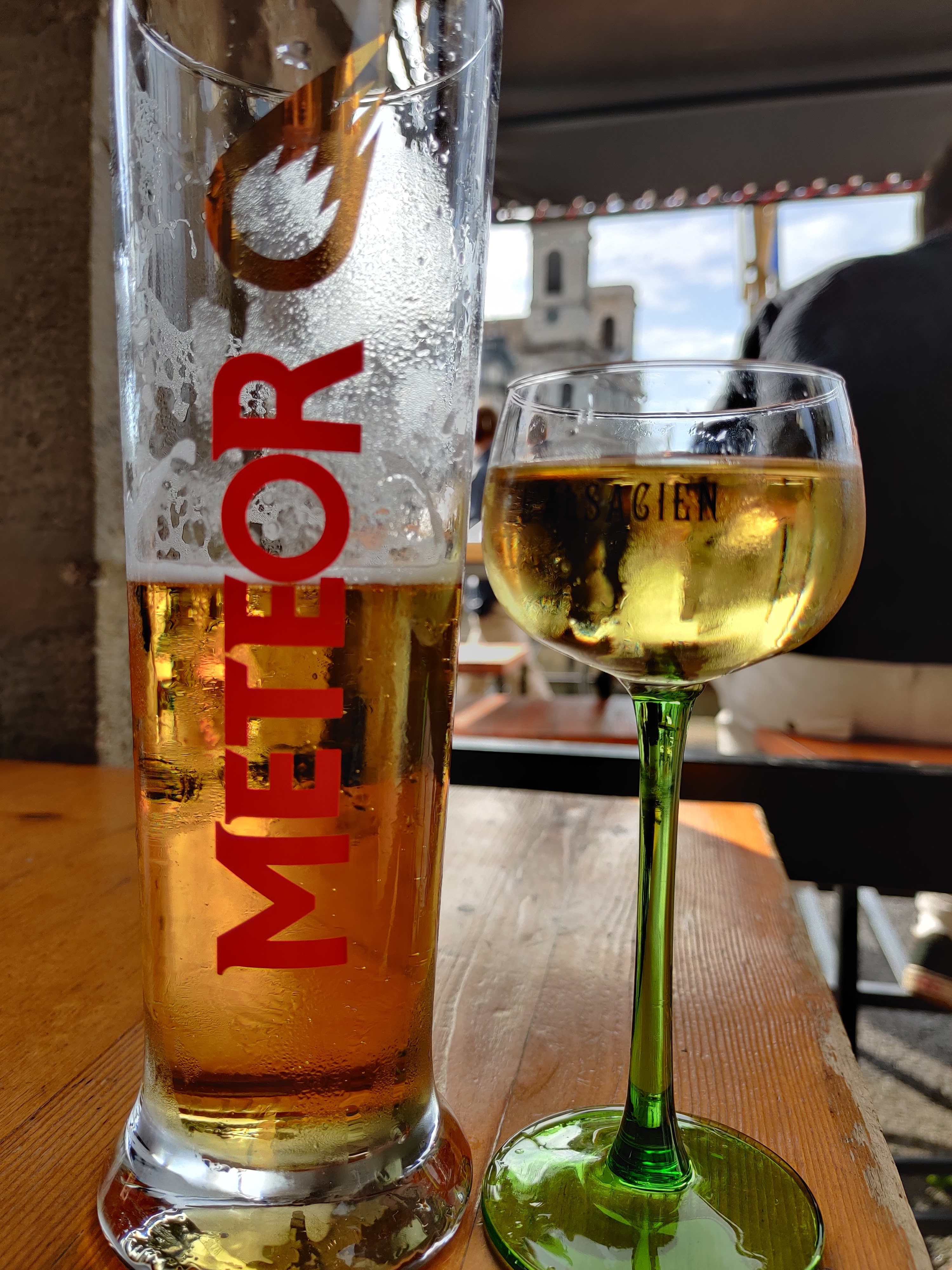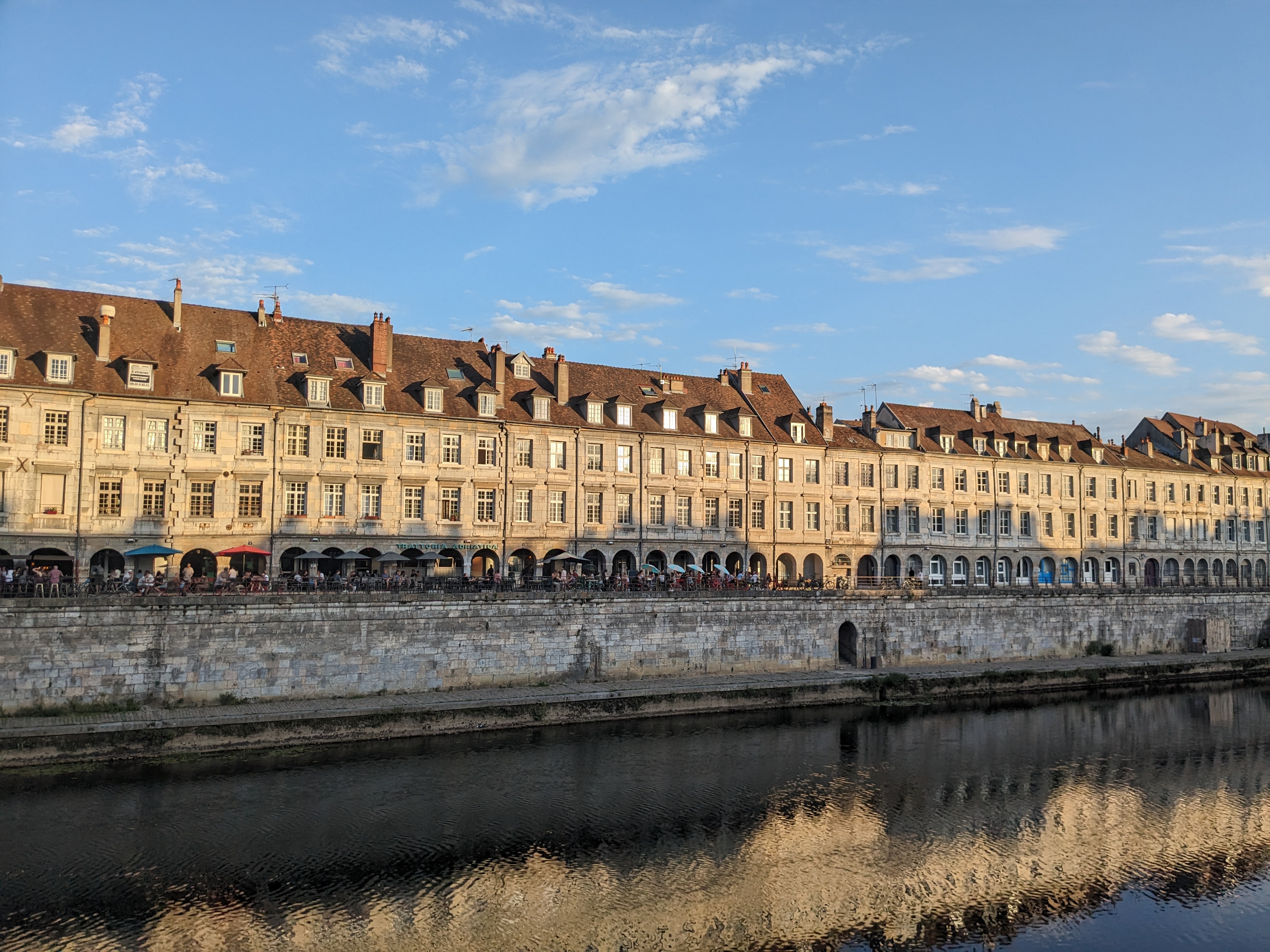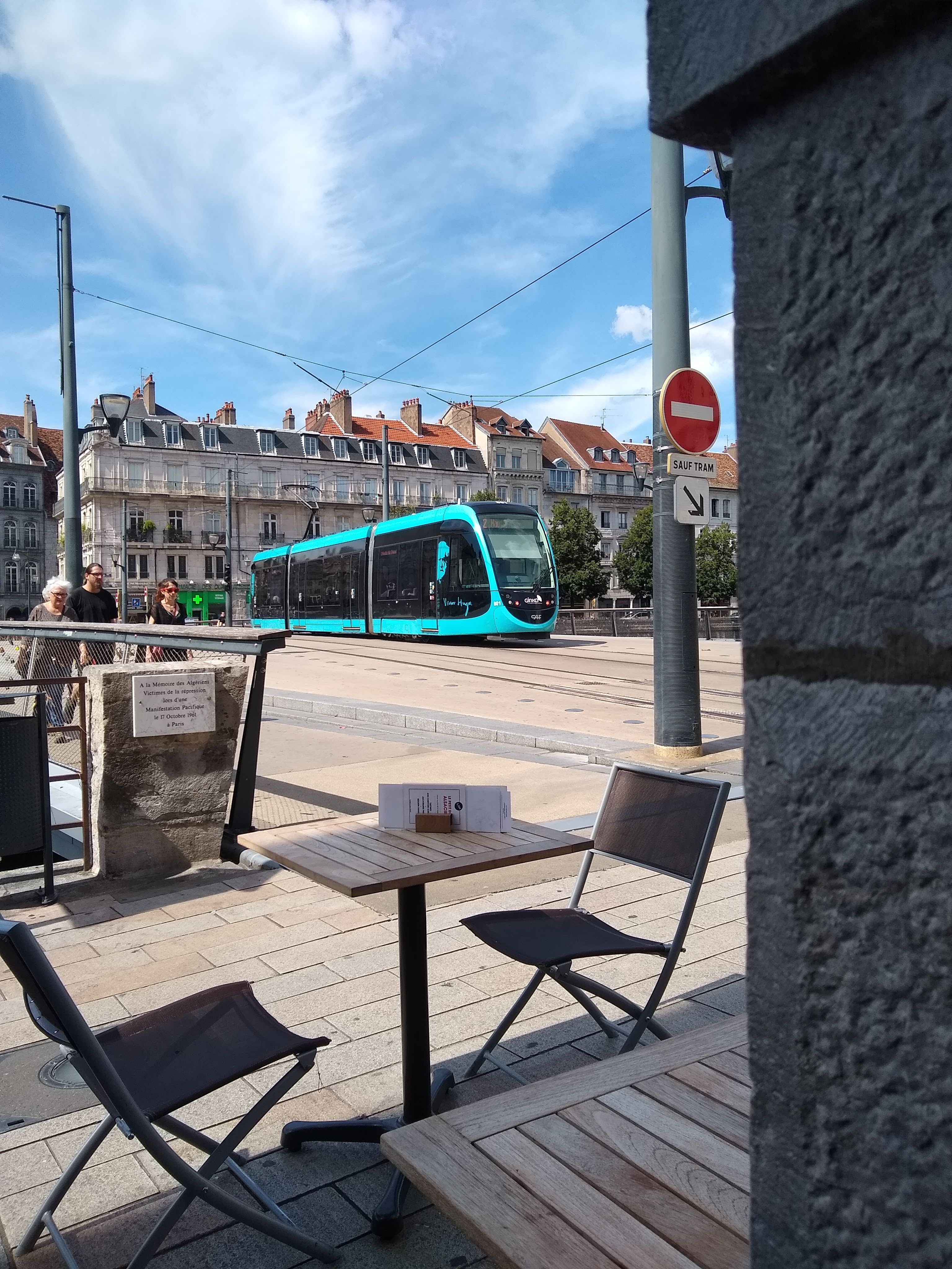 C est sûrement la plus belle terrasse de la ville. Avec vue sur le pont battant m, le Doubs, l'église de la Madeleine et une partie du quartier battant. Bonnes flamenkuches, tarifs corrects et service souriant et très pro.
