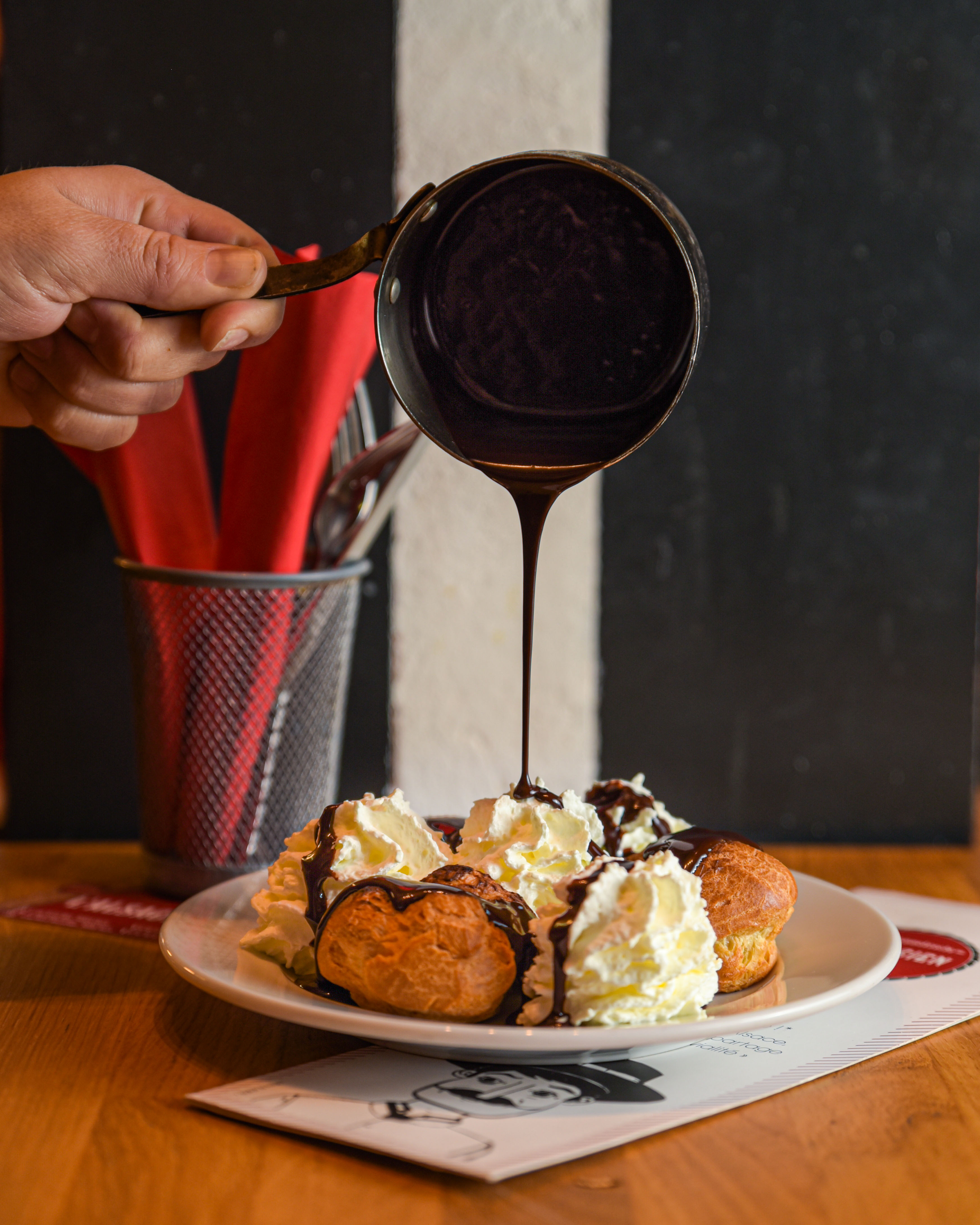 Journée d’octobre ensoleillée et bien agréable le long du Doubs pour déjeuner sur une table à l’extérieur. Très bon accueil de la part de Victor et Mathieu, serveurs très souriants 😉 et chaleureux 👍 formule à 15€ (entrée ou dessert + plat) les flammekueches sont très bonnes. Il nous a proposé de les servir unes par unes à partager pour les savourer chaudes, excellente idée 👌 bon vin conseillé pour le repas… Le dessert était très copieux mais dommage que l’intérieur des choux (profiteroles) soient vide et un peu sèches… Les autres desserts ont été appréciés, dont un flambé au Pontarlier merci 🙏 Hélène 👌 quoi qu’il en soit j’y retournerai avec plaisir…