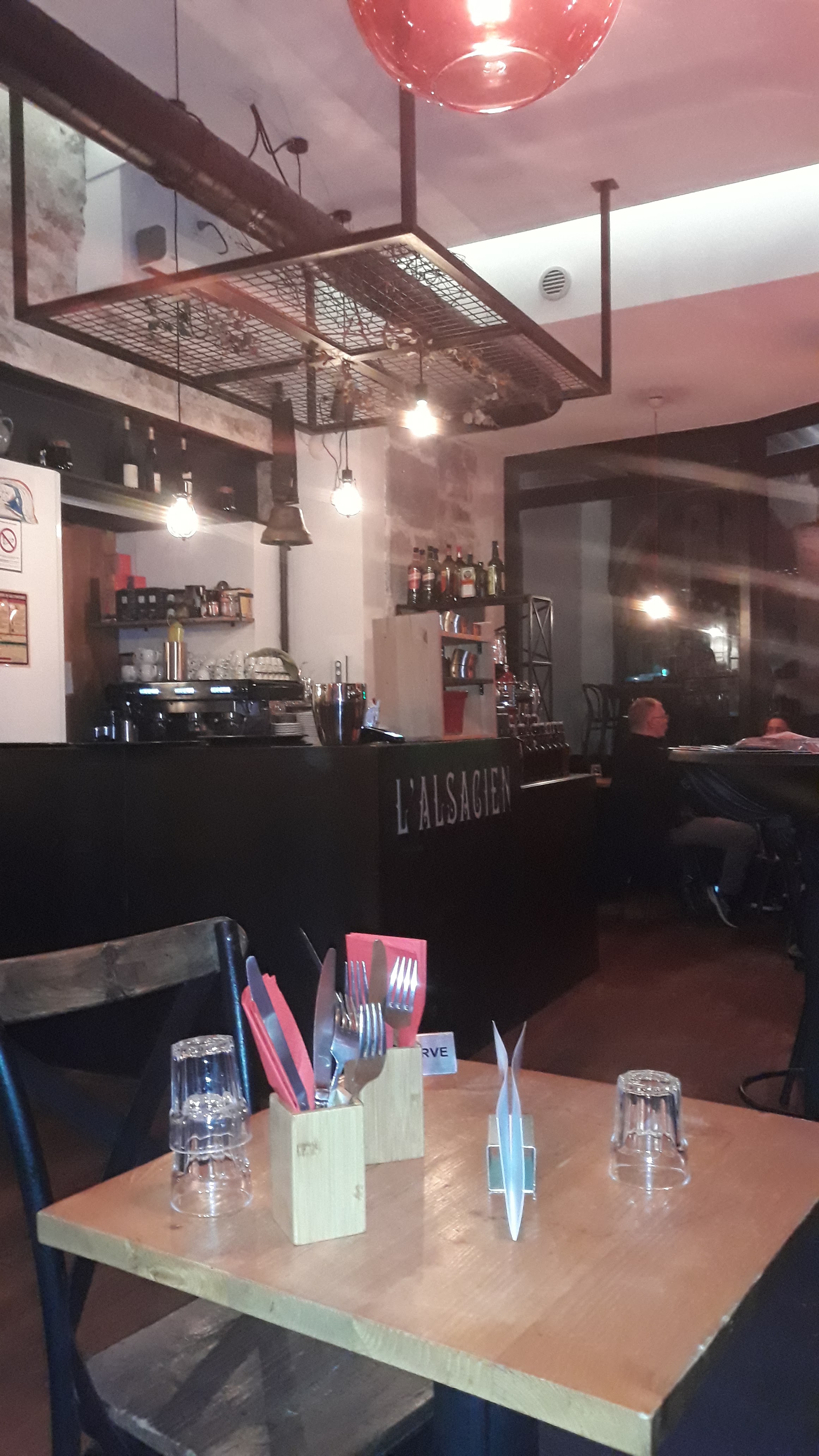 Cher Romain, Merci d'avoir choisi L'Alsacien pour y déjeuner et d'avoir partagé votre opinion. Votre bonheur fait le notre. :) Nous constatons avec plaisir que vous avez pu profiter de nos plats. Nous espérons avoir le plaisir de vous revoir très vite. Bisous et Flammekueches