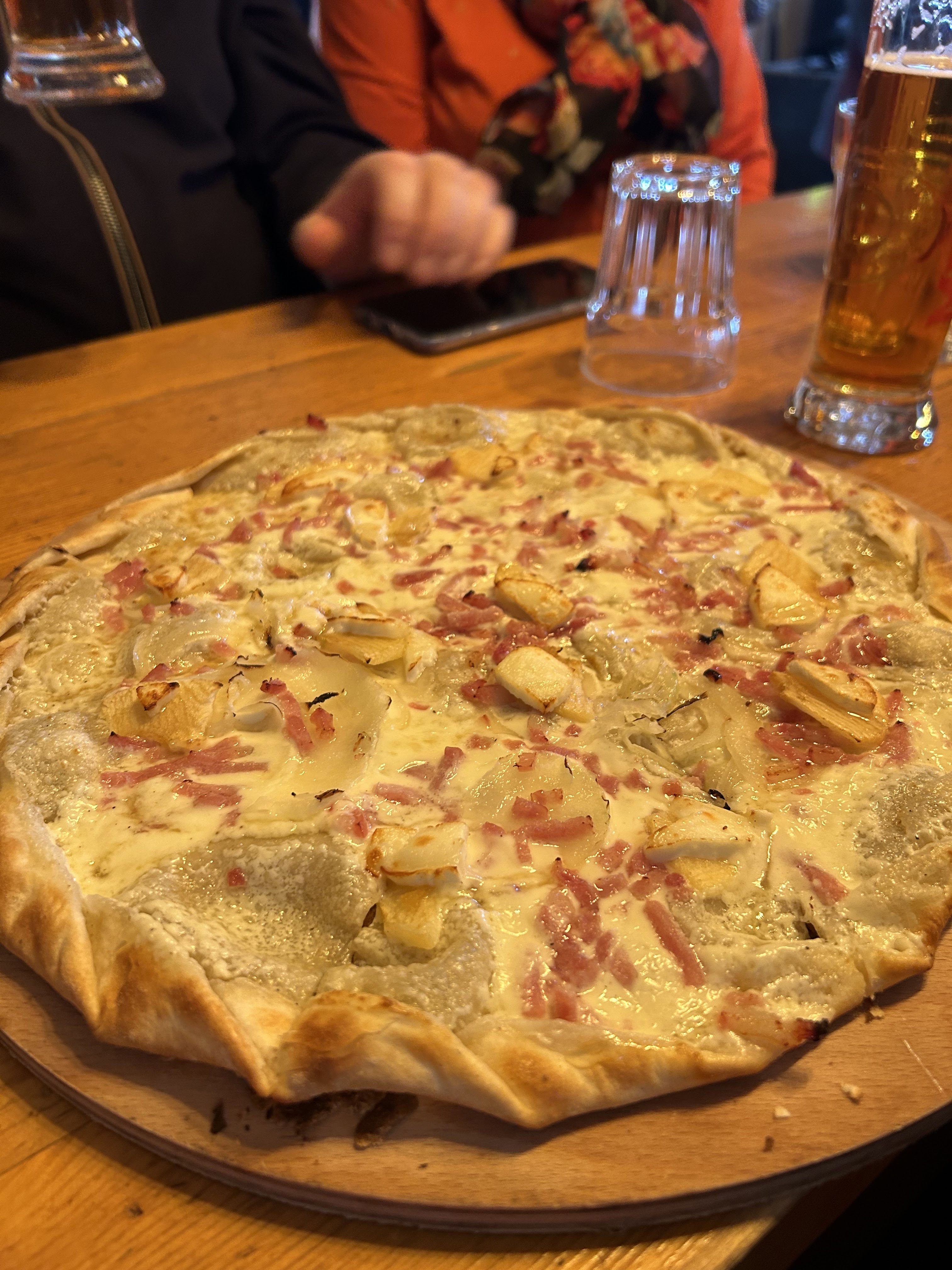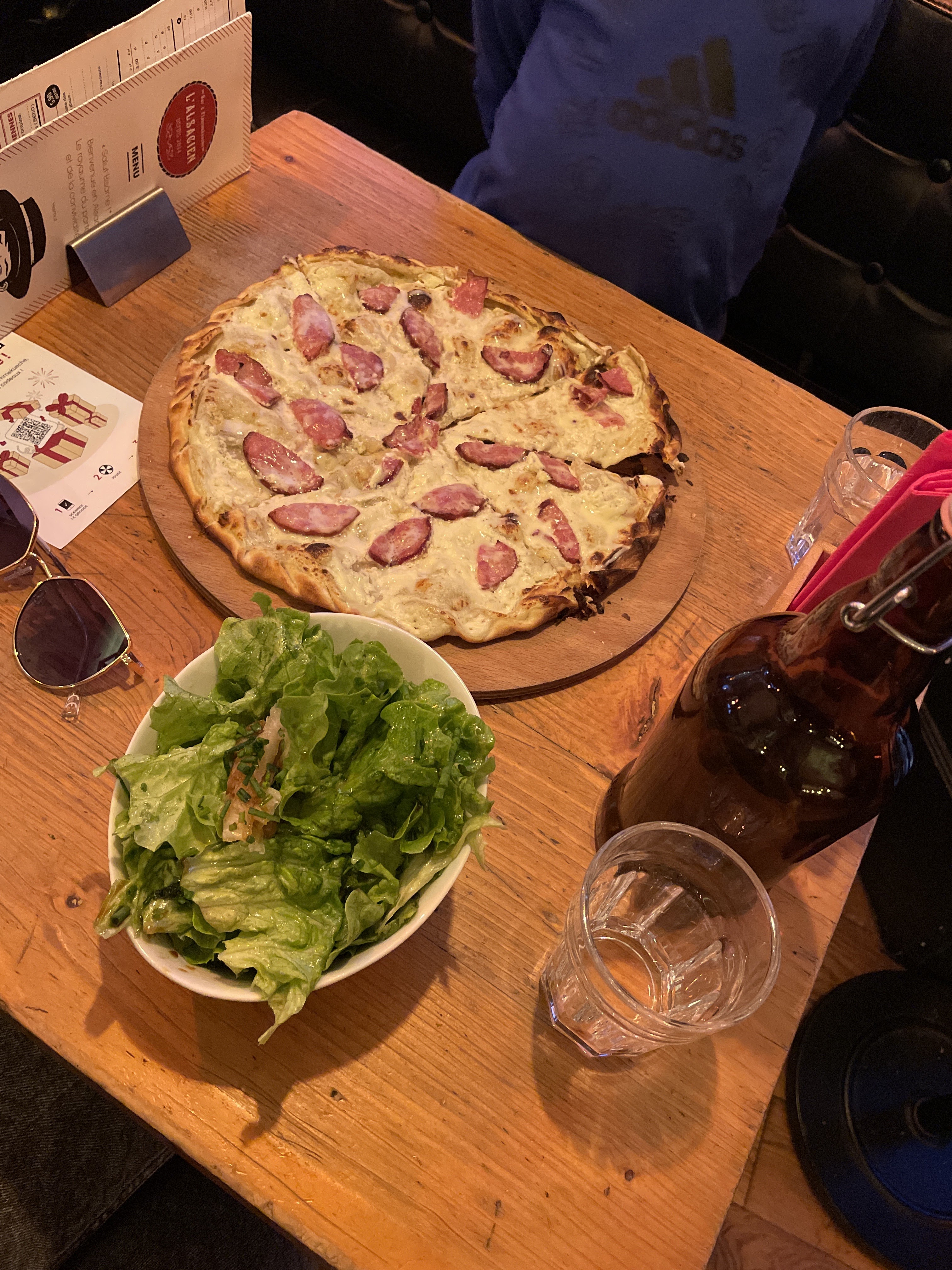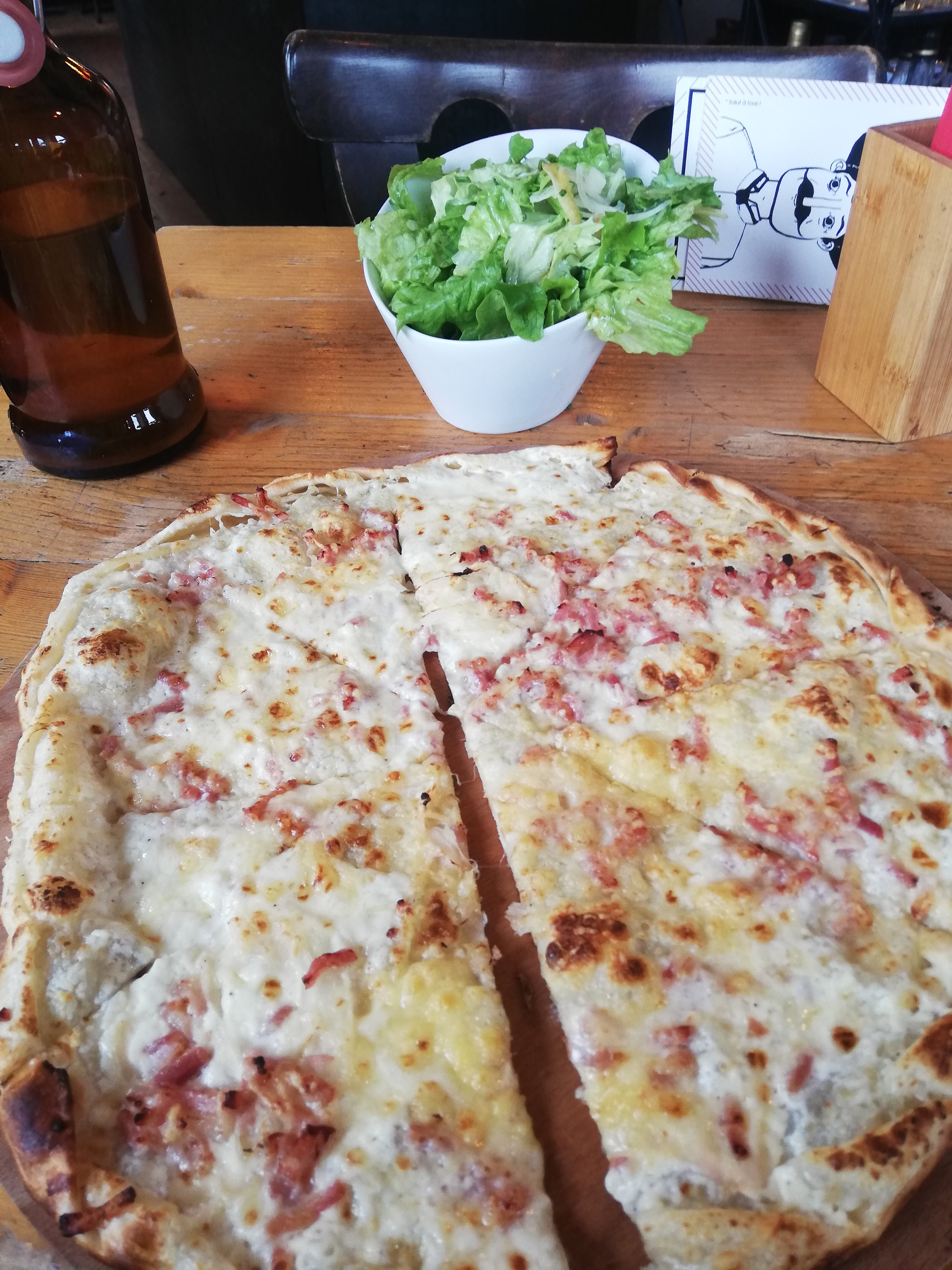 Après quelques années passées en Alsace une soudaine envie de tartes flambées, endroit chaleureux, tartes flambées très bonne, mention spéciale à la Munster !!! Par contre elle sont rondes, pas comme là-bas ! 😂 Il faut réserver pour le dîner...