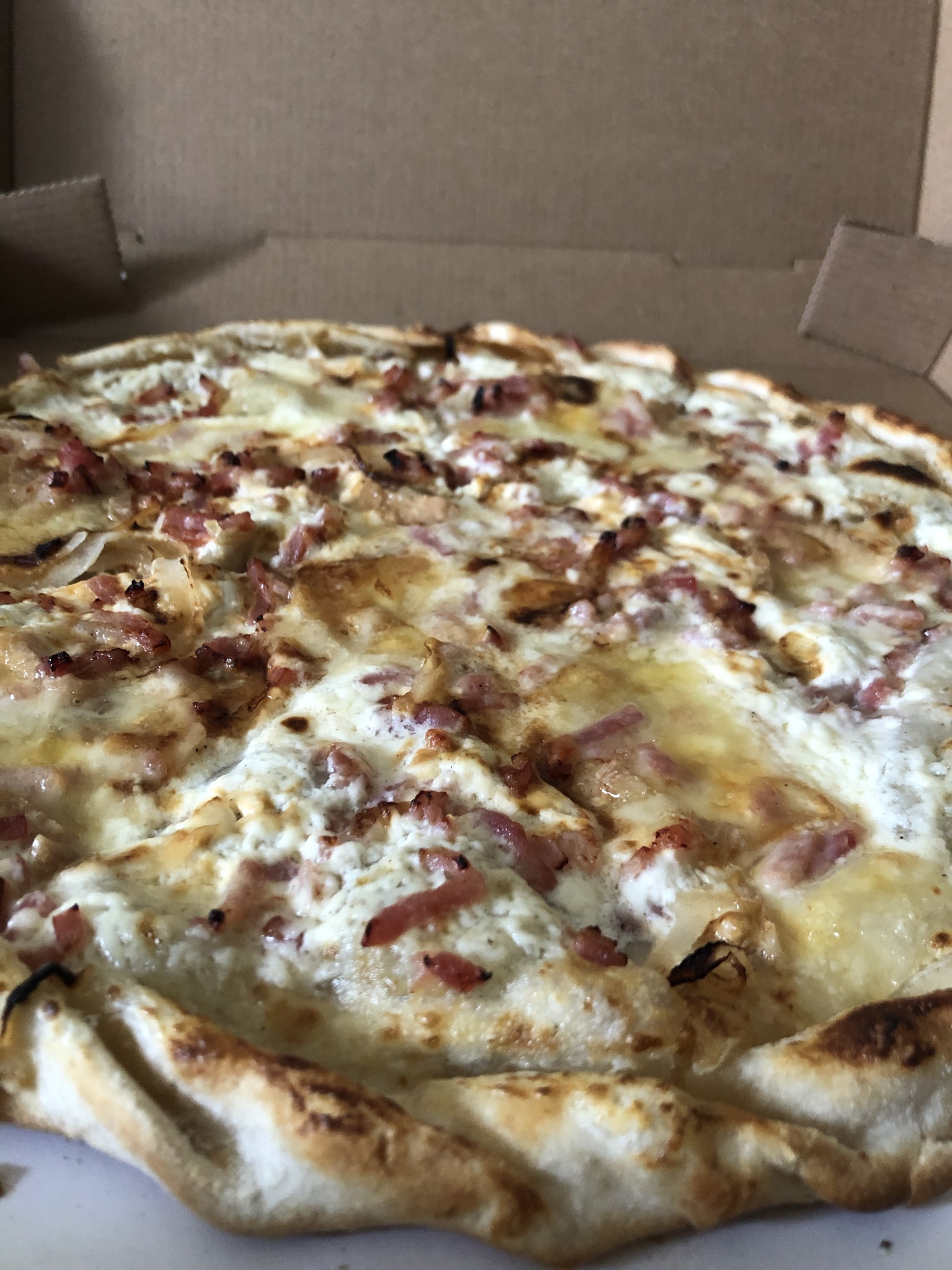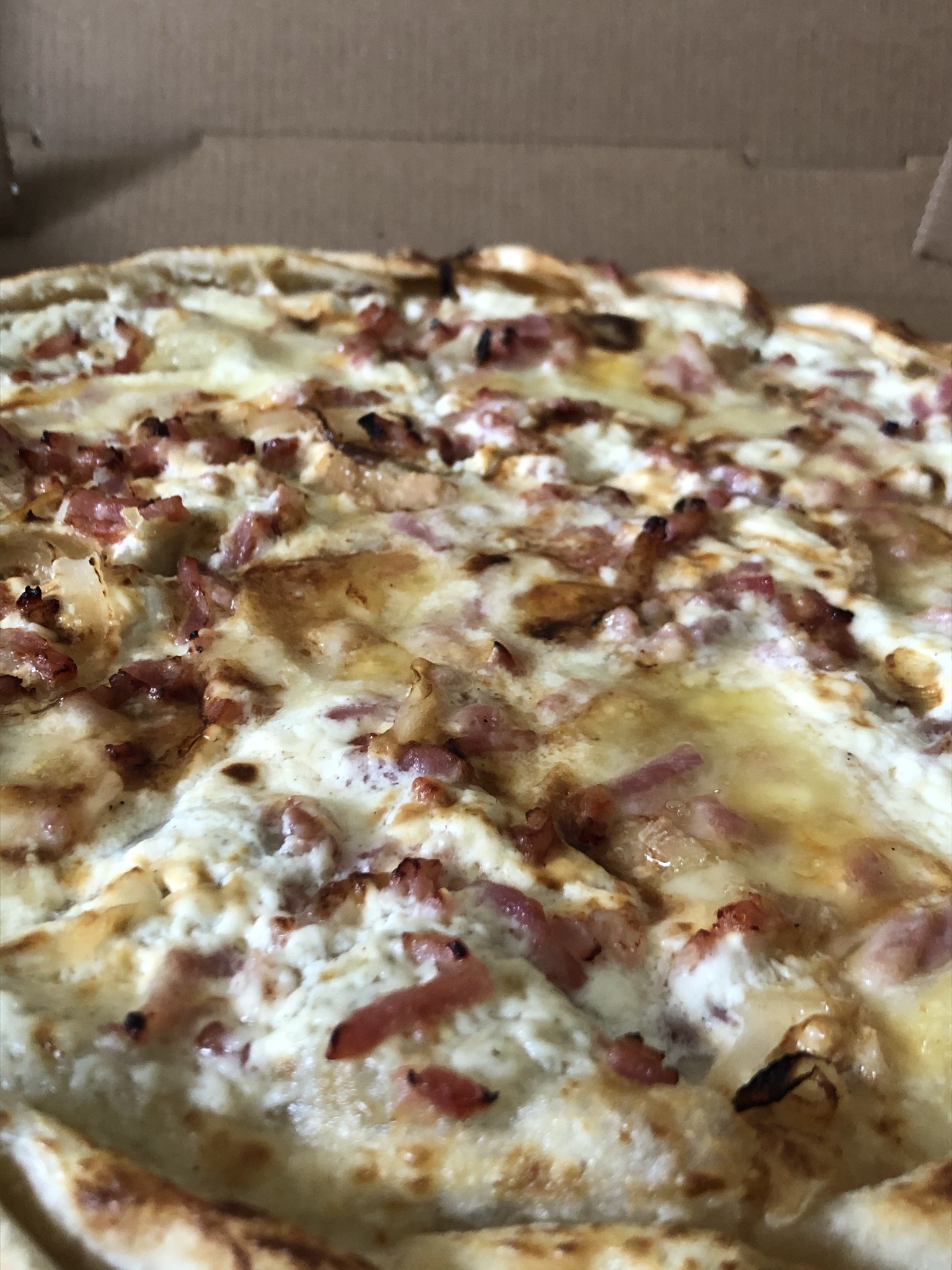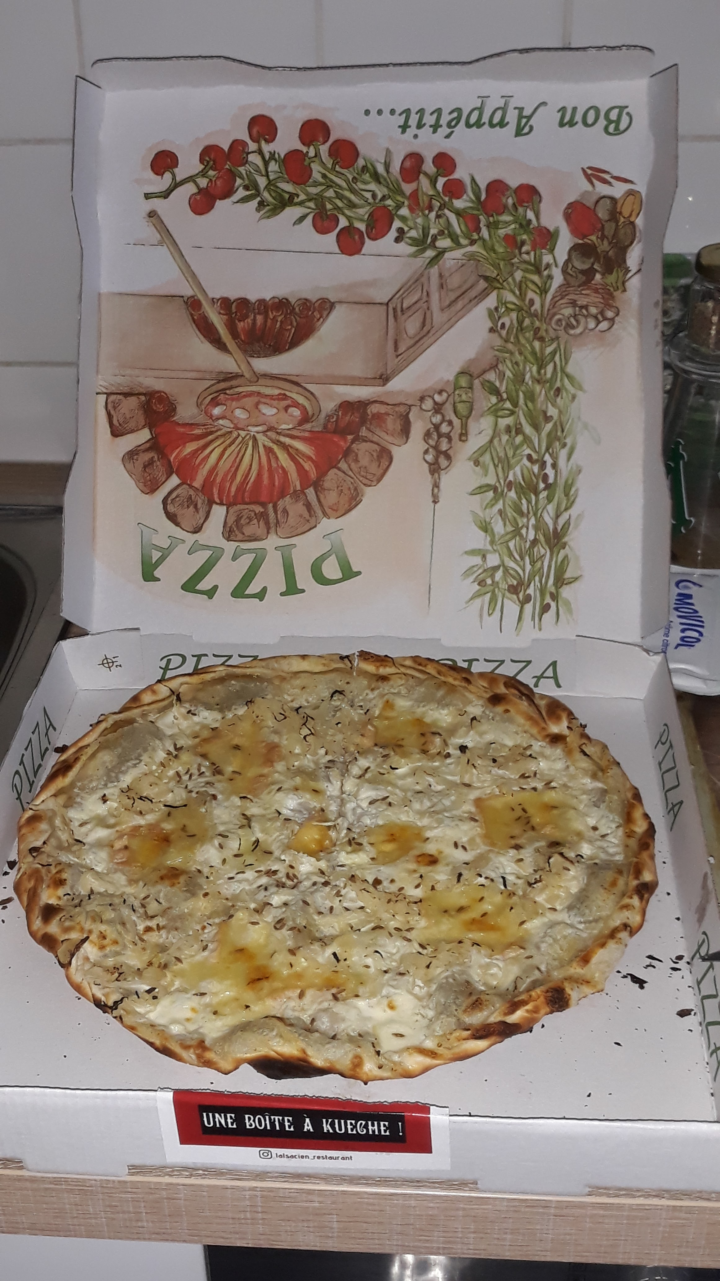 D'origine alsacienne, il me fallait goûter les tartes flambées de ce restaurant. Quelque peu surprise (positivement) face à la pâte de la tarte flambée, en effet celle-ci est modelée comme une 'tarte' avec un rebord tortillée ! Quant aux ingrédients, ceux-ci semblent de qualité et mis en conséquence (bien garni). Pour la tarte flambée au munster, un peu déçue car le fromage n'était pas très fort en goût mais cela reste correct surtout au prix proposé. L'attente fut de courte durée (~ 10min) à emporter. Point bonus, on nous a proposé de couper la tarte flambée en amont, ce qui est bien pratique pour déguster par la suite. Quant aux salariés, professionnalisme et sourire étaient au rendez-vous, cela fait plaisir. Très hâte de revenir pour les déguster à table dans le restaurant.