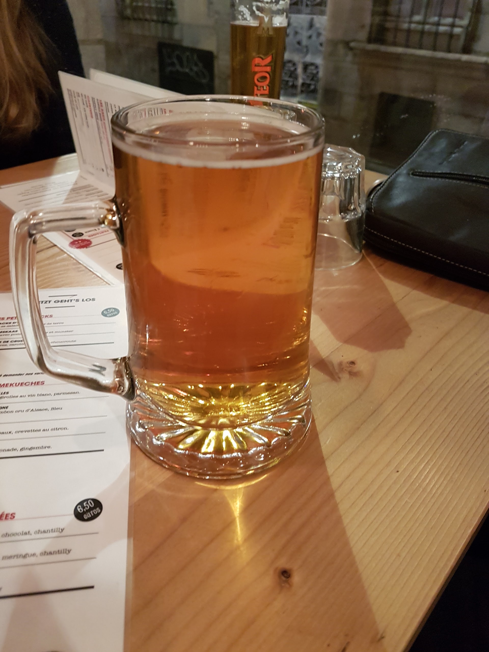 Un parfum d'Alsace en plein Besançon. Un lieu jeune agréable et accueillant. Des Flammenkuechen excellentes.
