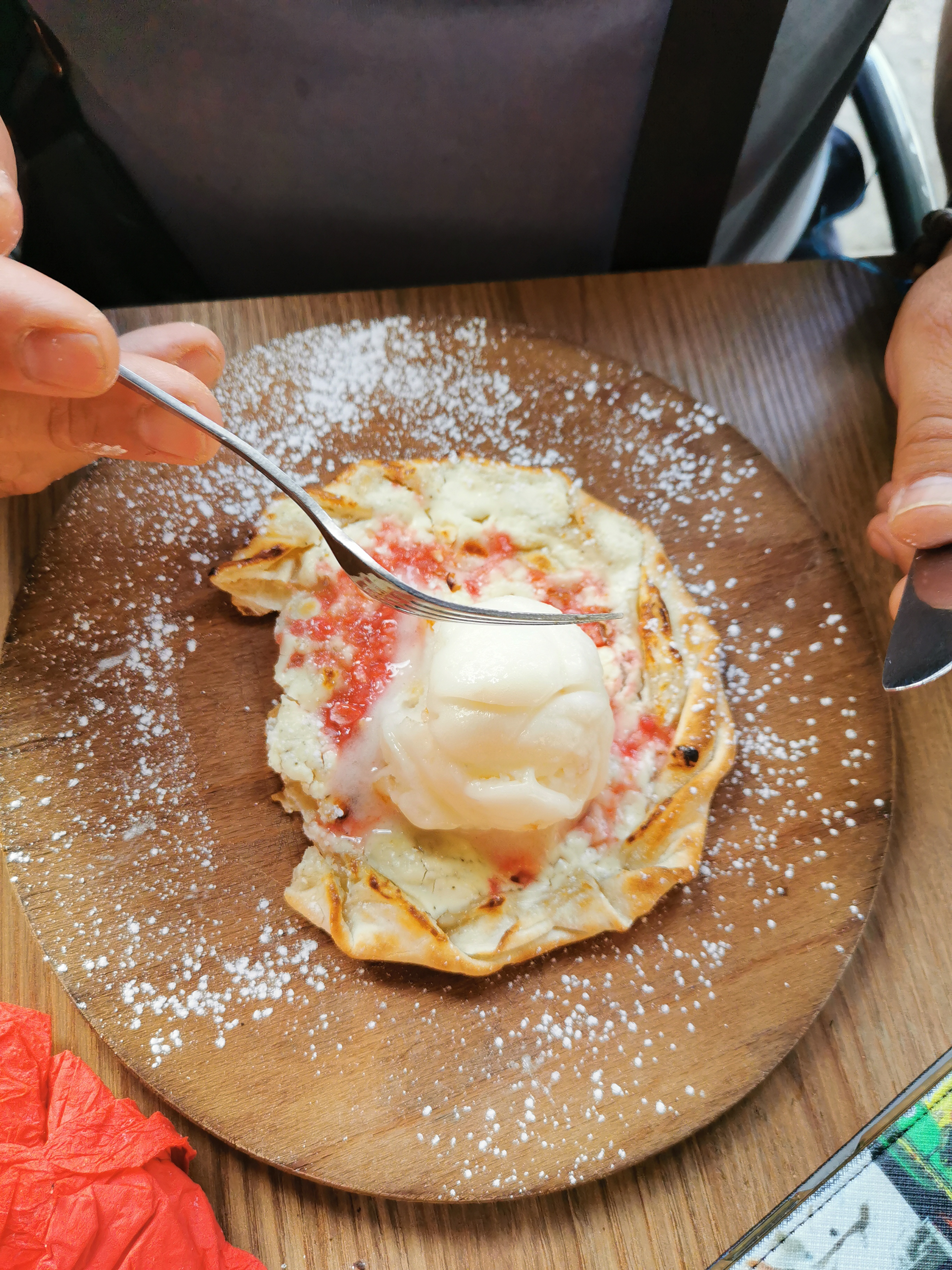 Un moment nocturne en terrasse avec une Flam salée et une sucrée. Les pâtes sont fines et le rendu exceptionnel avec des produits frais. La serveuse a été très à l'écoute et affable. Vraiment nous recommandons ce lieu où l'on sait encore ce que veulent dire savoir faire et savoir être. Bravo.