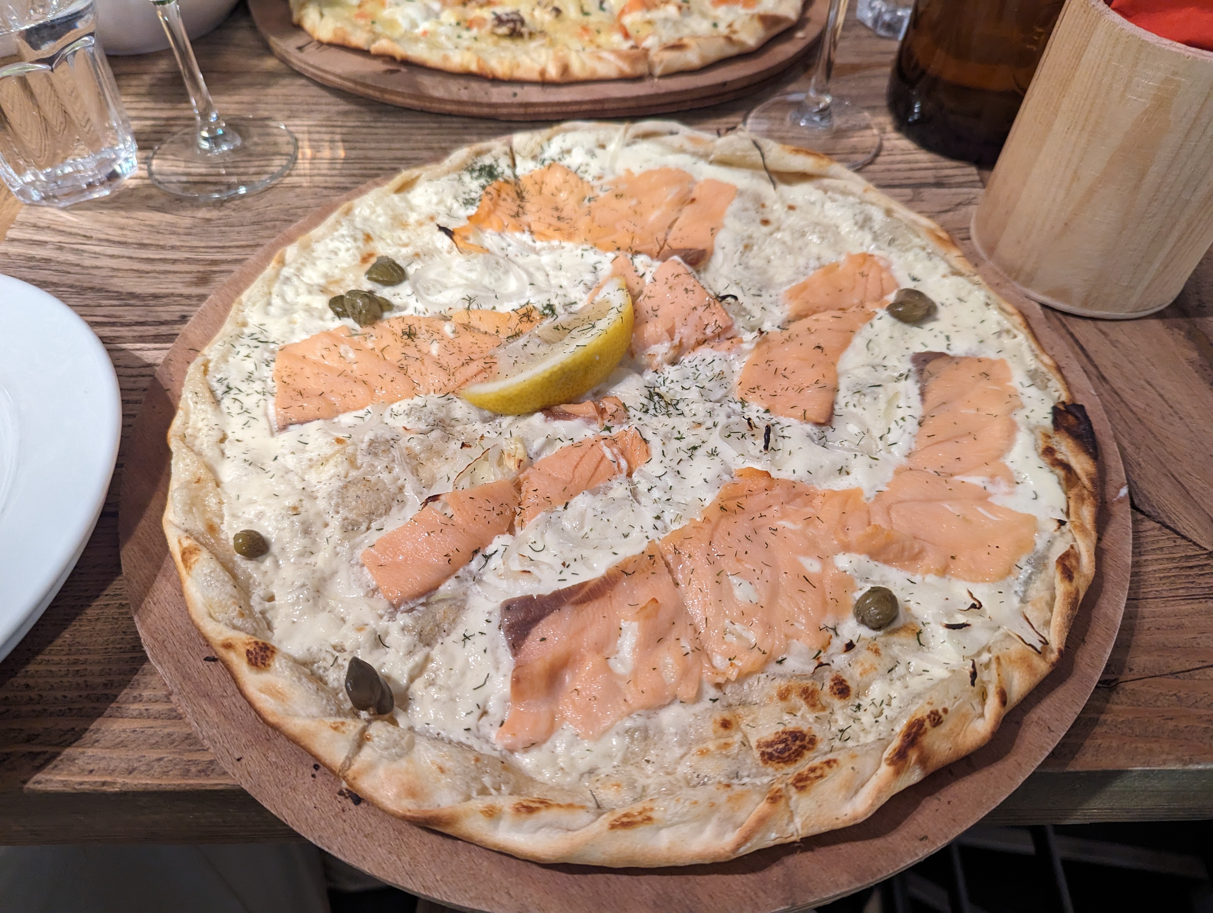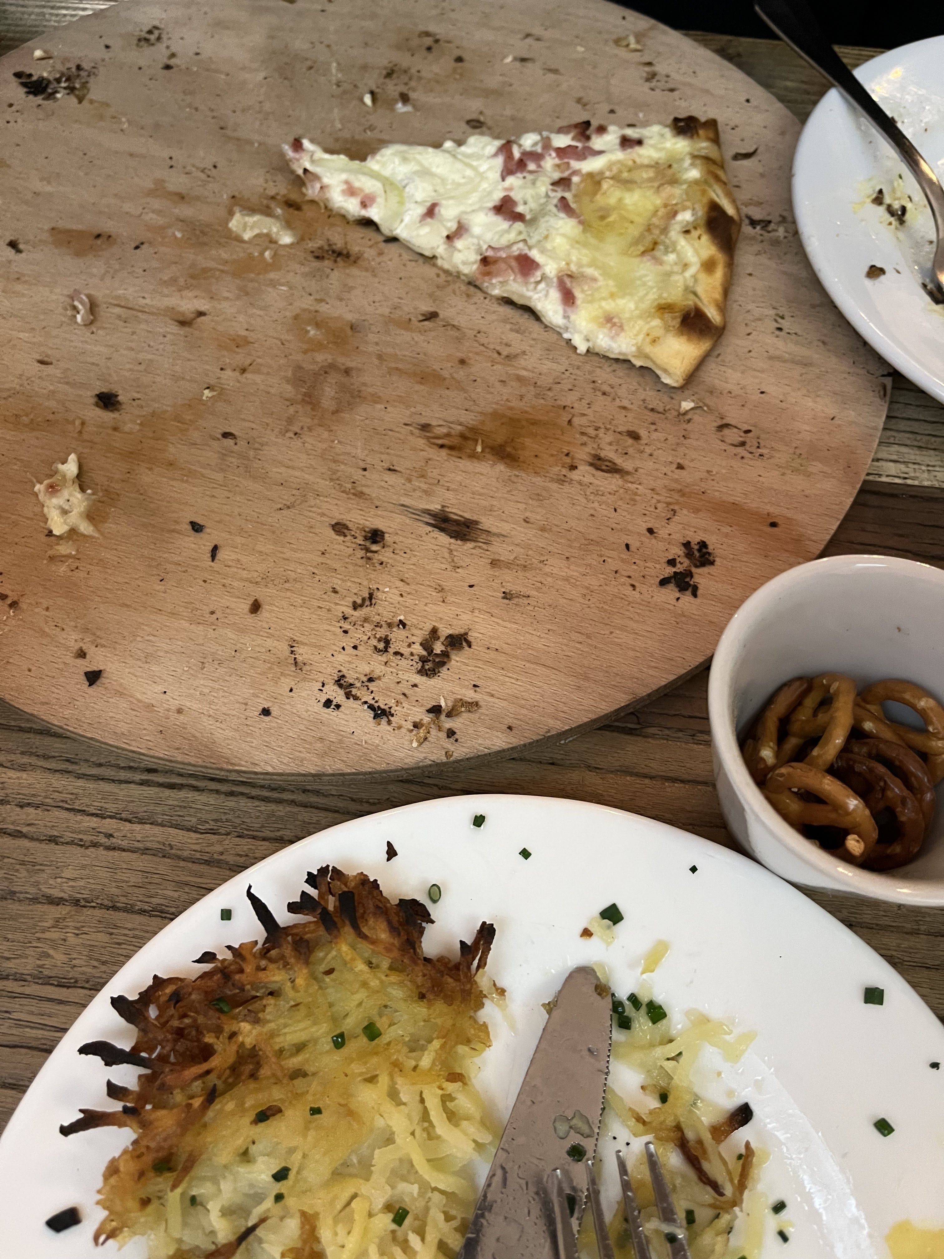 A part une longue attente pour avoir une table vide et prête à nous accueillir depuis notre arrivée, un service lent pour une salle pas complète, 3 demandes pour une carafe d’eau, et une note un peu salée. Les flammenkuches étaient bonnes, chaudes mais un peu petites peut-être pour le coût. À refaire si pas pressés.