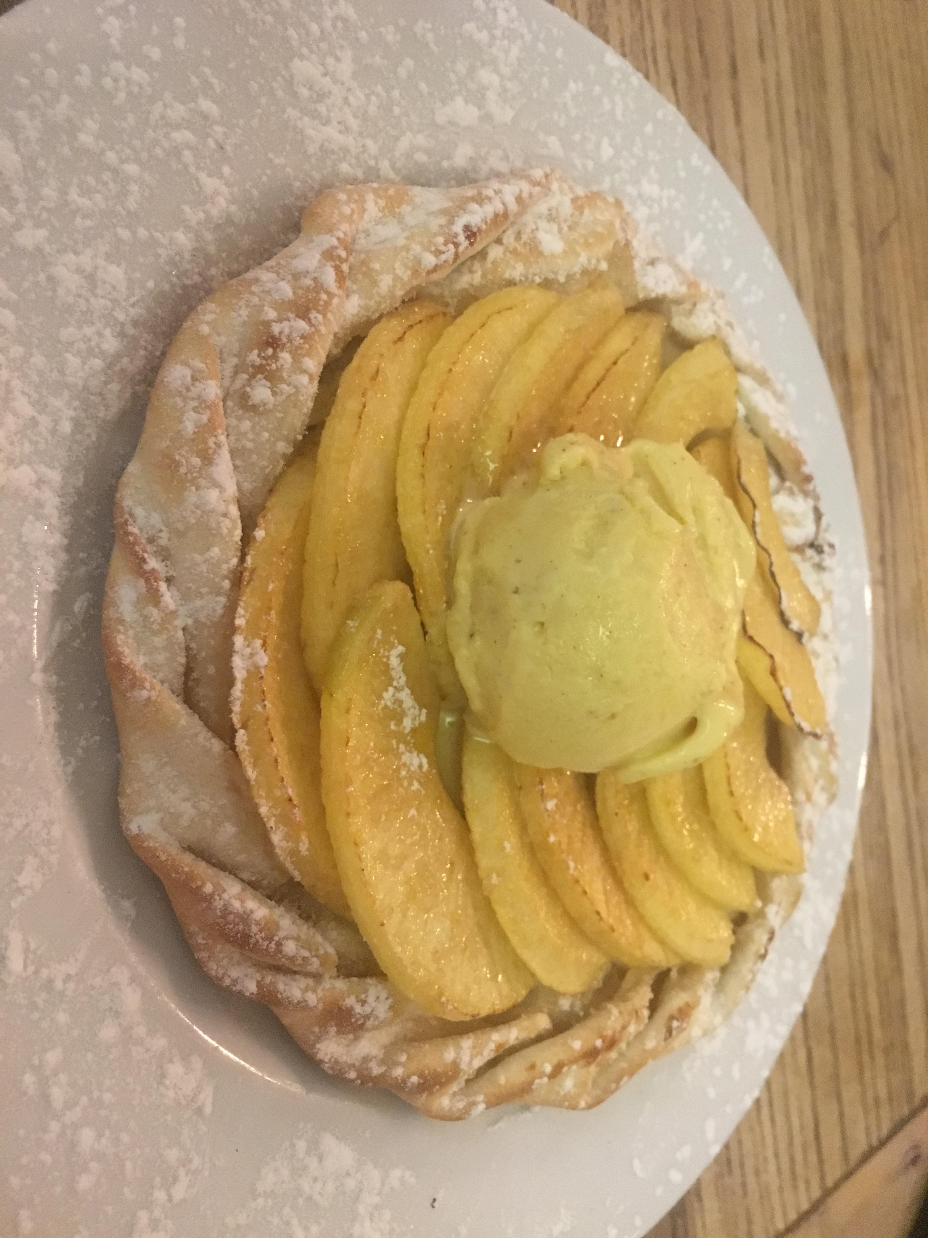 Bon restaurant mais cuisine pas assez bien dresser pour certain plat, exemple avec l'entrée knack knack qui aurais pu être mieux travailler ou avec la flammenkueche au magret de canard ou les tomate été couper un peut à l'arrache ou encore qui manque de crème, si non tourte très bonne