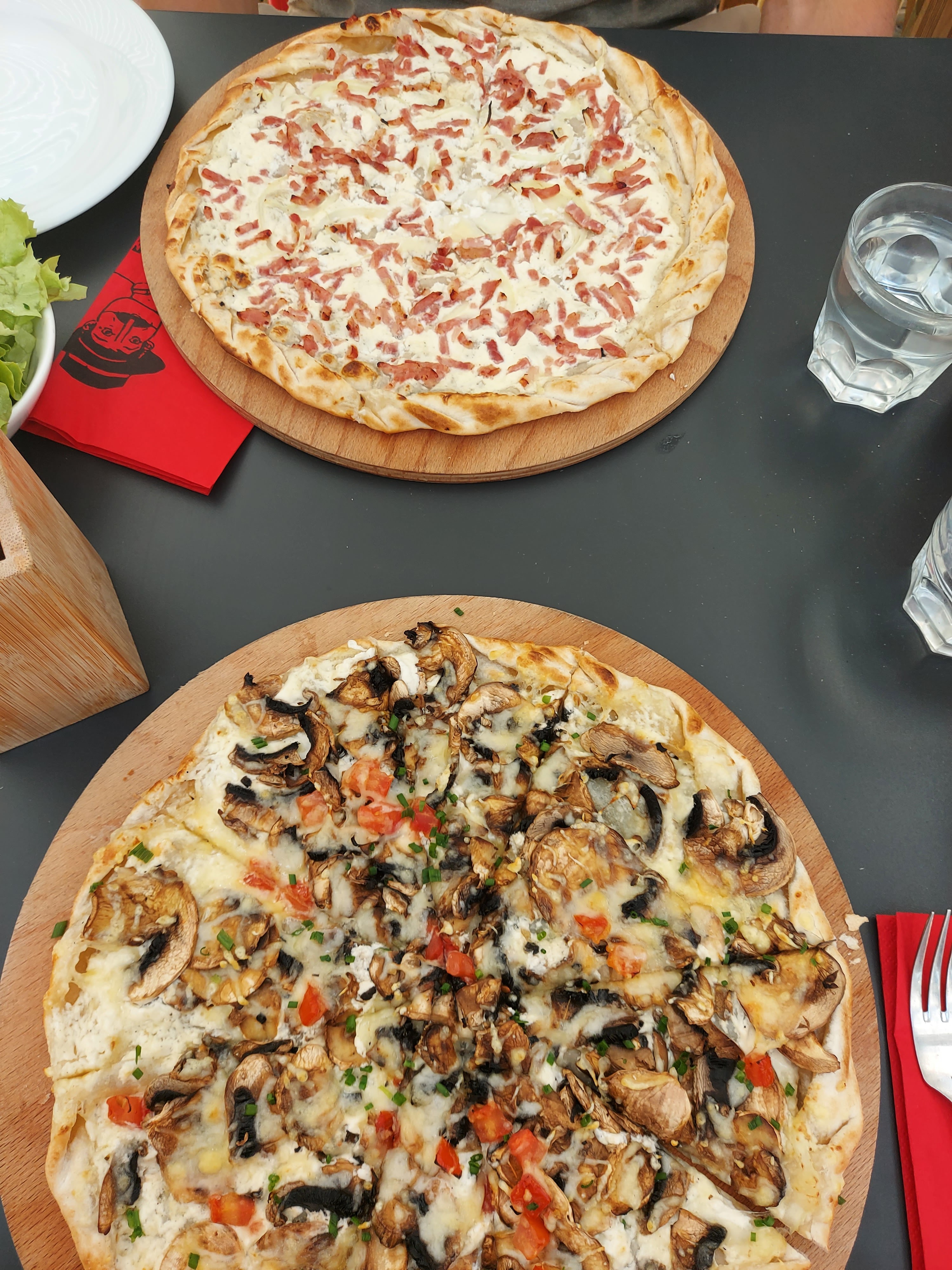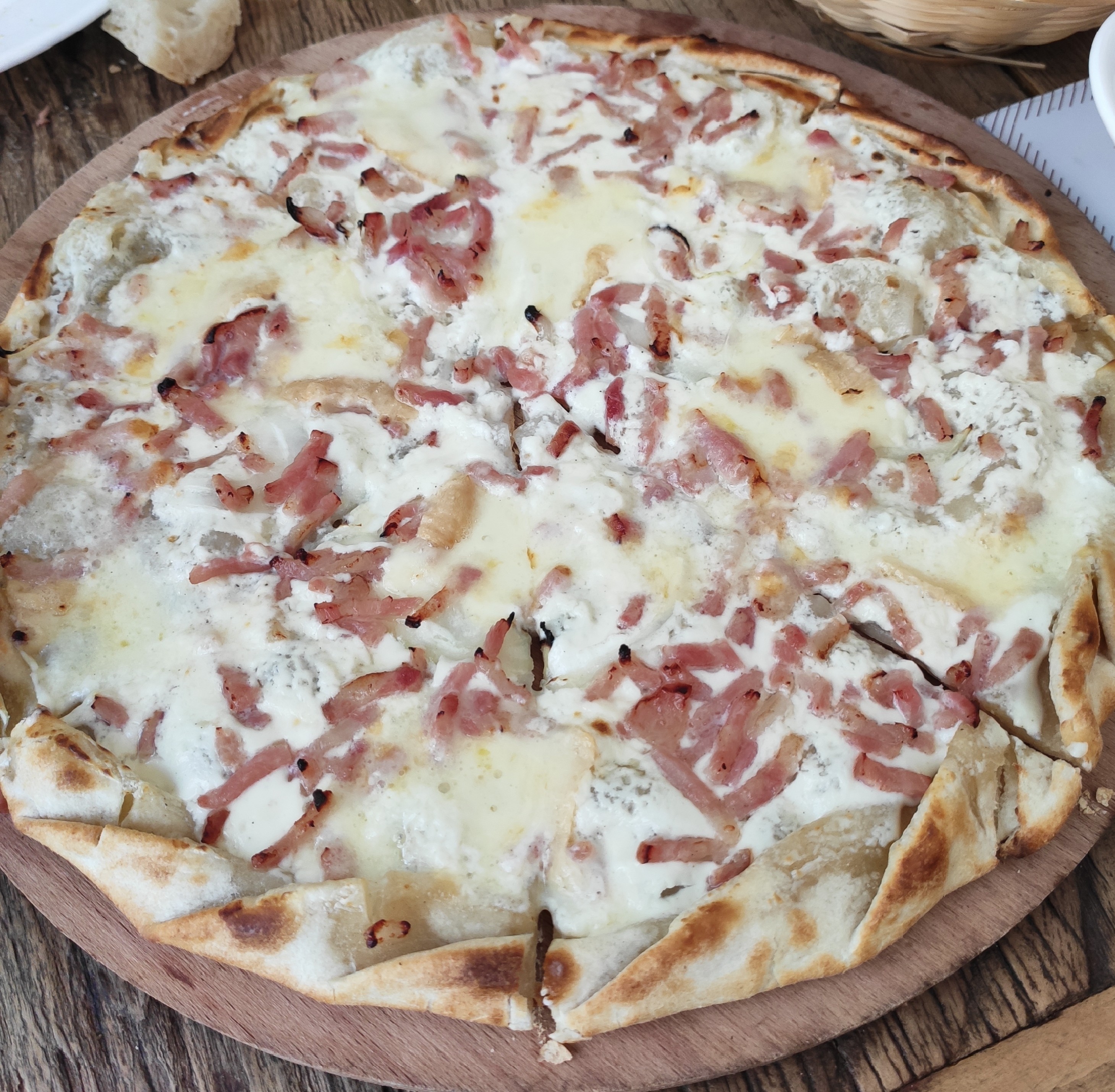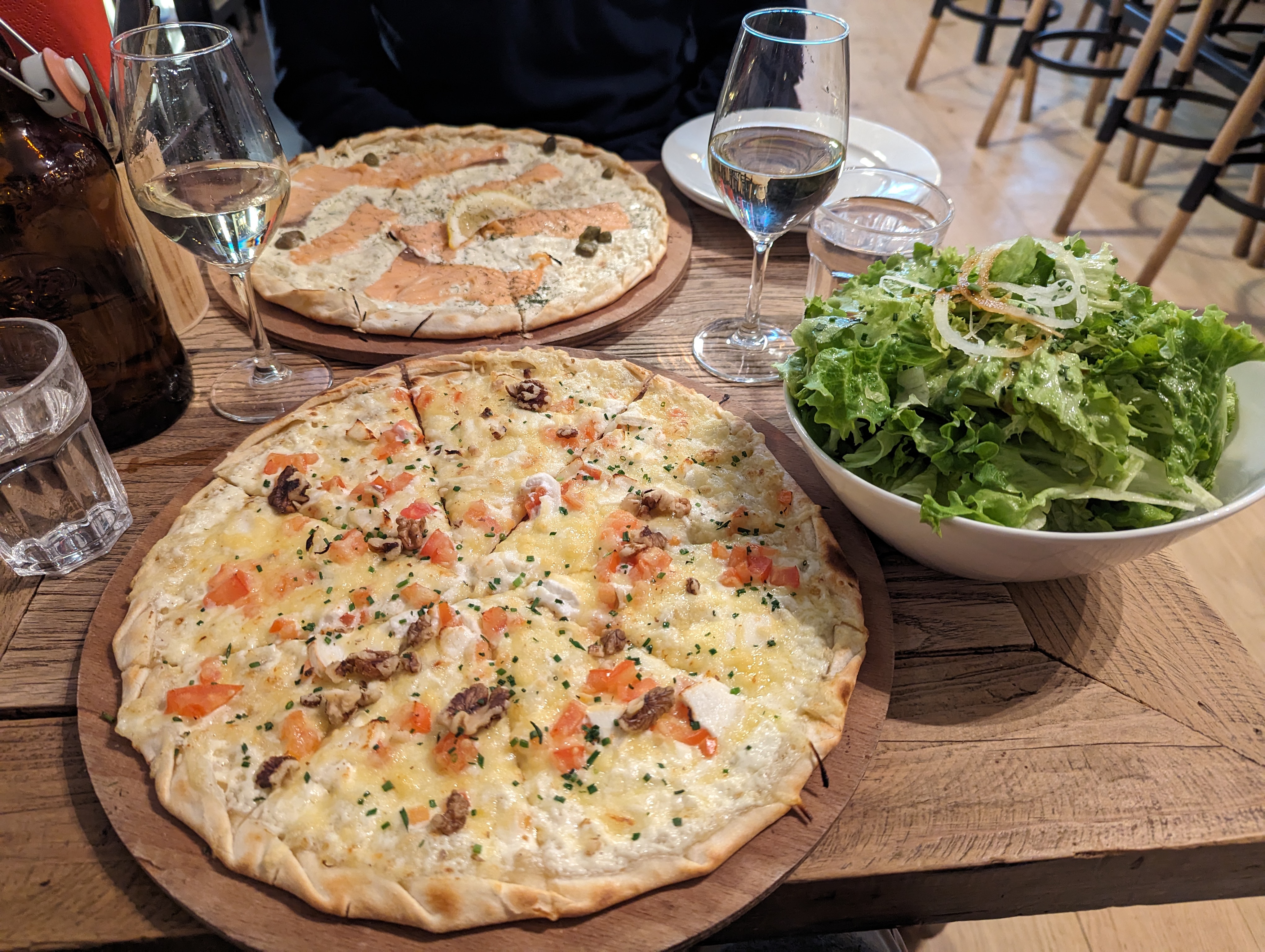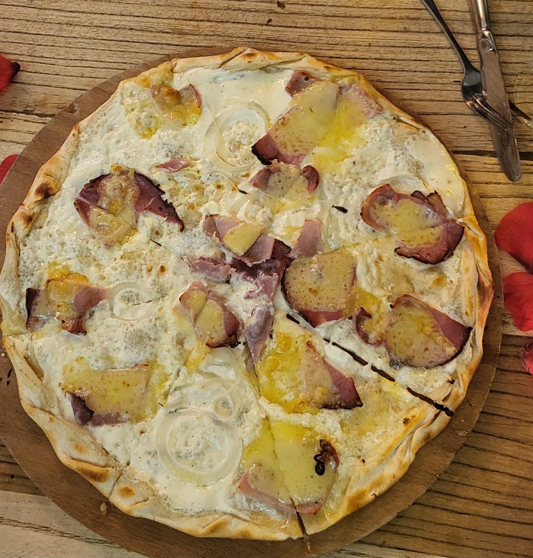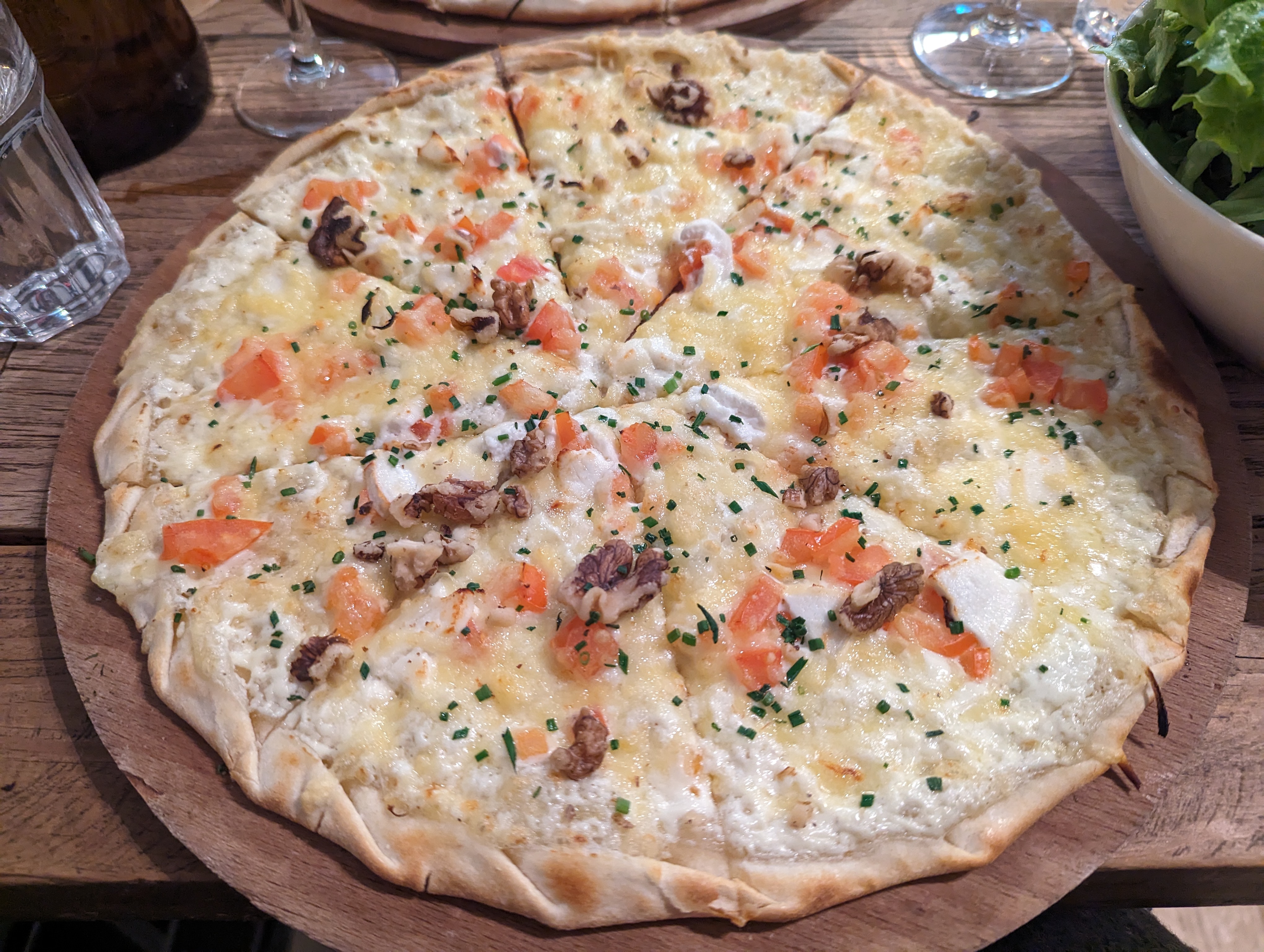 Flamekuches délicieuses, bien garnies. Attention à avoir en tête, pour les flamekuches il faut se lever aller les chercher au comptoir