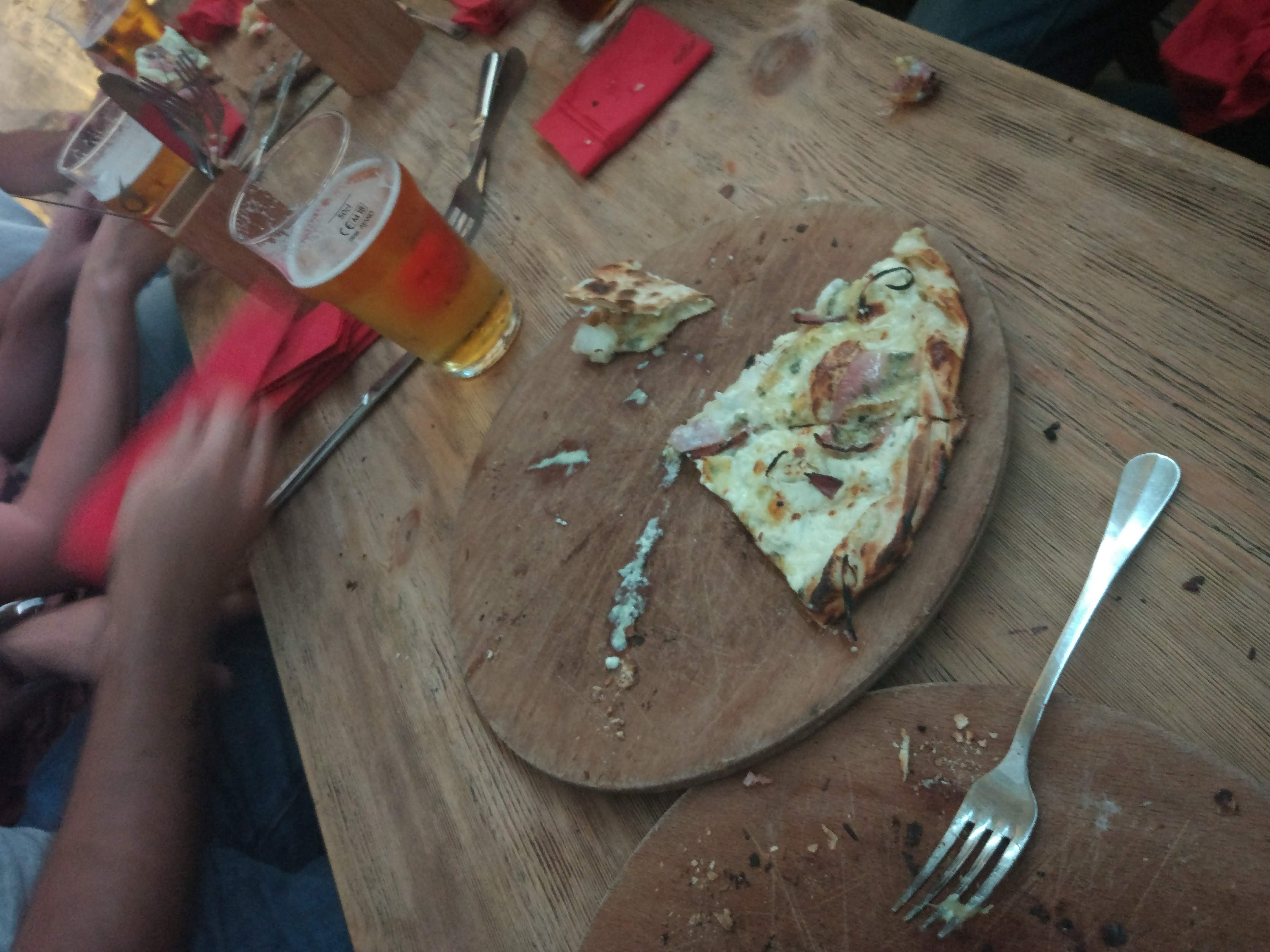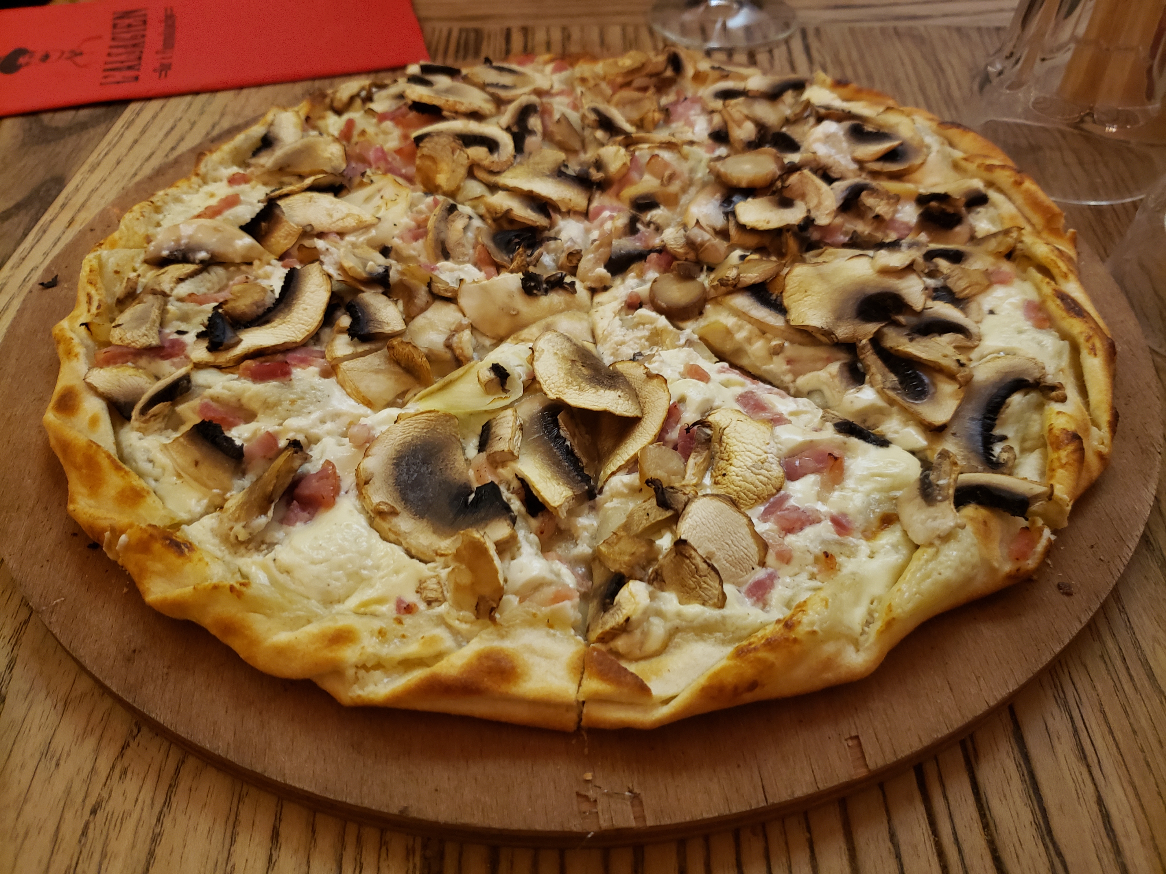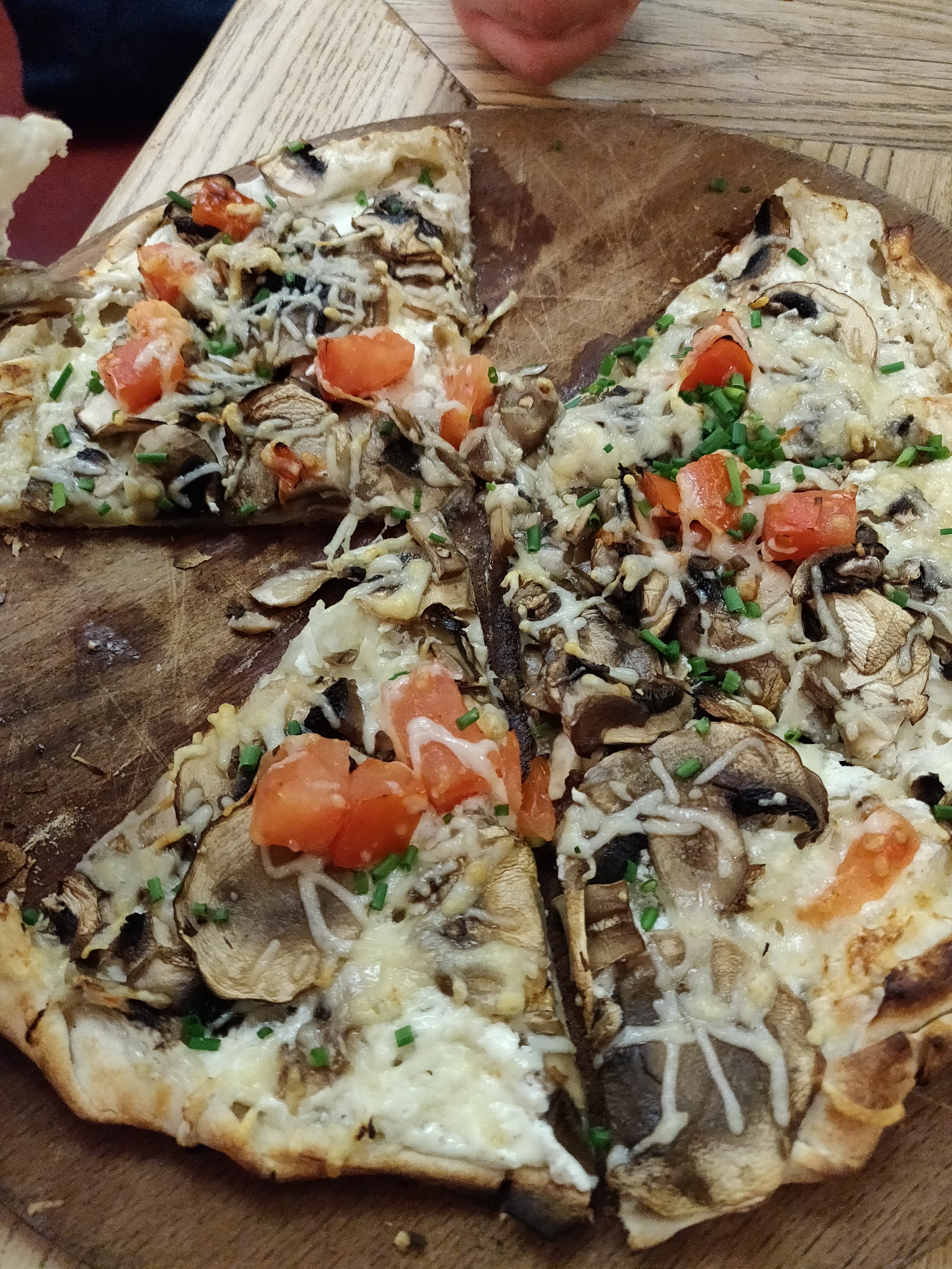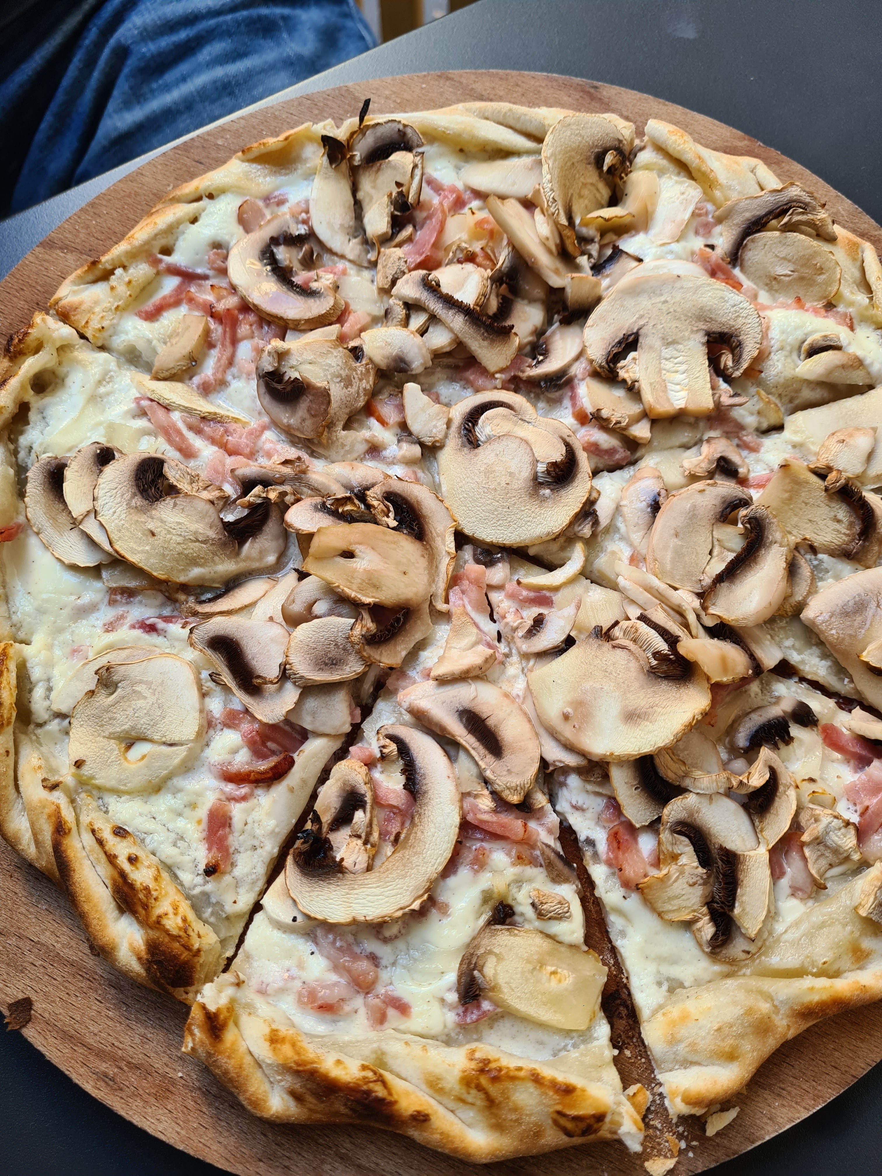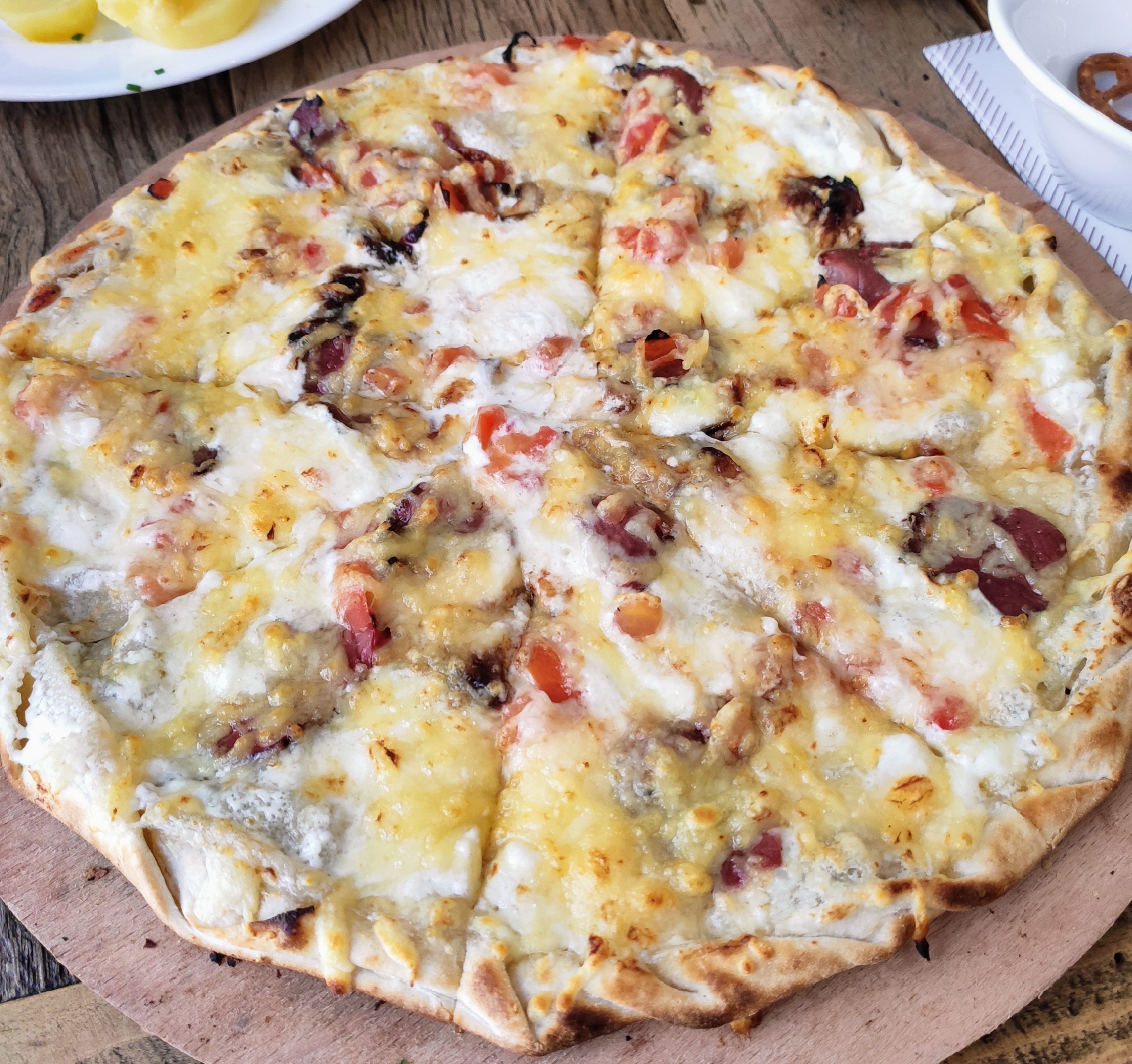 Flamekuches délicieuses, bien garnies. Attention à avoir en tête, pour les flamekuches il faut se lever aller les chercher au comptoir
