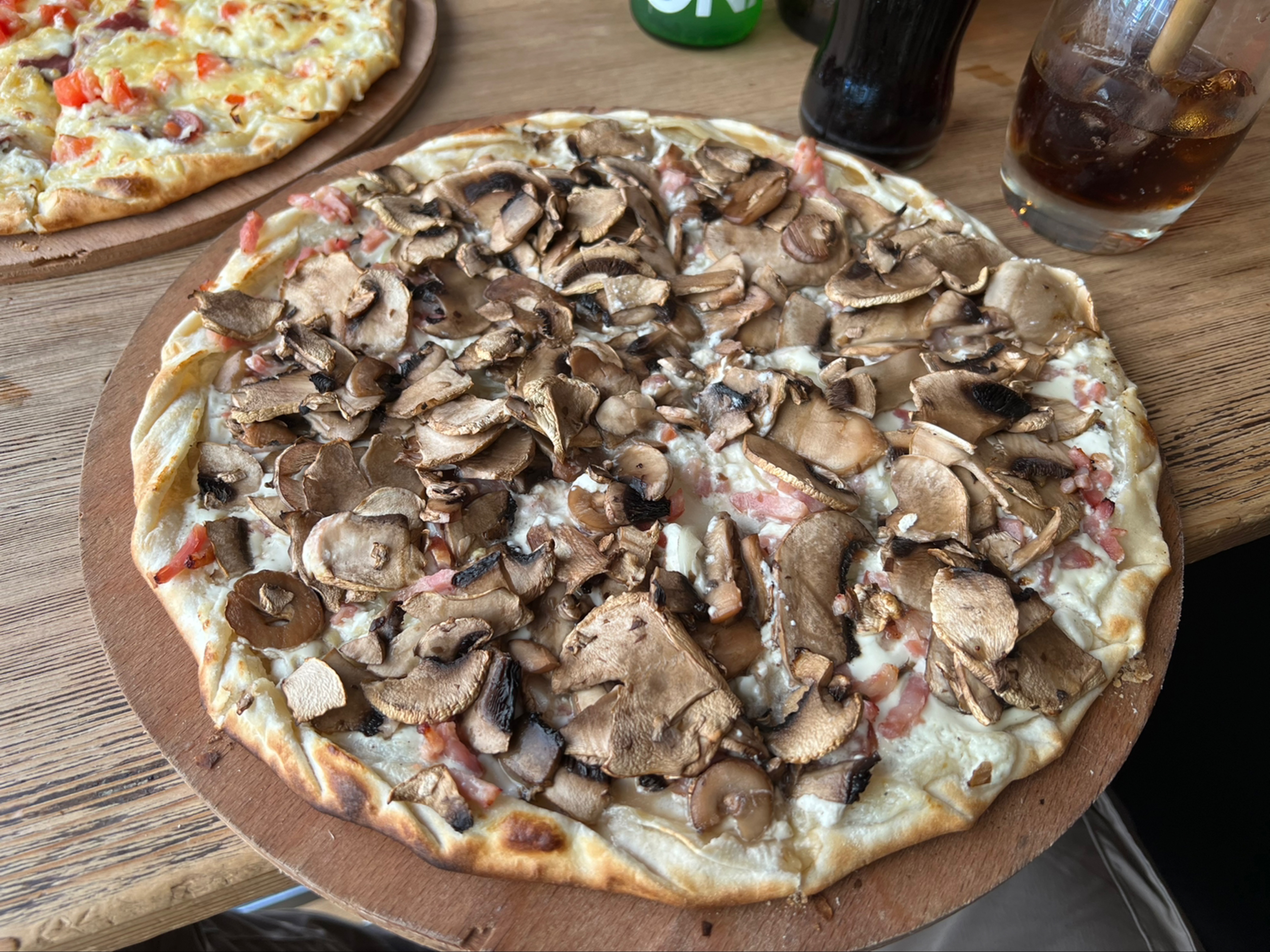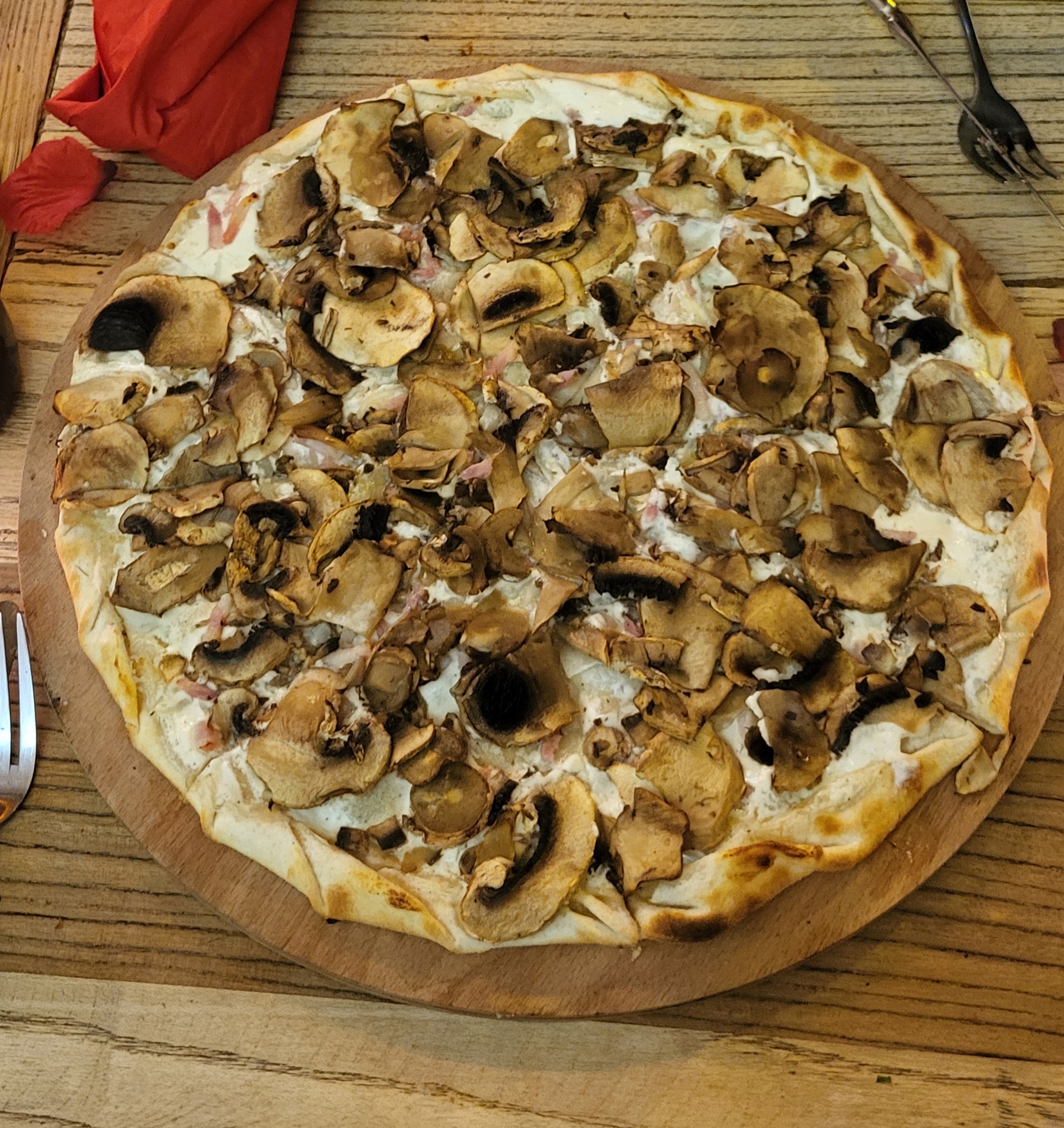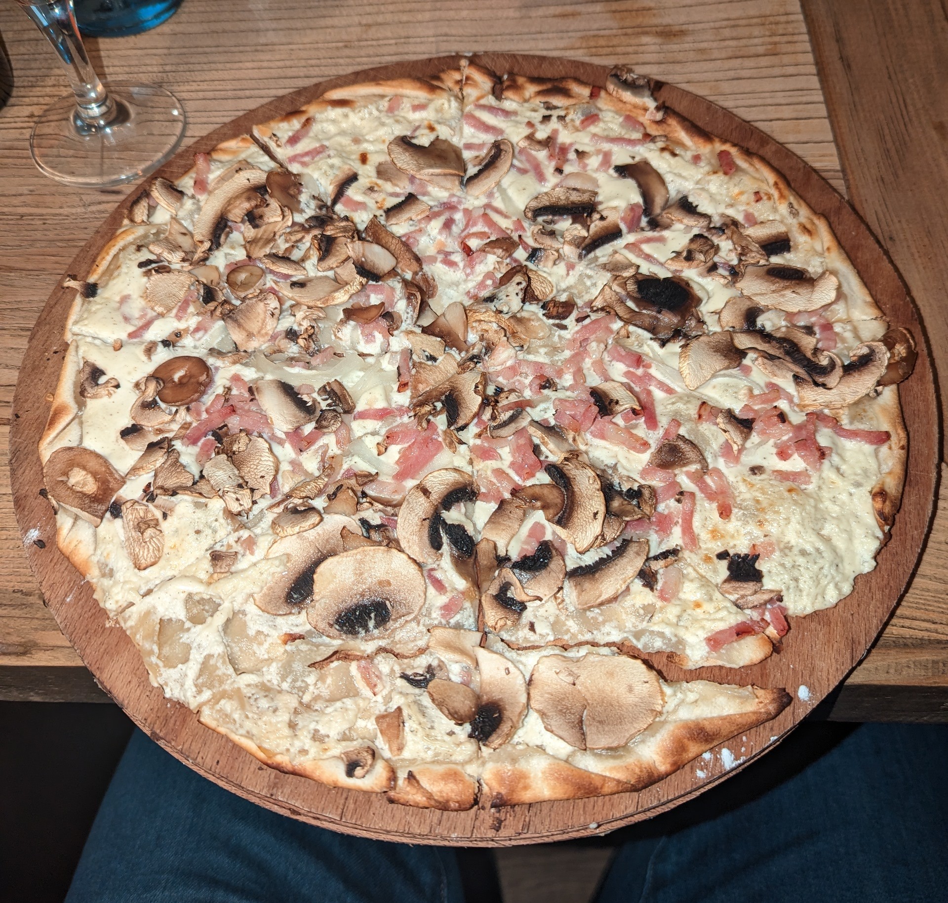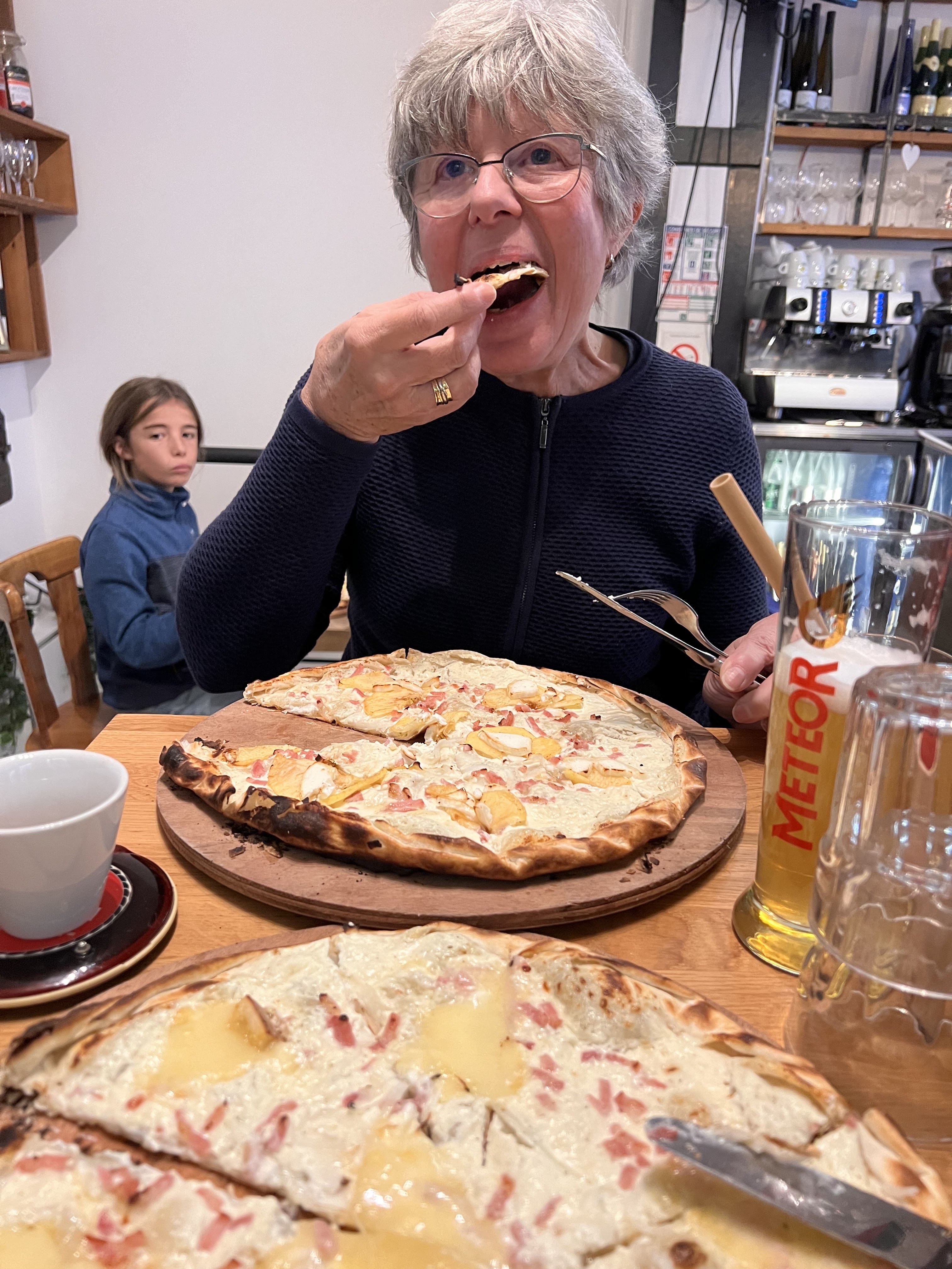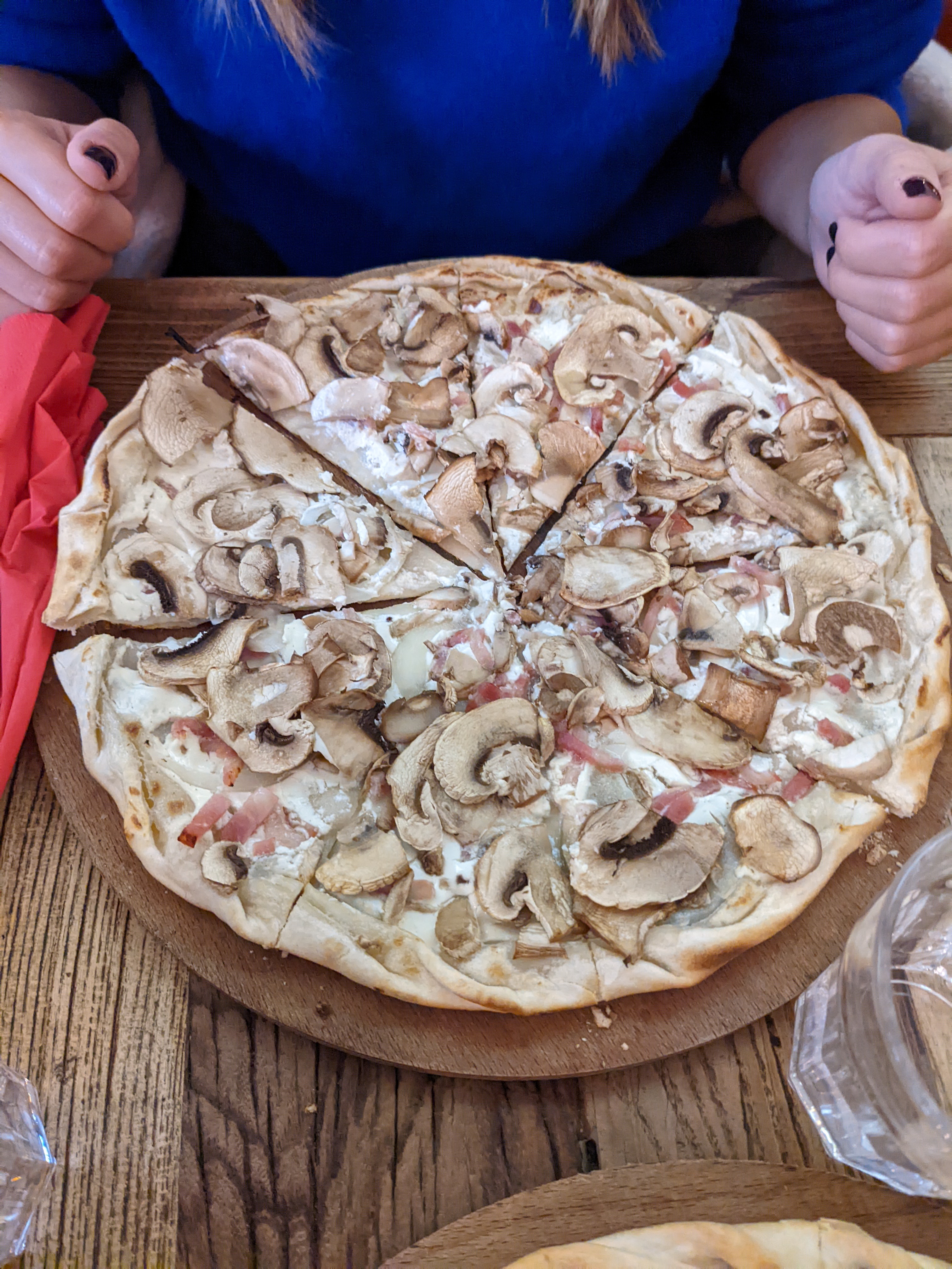 Flamekuches délicieuses, bien garnies. Attention à avoir en tête, pour les flamekuches il faut se lever aller les chercher au comptoir