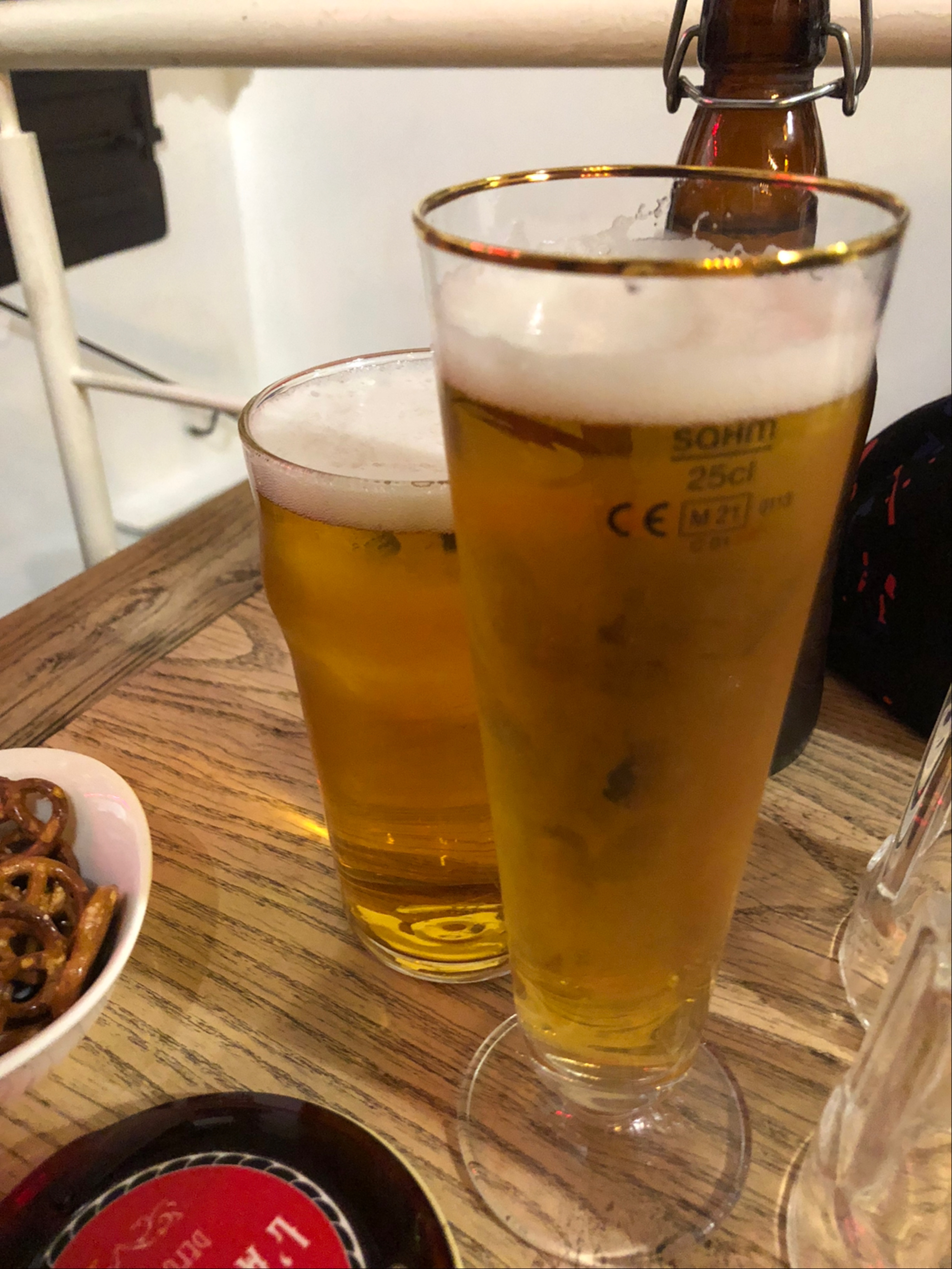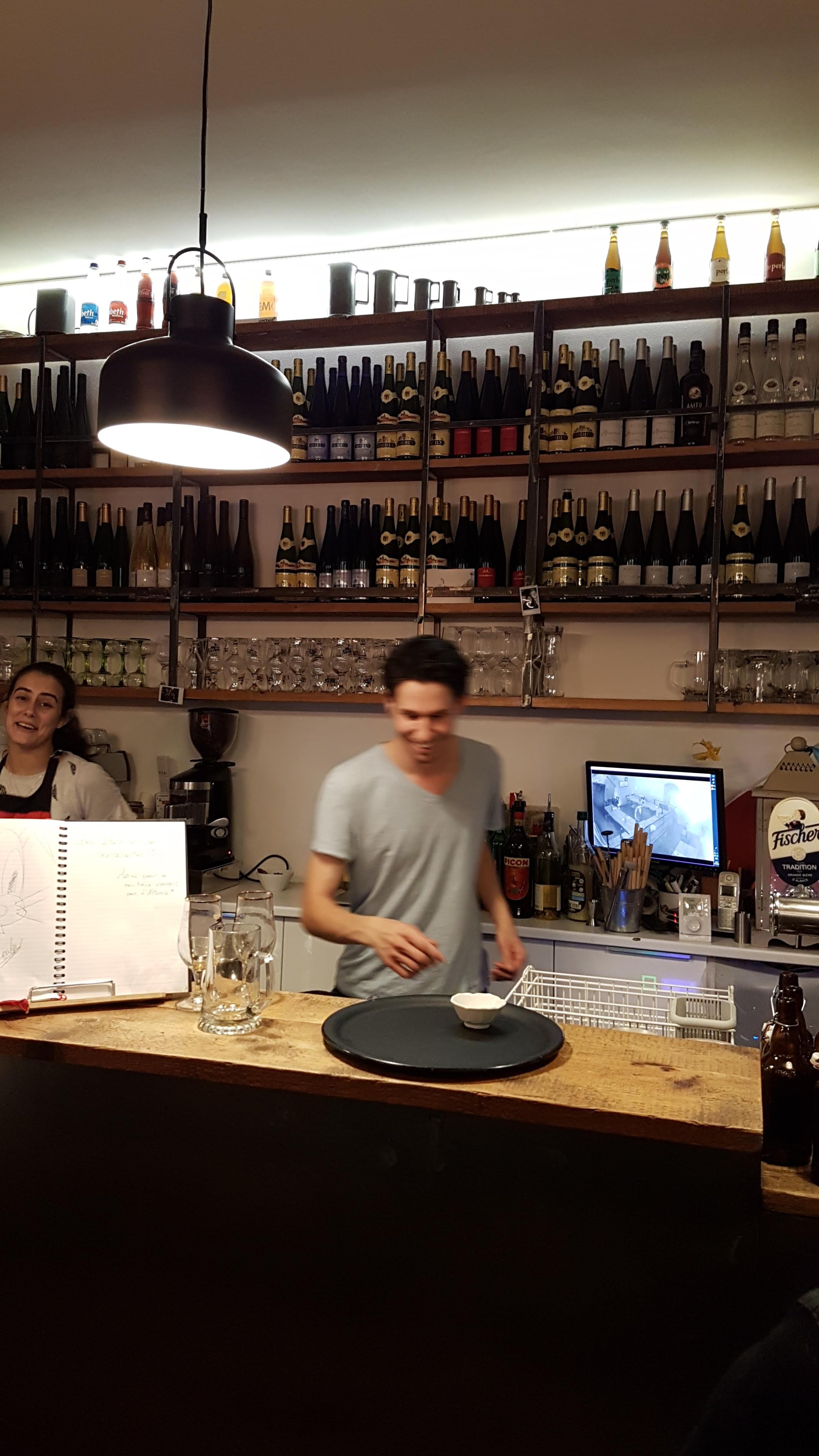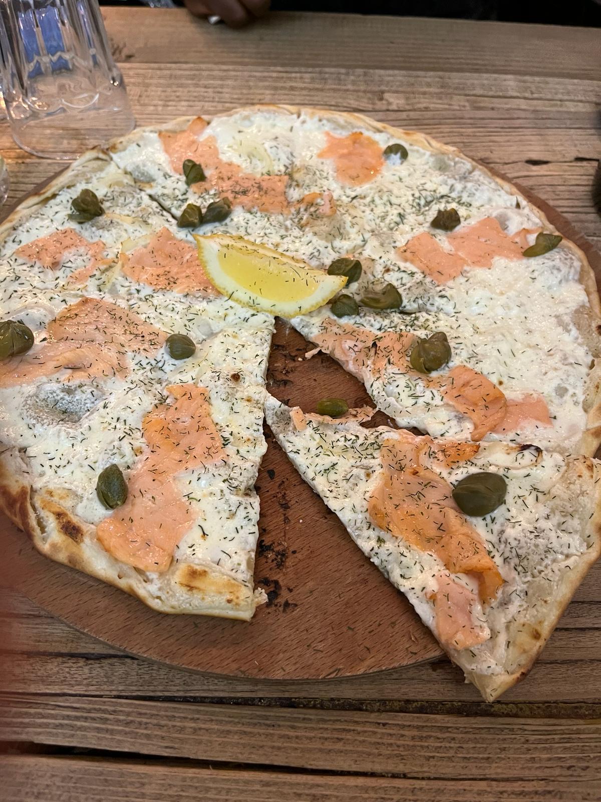 Super lieux, le service est au top, agréable et joviale ! Les tartes flambées sont très très bonnes mais rondes (les vrais sont rectangles!!!)et un tout petit peu trop petites à mon goût, mais se sont à mon sens les meilleurs tartes flambées de Paris.