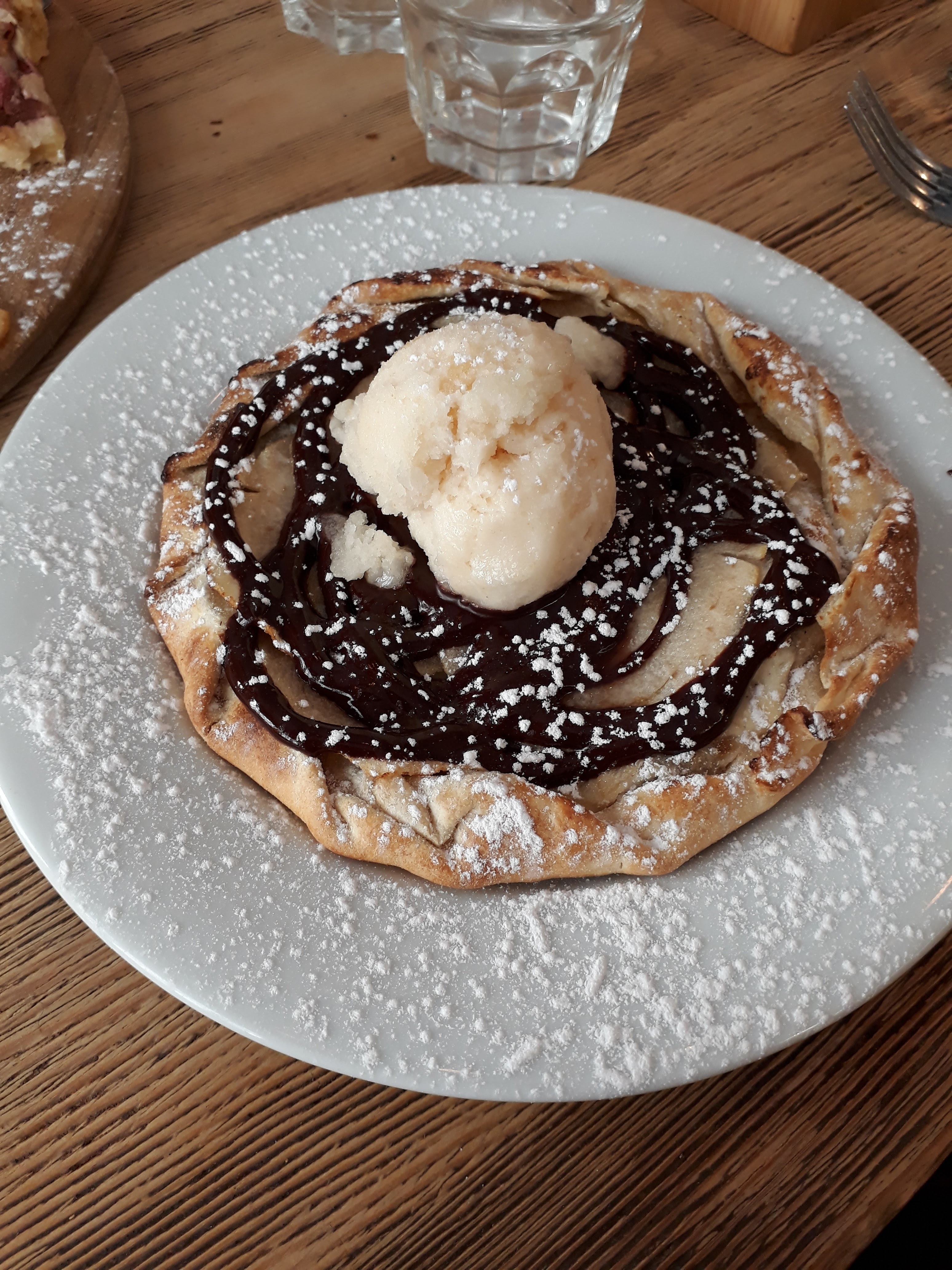 Formule intéressante ! La flammekueche est excellente mais le dessert (flammekueche pommes chocolat) ne m'a pas convaincu. Les pommes étaient un peu dures et le chocolat manquait de goût. Sinon service excellent et beau cadre.