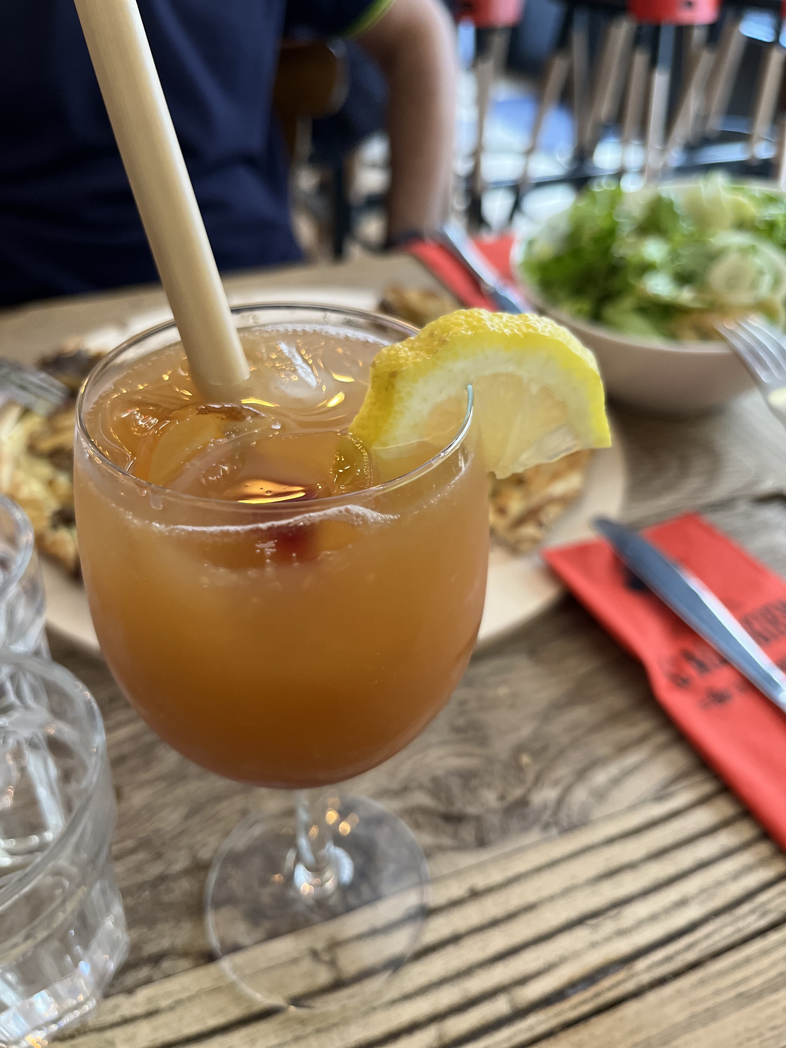 Bonjour Jul Ben, Nous vous remercions sincèrement pour votre avis ! Nous sommes ravis que vous ayez passé un bon moment avec nous ! La solidaire est une Flamme qui cartonne, et en plus vous faites un don à une super association ! Pour la boisson, il s'agit de L'Apfelschorle! Nous en sommes dingue également ;) A très bientôt autour d'une Nouvelle Flammekueche, et, Merci encore !