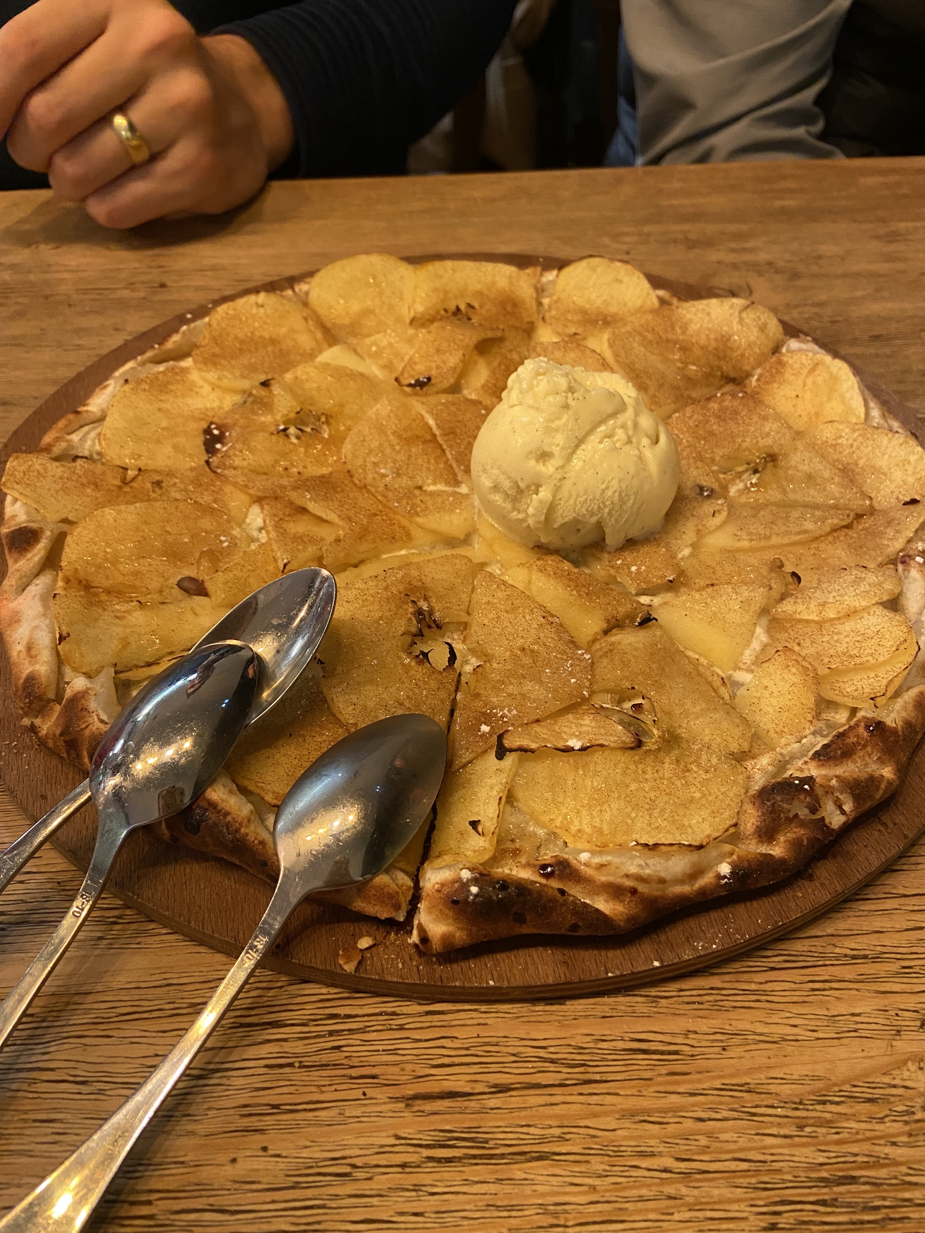 Bonjour Django! Merci beaucoup pour votre avis! Toute l'équipe est ravie de vous avoir accueilli! Pour la prochaine fois, en dessert, n'hésitez pas à prendre un Flammkueche sucrées à partager (la pomme cassonnade est ma préférée ^^) Vous en aurez pour vos papilles et le prix sera le même que les autres flammes! A très bientôt, peut-être pour un groupe du coup ;)