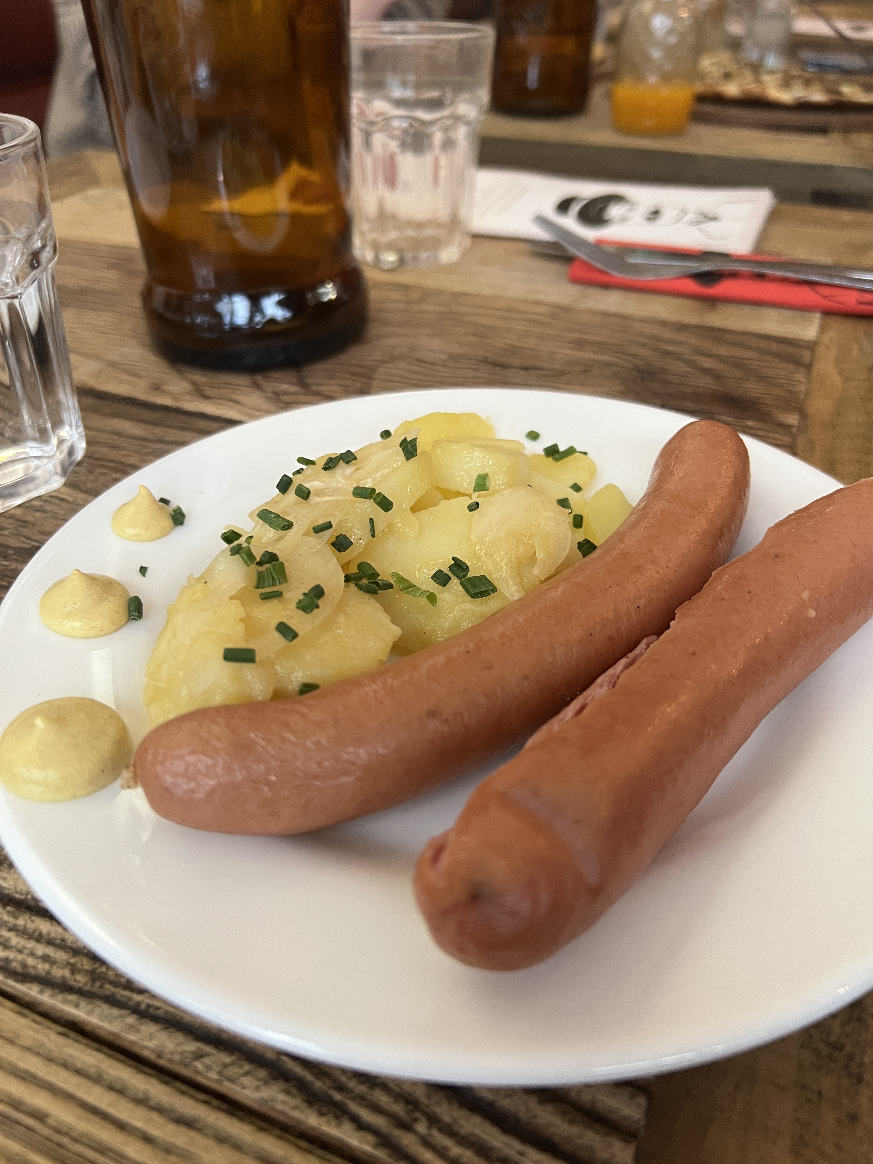 Un bon déjeuner à deux , bon et pas du tout cher dans ce restaurant alsacien caché dans une petite rue près de Hôtel de Ville à Paris . Je regrette seulement d’être un peu à l’étroit et serrée. Flammenkueche maison et délicieuse !