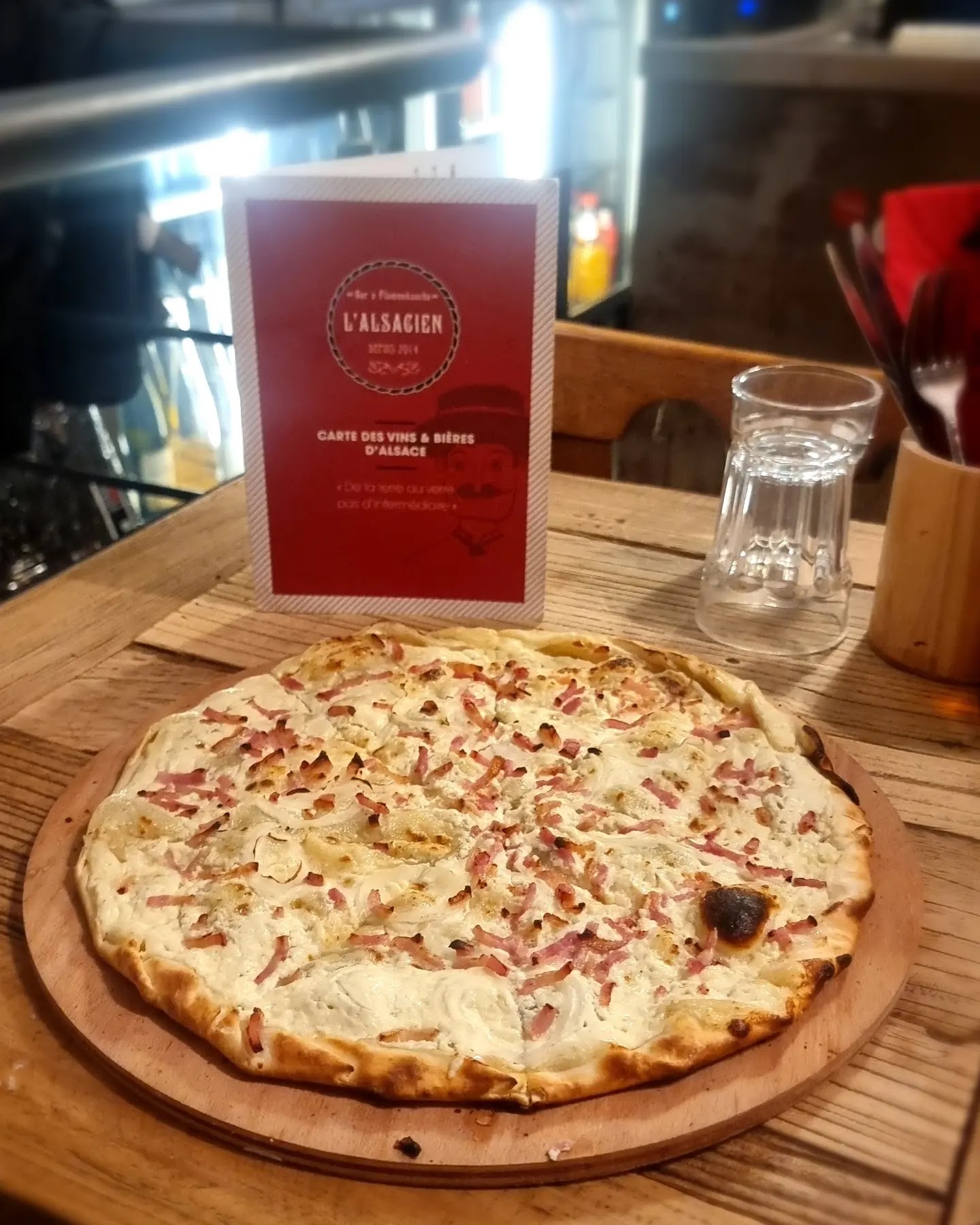 Cher Yoann, L'équipe de l'Alsacien te remercie pour ta recommandation ! C'est toujours un grand plaisir pour nous de lire que nos clients rentrent chez eux avec de si bons souvenirs et nous vous remercions pour le temps que vous avez consacré à partager votre expérience personnelle avec nous et les usagers du site. C’est notre devoir que de vous voir avec le plus beau des sourires :) :) Bisous et Flammekueches