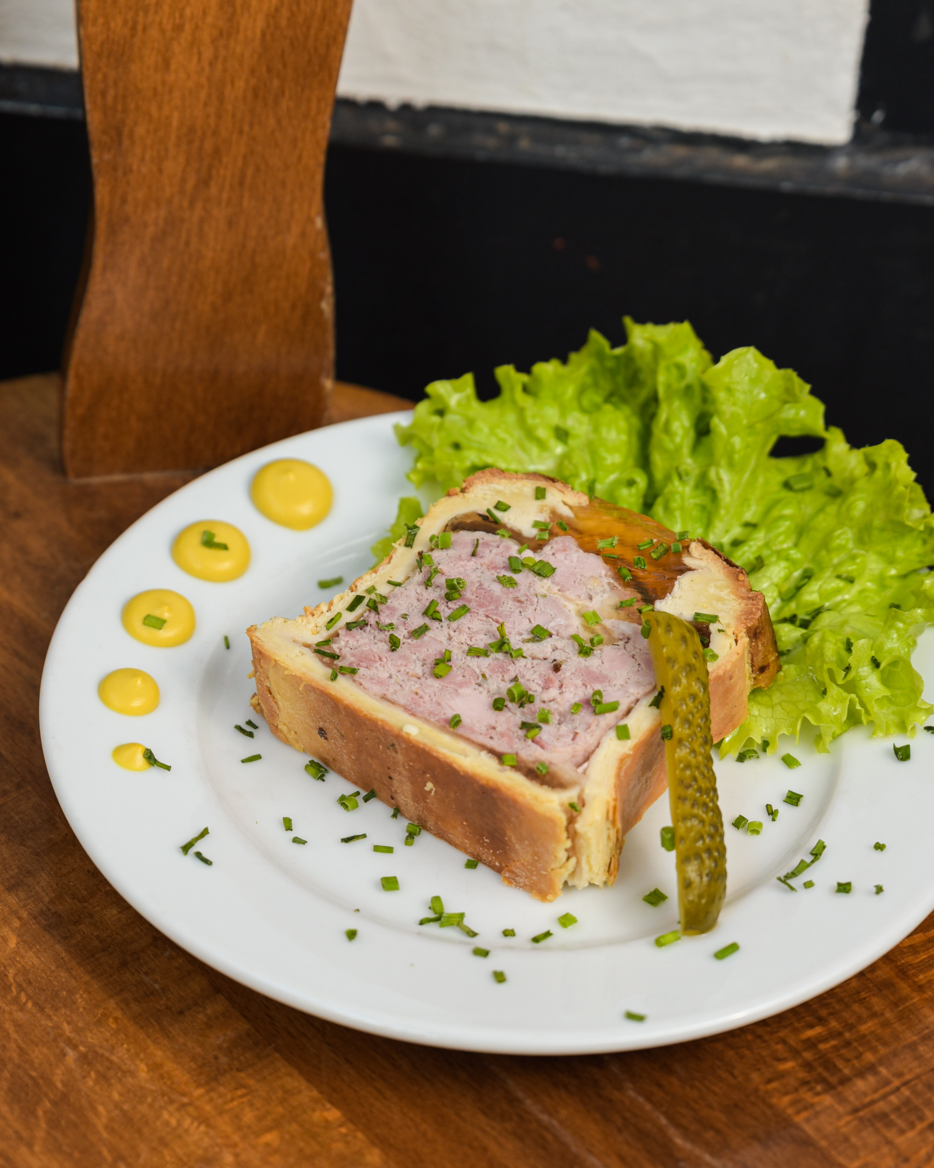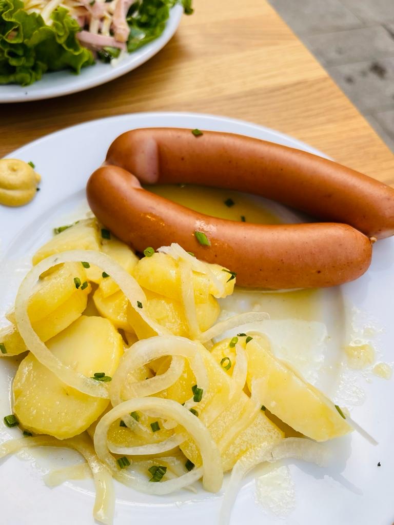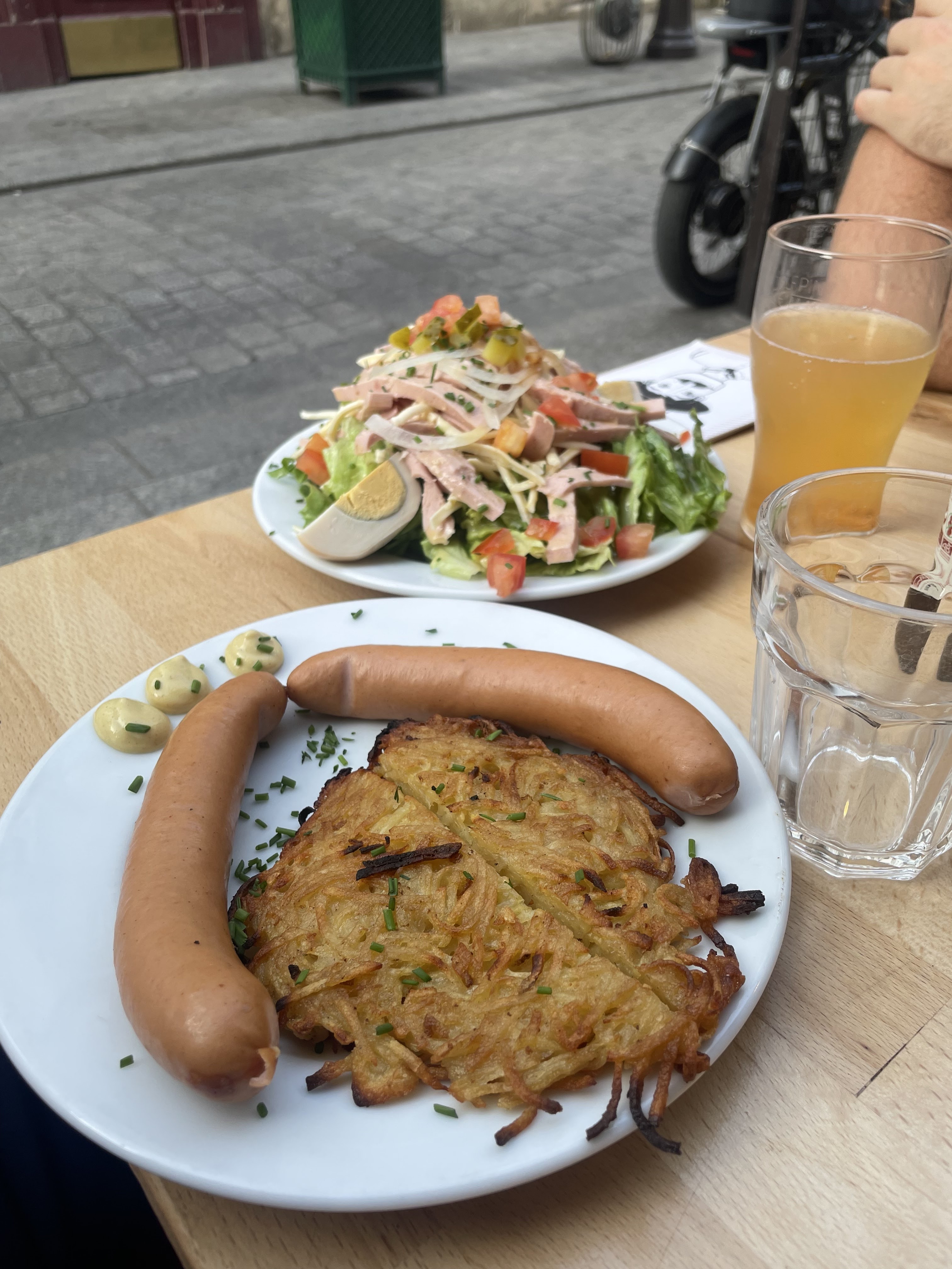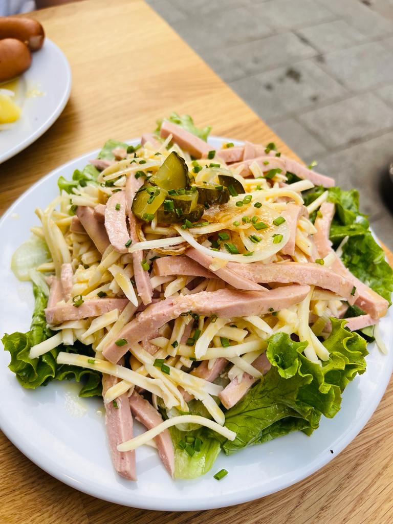 Tarte flambée pas assez cuite et tiède, tables très petites, on avait à peine fini ( il me restait un petit bout de tarte qu’on m’ôtait déjà la planche en bois alors que je terminais la salade. Déçues. Les spaetzele au munster très bonnes mais tièdes.