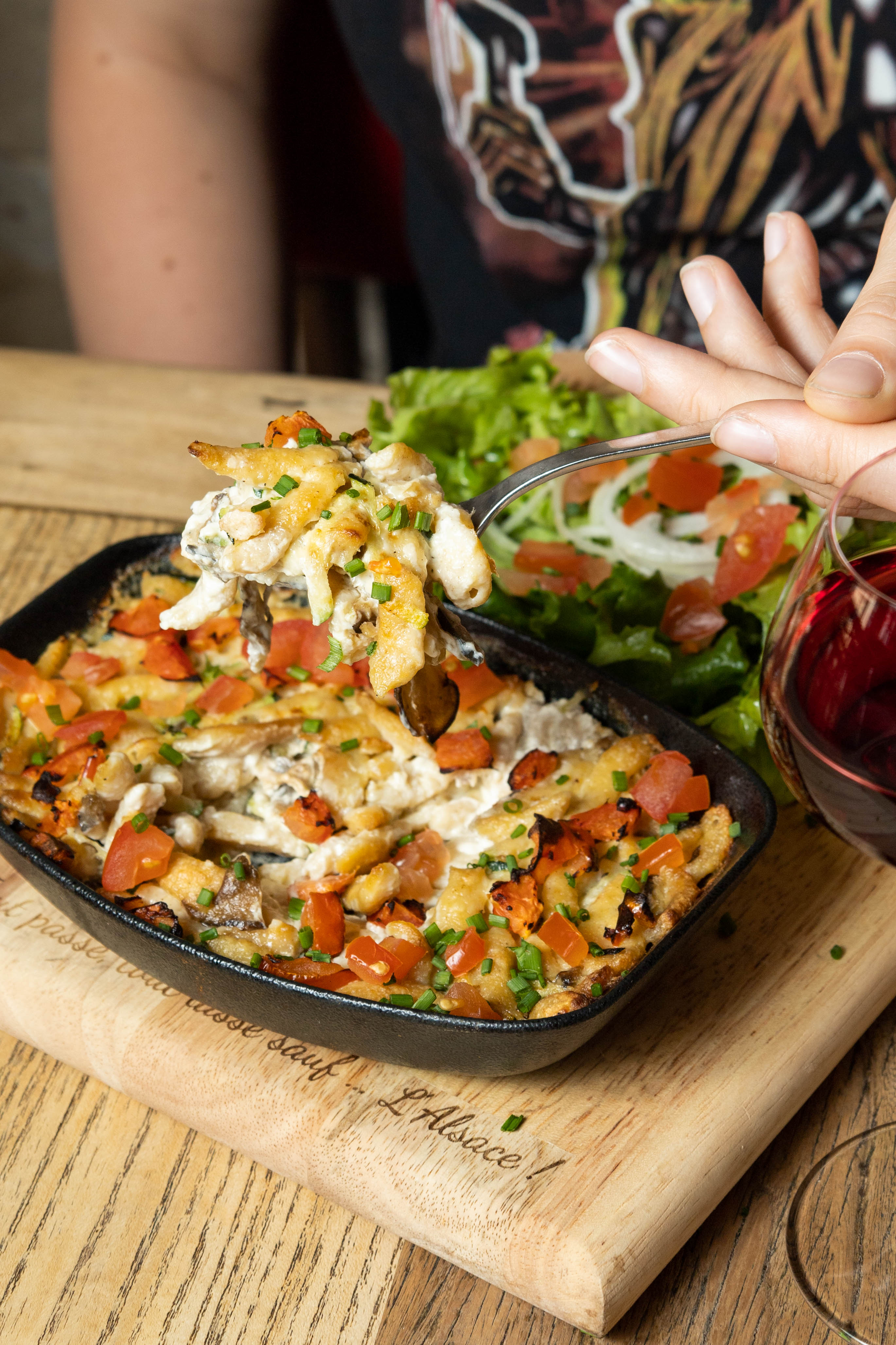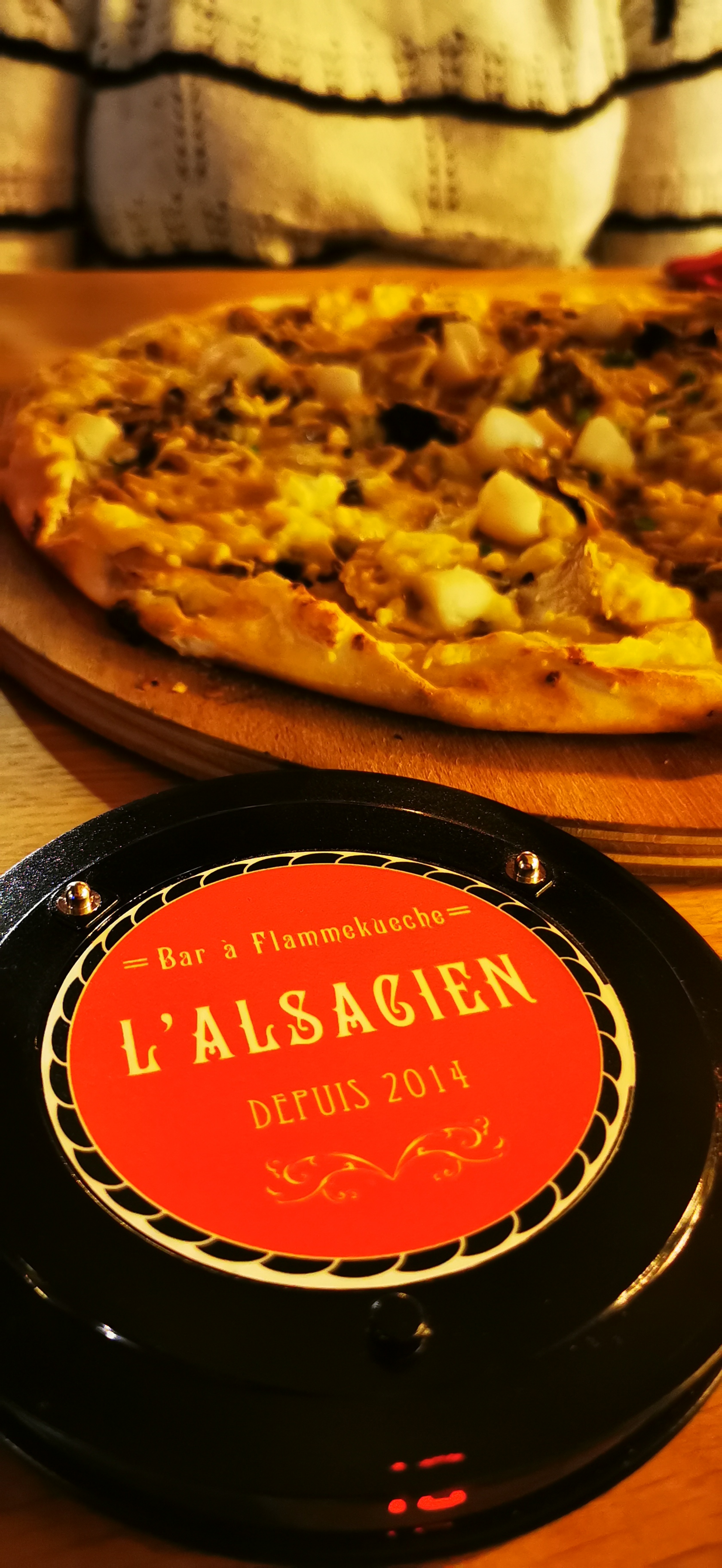 Chère Camille, Toute l'équipe de l'Alsacien vous remercie chaleureusement pour votre commentaire. Nous espérons avoir le plaisir de vous revoir très vite chez nous. C’est notre devoir que de vous voir avec le plus beau des sourires. :) Bisous et Flammekueches