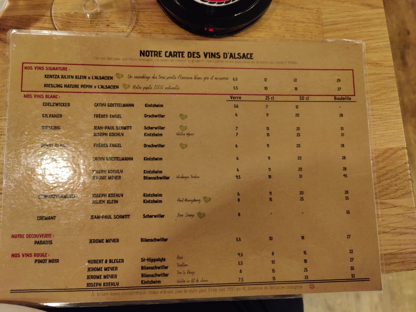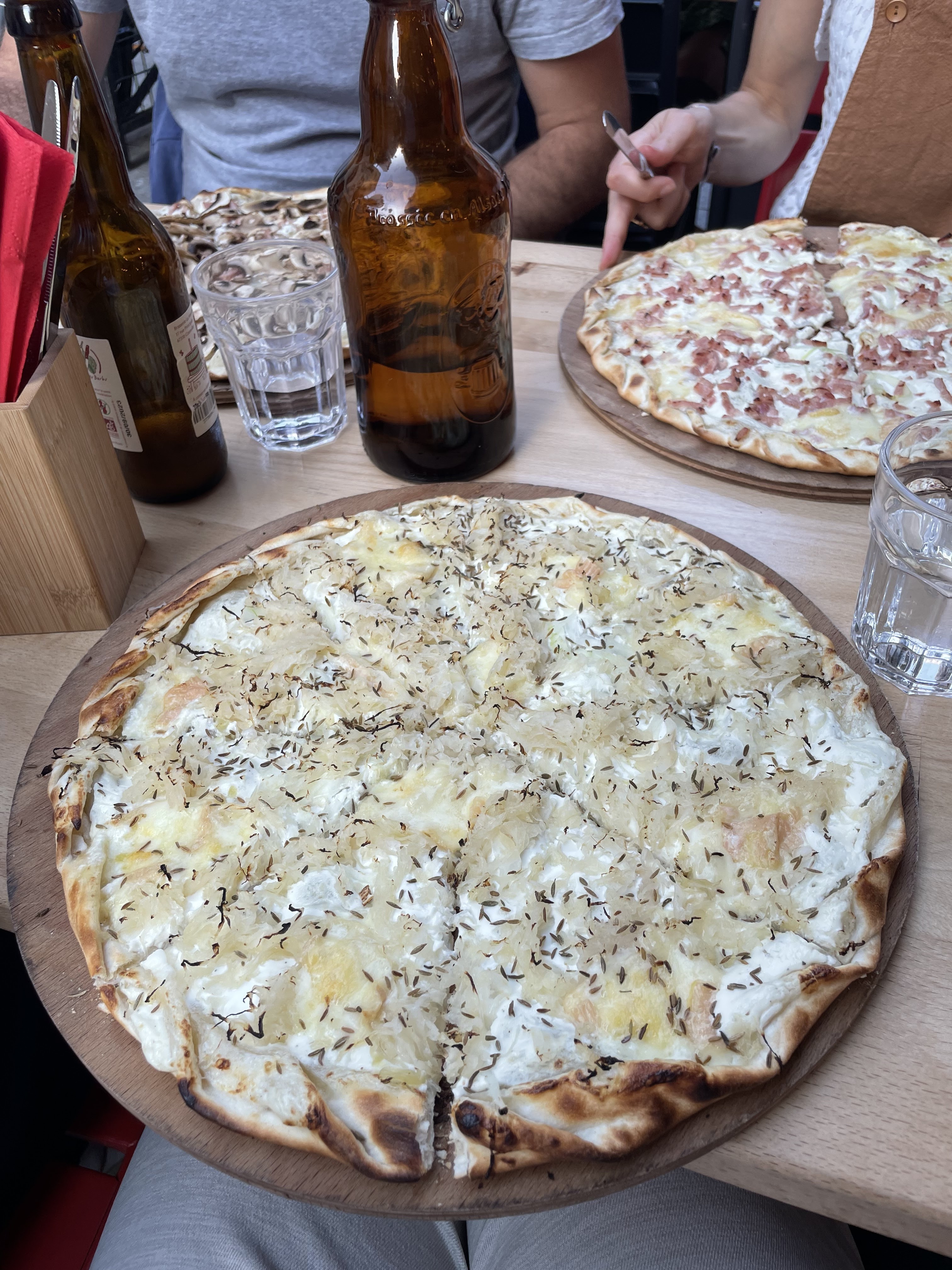 Nous avons passé un très bon moment en Alsace ;) C'était super de pouvoir retrouver des produits que l'on ne voit pas au supermarché à Paris !! Service relativement rapide, très bonnes flammenkuches, et des serveuses adorables : )