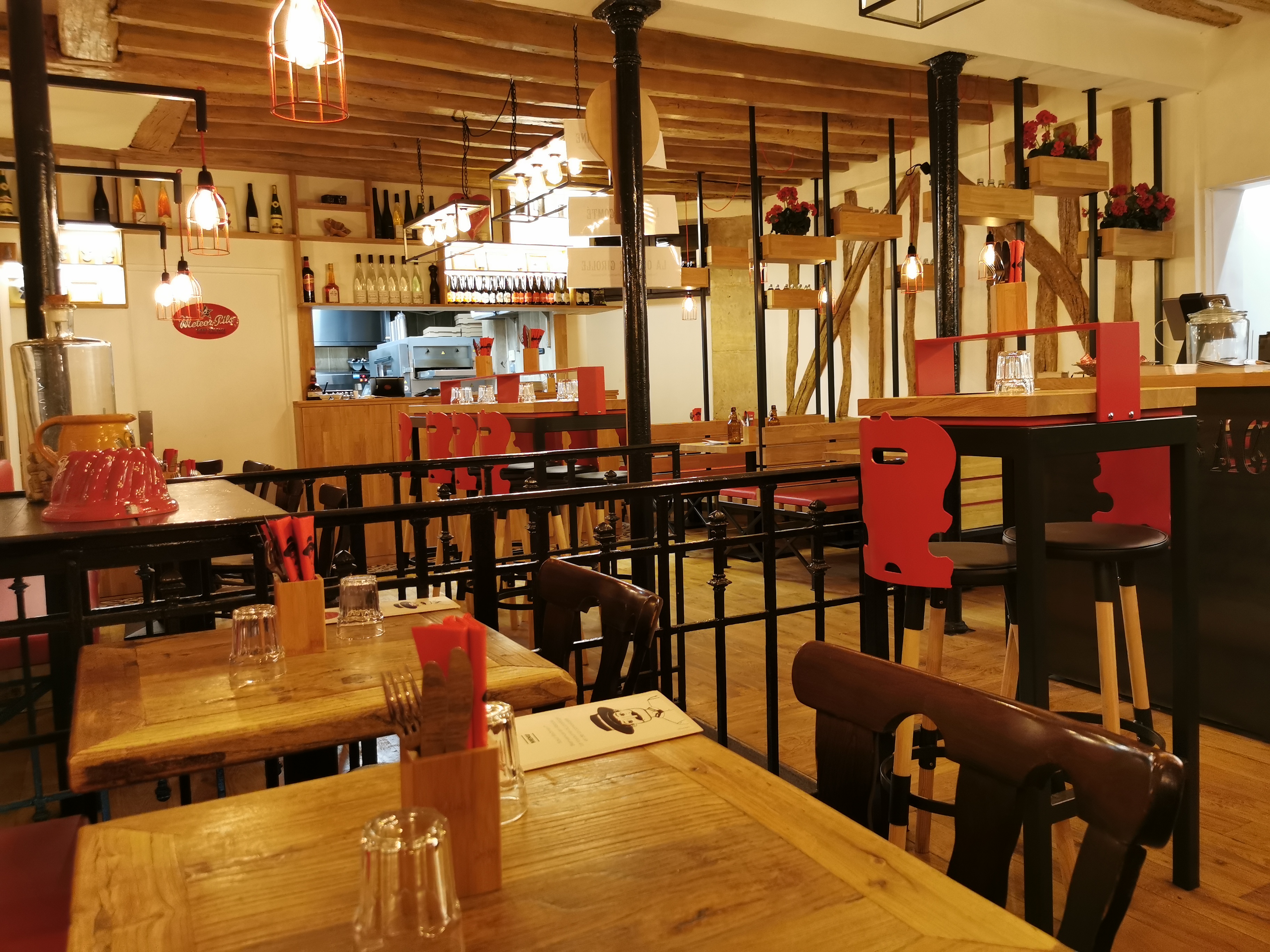 Restaurant alsacien. Idéal pour manger des flamenkuch et déguster des bières d'Alsace. La salle est très jolie