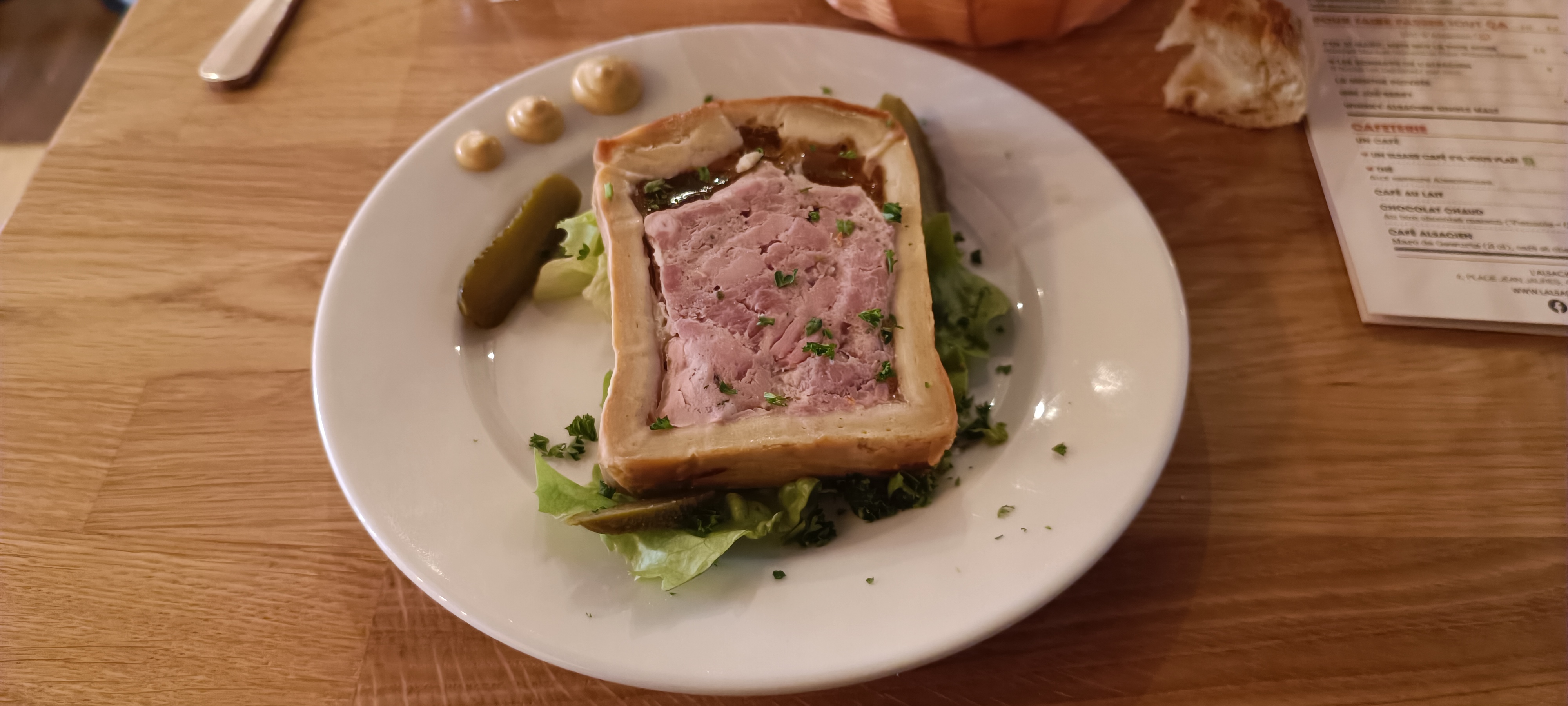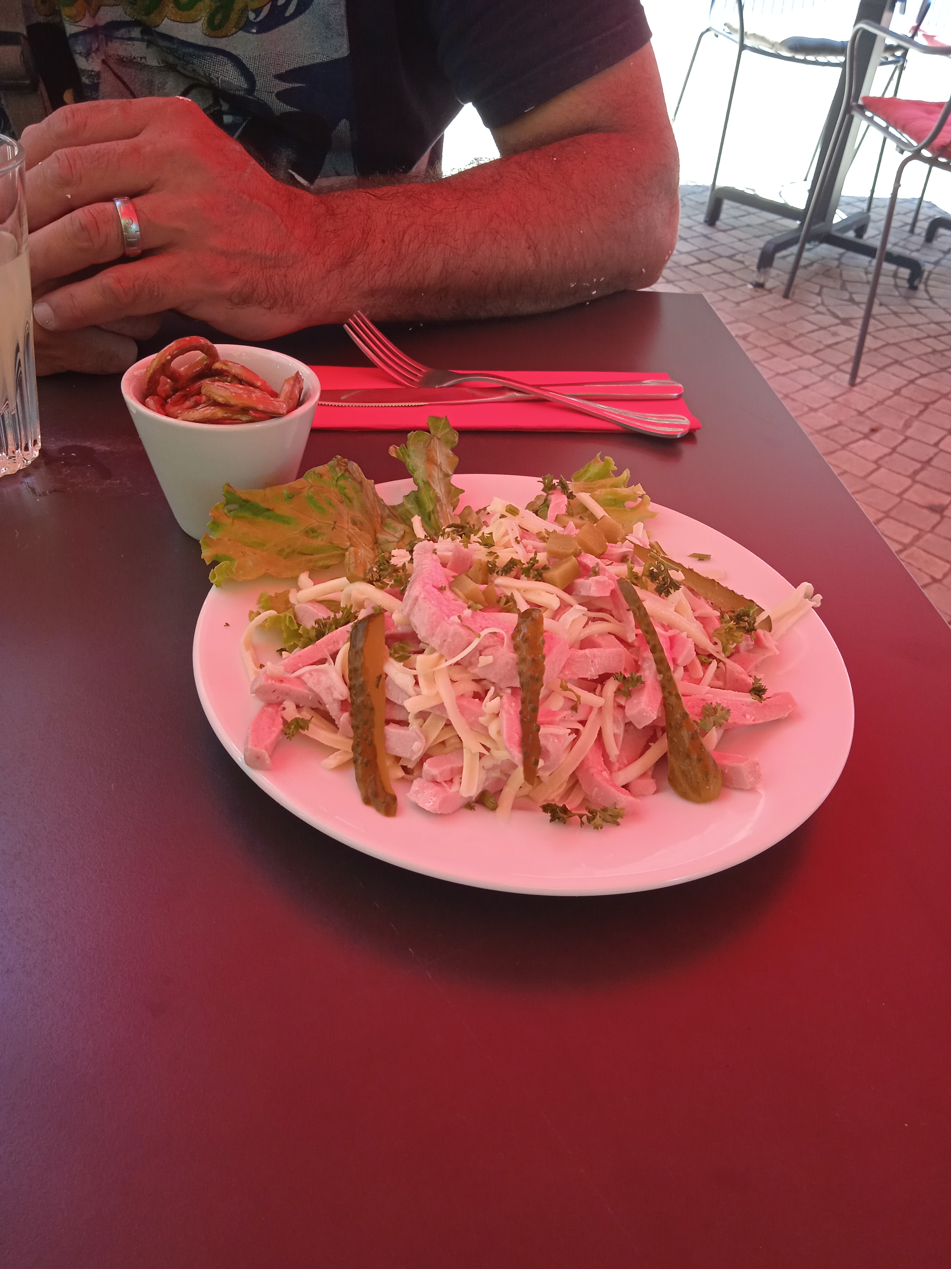 Service impeccable, serveur souriant et très aimable. Tout commence bien, pardon pour la suite mais le vin pas à la hauteur et la salade mixte (où sont les cervelas d’Alsace?). J’aurais essayé