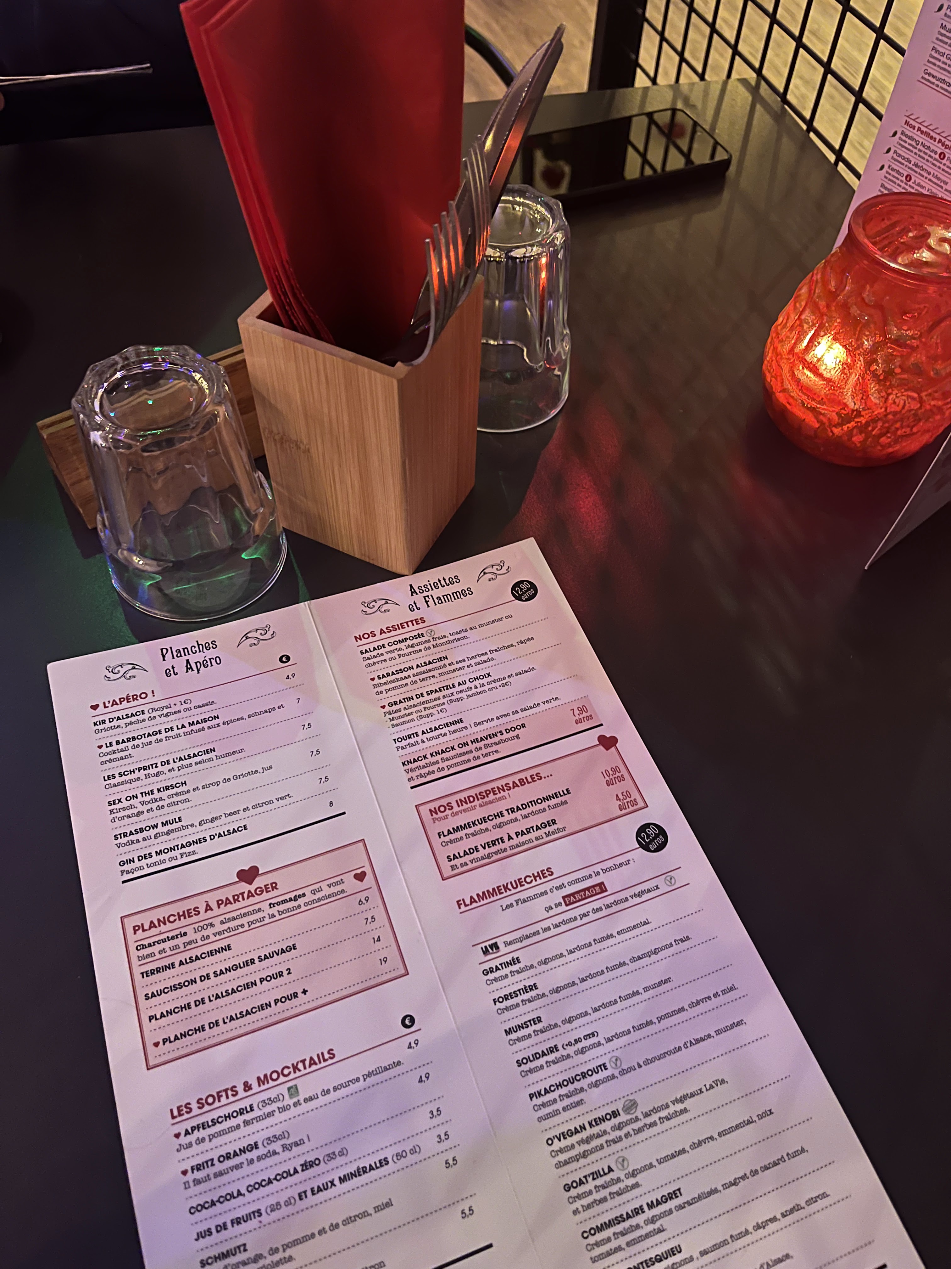 Agréable repas à l’Alsacien ! Les flammekueches sont excellentes (petit coup de cœur pour celle au chèvre miel) et même les sucrées ! Parfaite adresse pour partager un bon moment et un bon repas 😉 Merci pour le service et la bonne humeur de l’équipe !