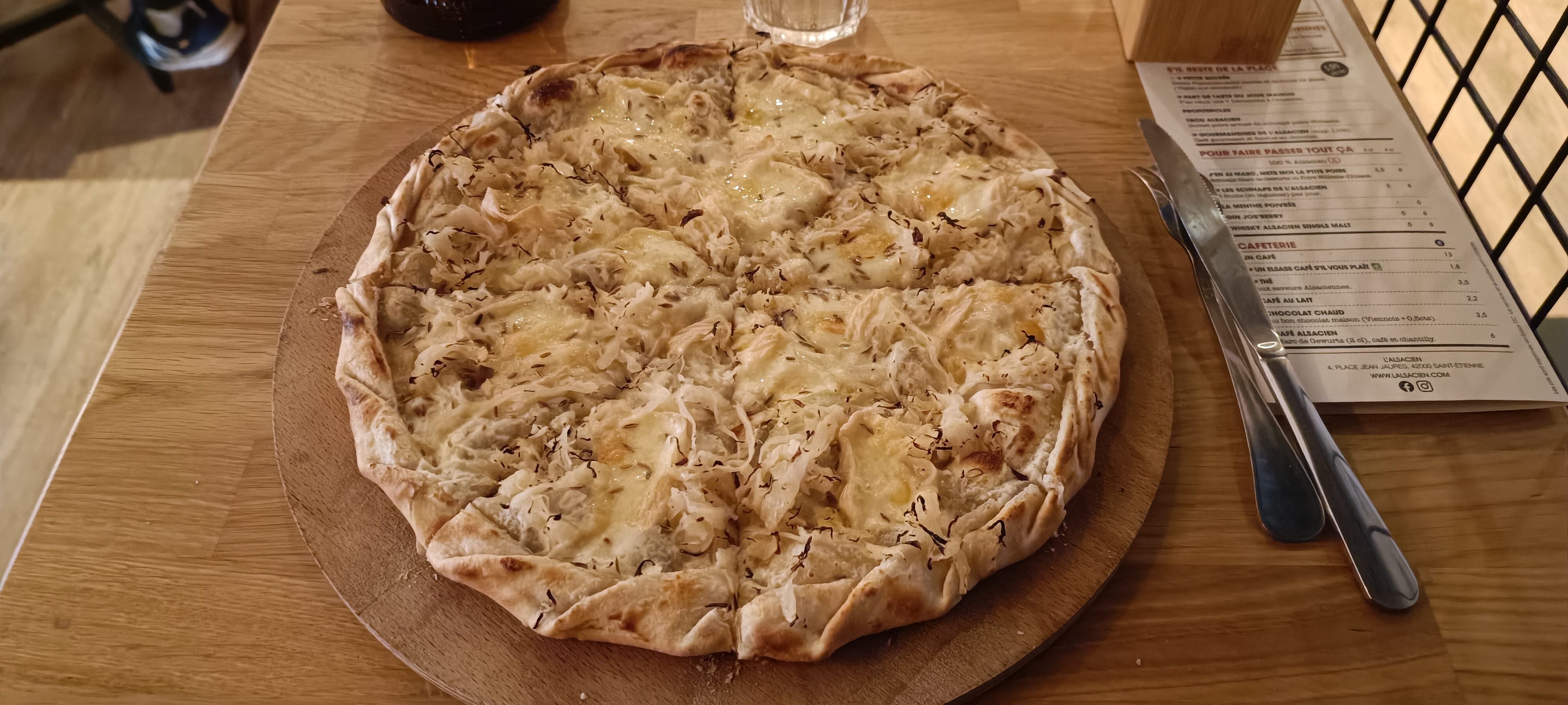 Chère Julie, Un grand merci d'avoir choisi notre Bar à Flammekueche pour votre séjour à Saint-Etienne, nous mettons à coeur de vous distribuer un peu de bonheur en ces temps particuliers.... Au plaisir de vous revoir à l'occasion d'un autre passage ! Bisous et Flammekueche !