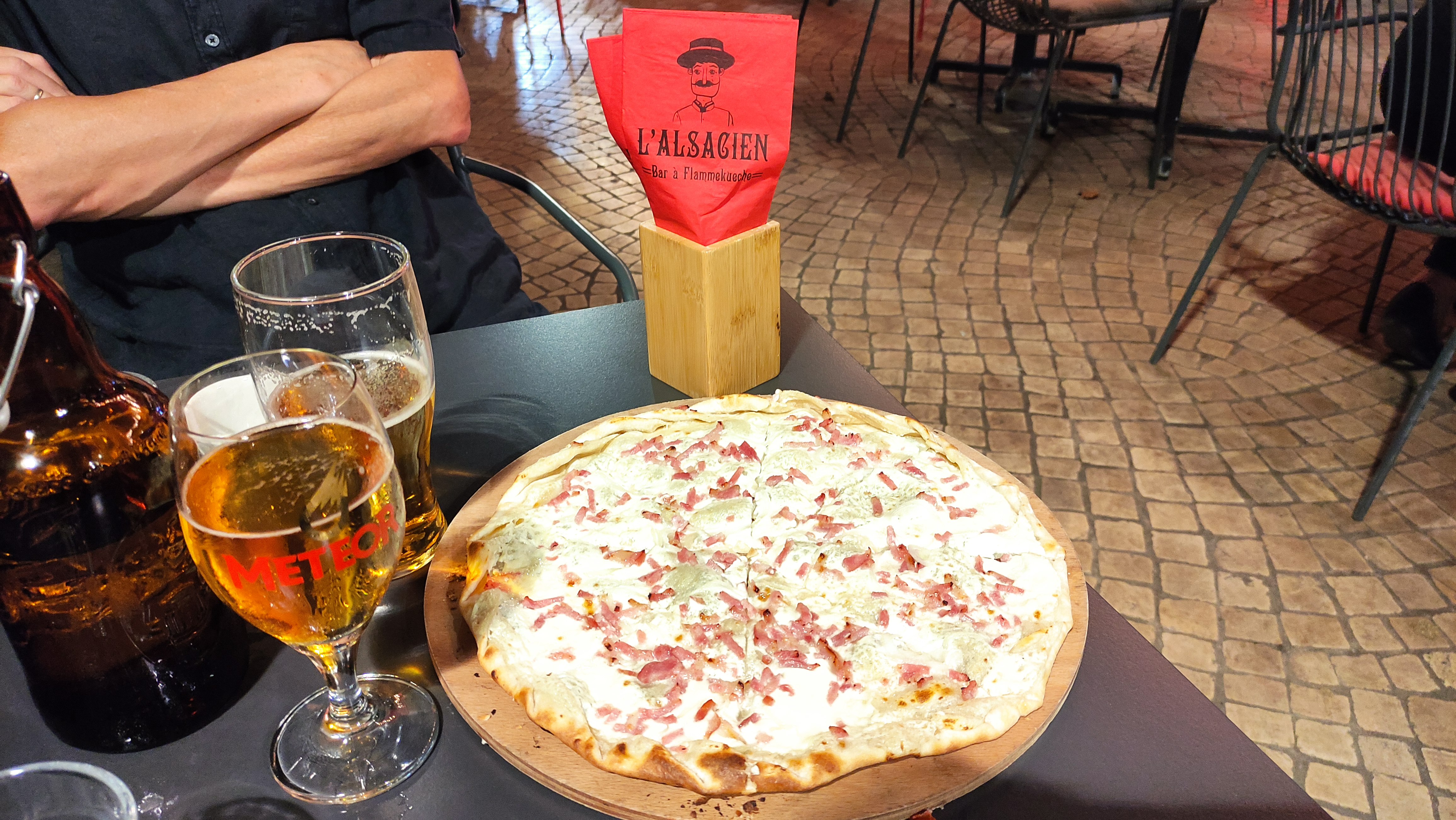 Bon moment passé à la terrasse de L'alsacien. Flammekueches bien cuisinées. La spécialité du moment, celle à la fourme, pourrait être mangée sur la tête d'un pouilleux ! Les serveurs sont souriants, ils font attention à leurs clients sans être sur leur dos sans arrêt. Ce restaurant gagne à être plus connu : si vous cherchez un restaurant place Jean Jaurès, c'est celui-ci qu'il faut essayer ! Nous, on reviendra !