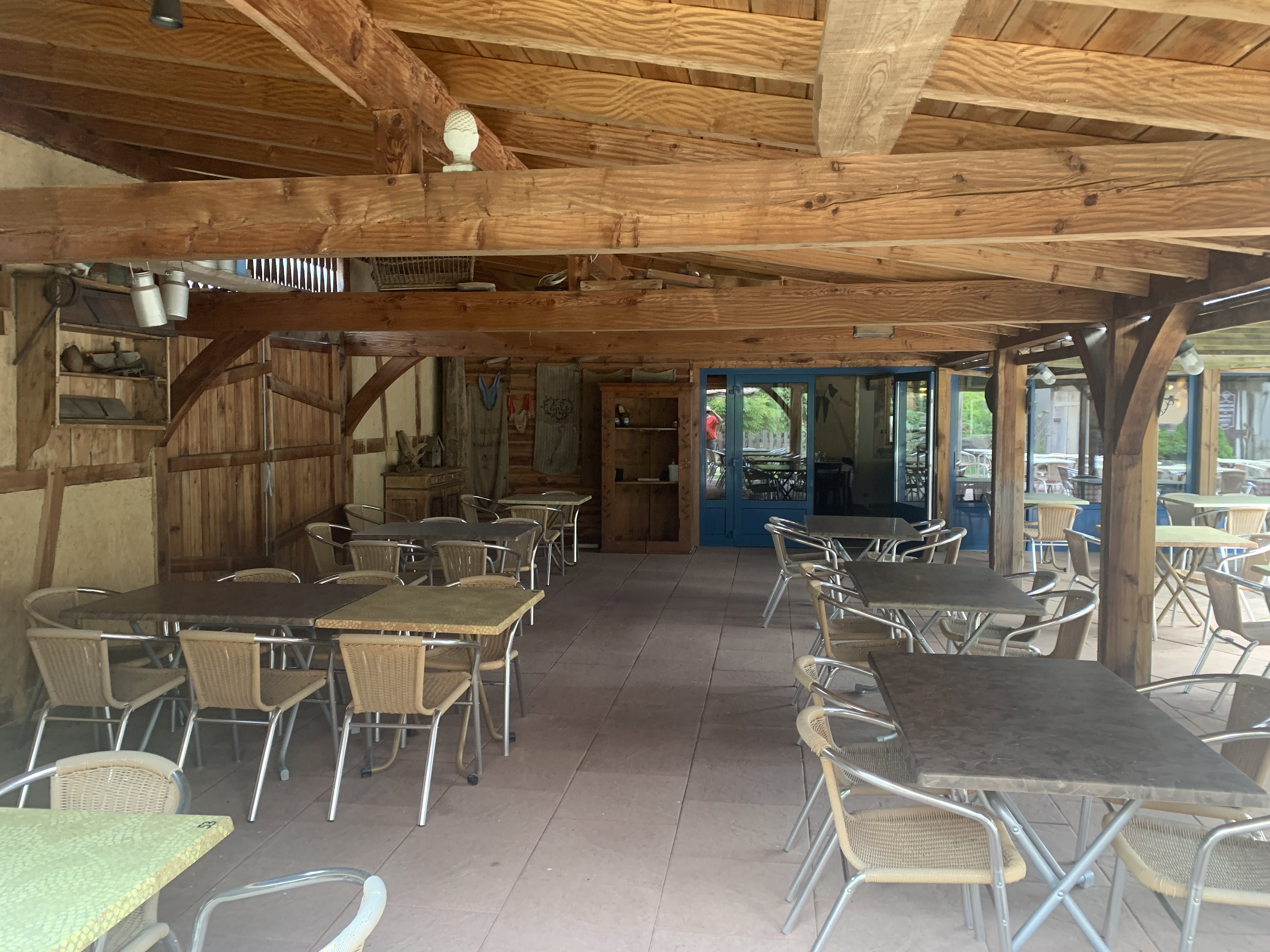 Il faut aimer le cadre rustique et ancien d autrefois. Bien décoré, beaucoup de boiserie, grande et agreable terrasse couverte. Tres bons menus et platcdu jour. Rien a redire