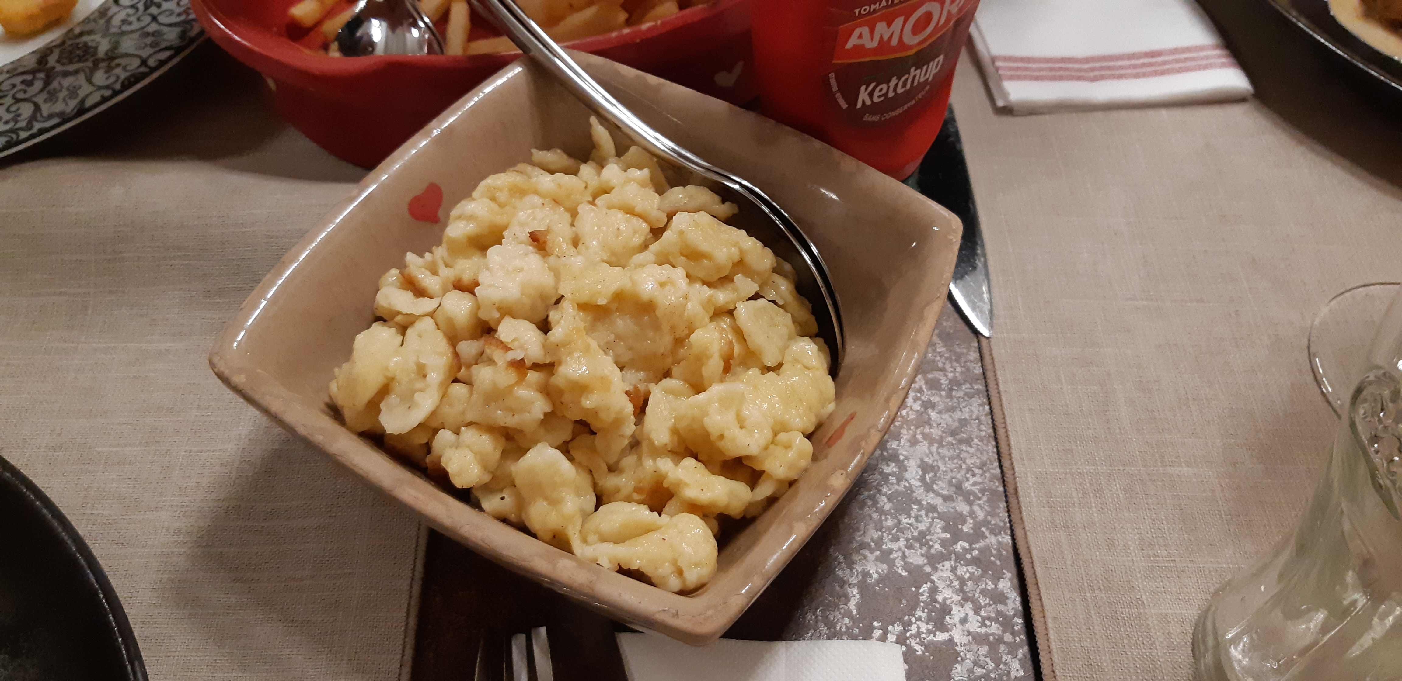 Un établissement qui était jadis ma cantine. J’y retourne après un changement de propriétaire (la cantine, c’était il y a plus de 10 ans) mais les kaseknaepfle étaient toujours là, et toujours aussi bons. Petit bémol quant au bruit ambiant dans la salle du aux clients et en vendredi soir. Disons que ça couvrait celui de nos enfants ;)