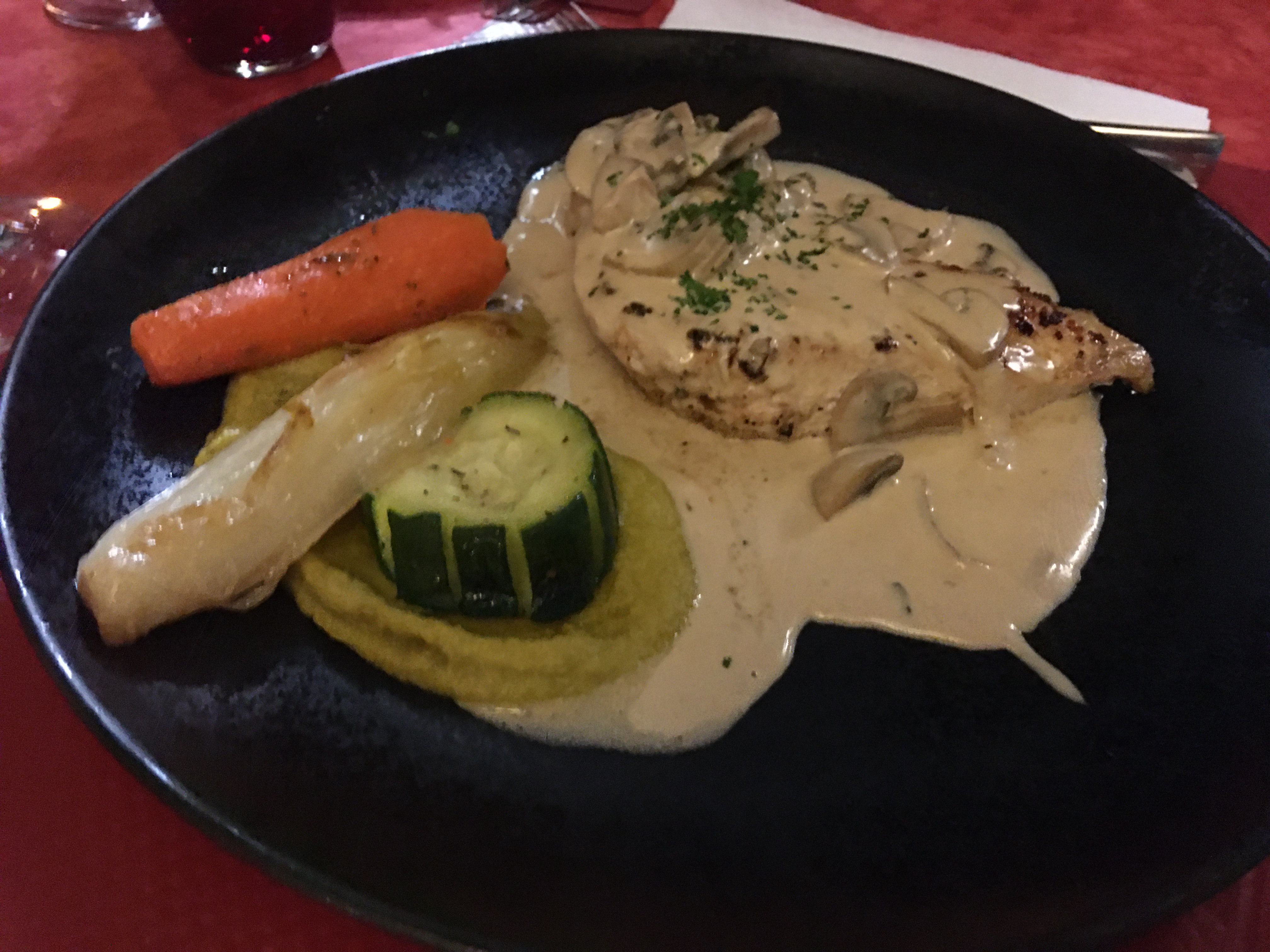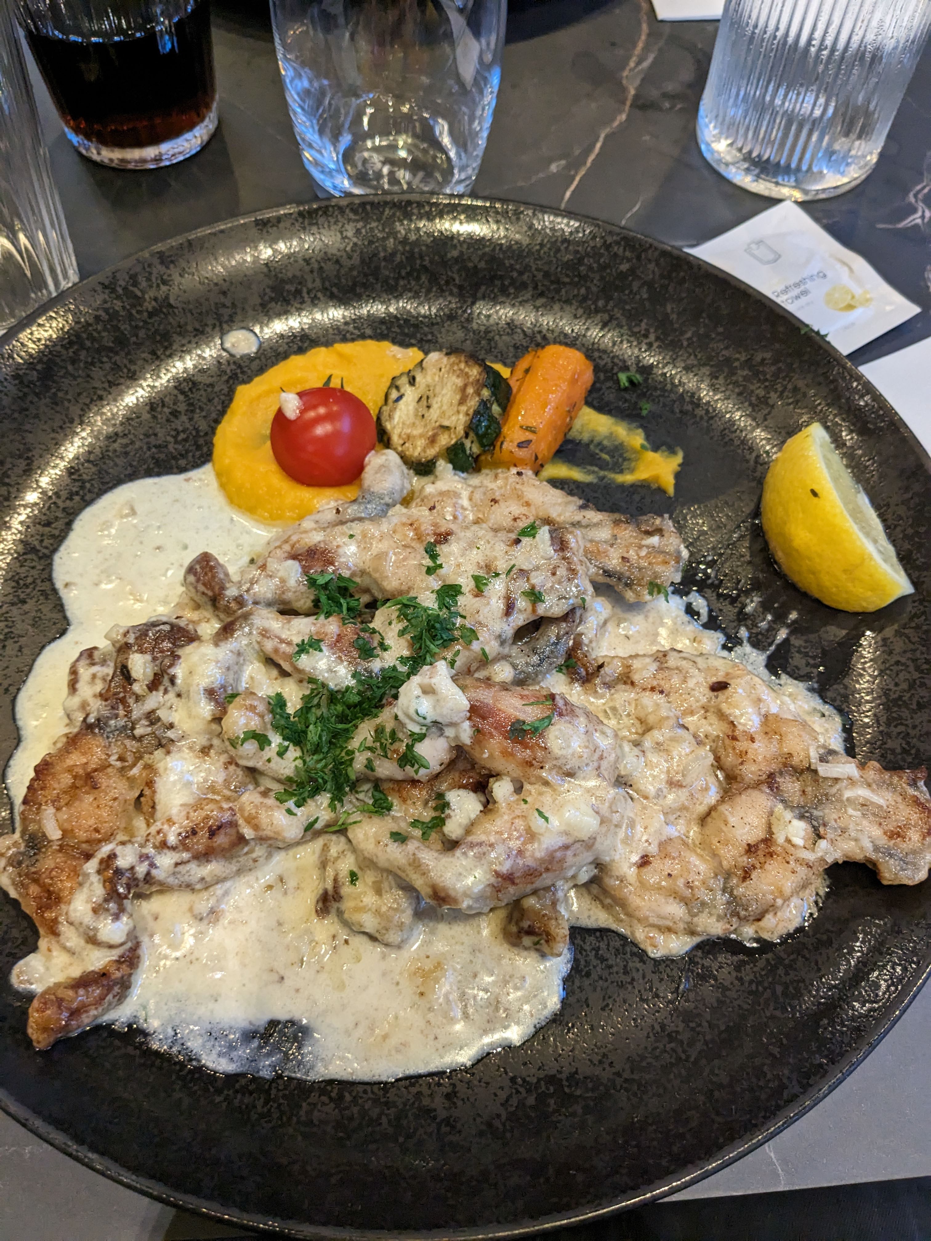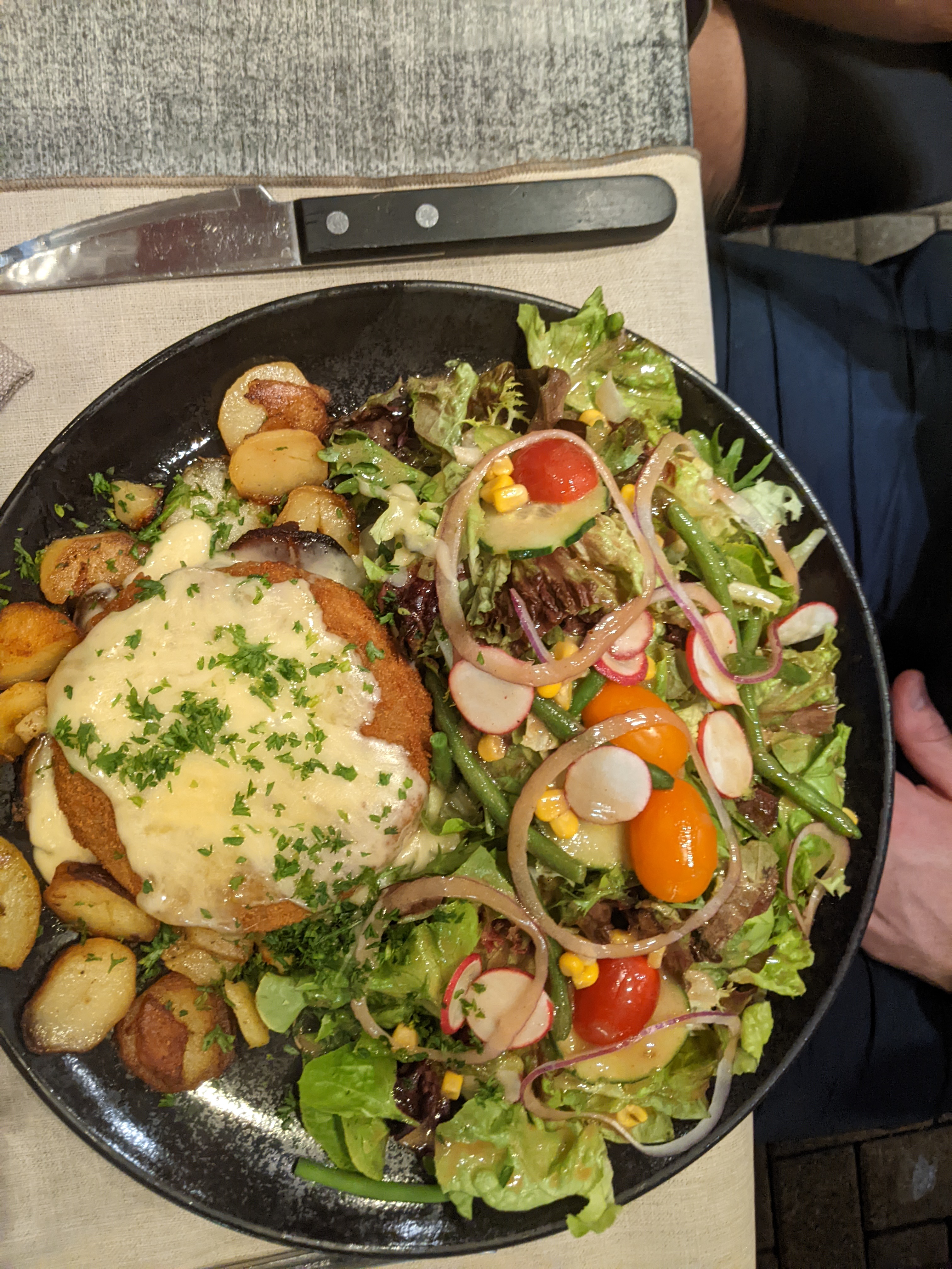 C'était très bien, très bon dîner, la tarte flambée est très bonne, les cordon bleu très bon, bien servi et pour terminer nous avons pris un café gourmand très bien réalisé et très bien servi. Service impeccable. Nous avons passé une excellente soirée.