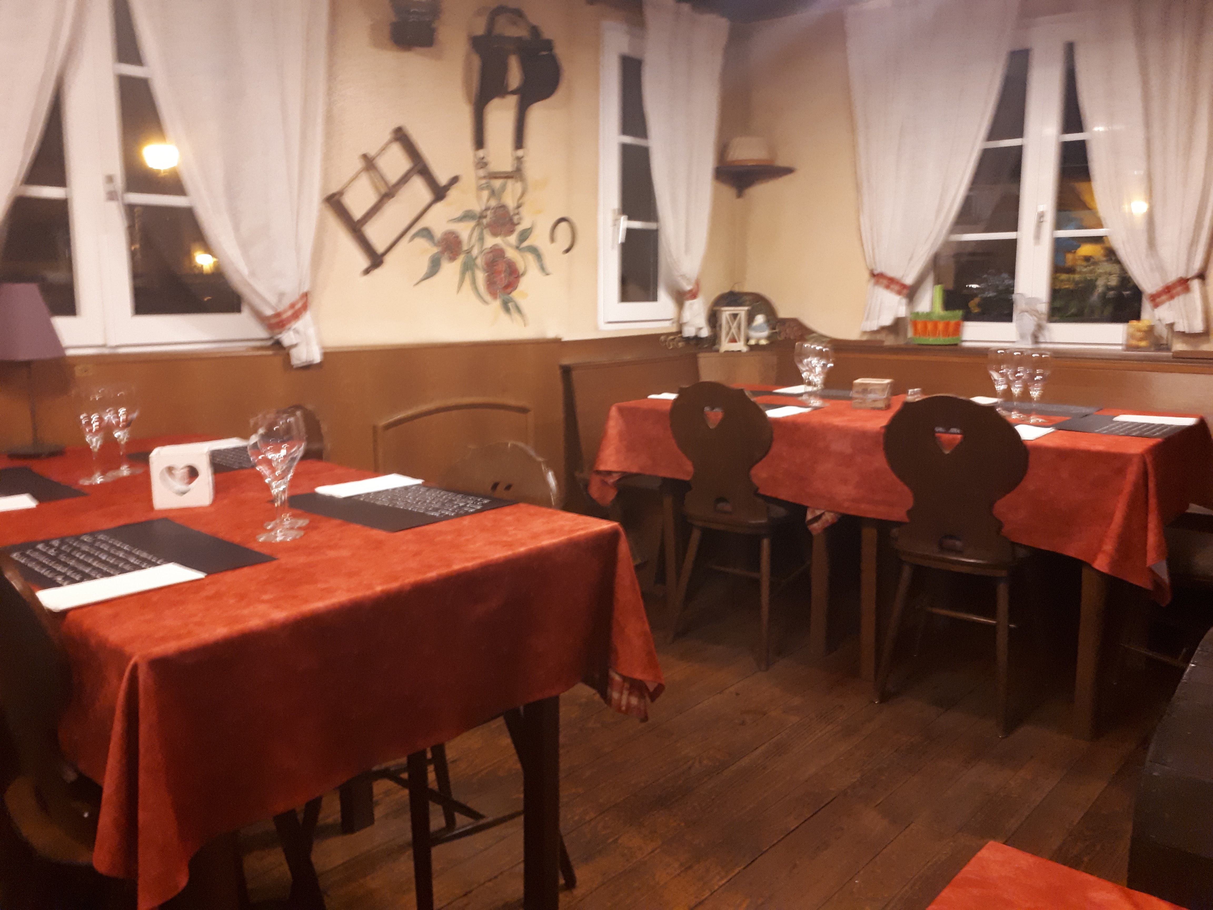 Nous avons réservé une table pour 4 personnes dimanche soir, à part la serveuse qui a fait de son mieux pour être professionnelle, le service était limite déplorable (viande arrive sans ses pommes de terre en contour, cuisson bâclée, tarte flambée demandée sans oignons mais arrive avec,vin arrive au milieu du repas etc etc). Déçu car nous venions dans se restaurant depuis plus d'une décennie (nous avons connu les anciennes gestions) toujours super satisfait à l'époque. Dommage....