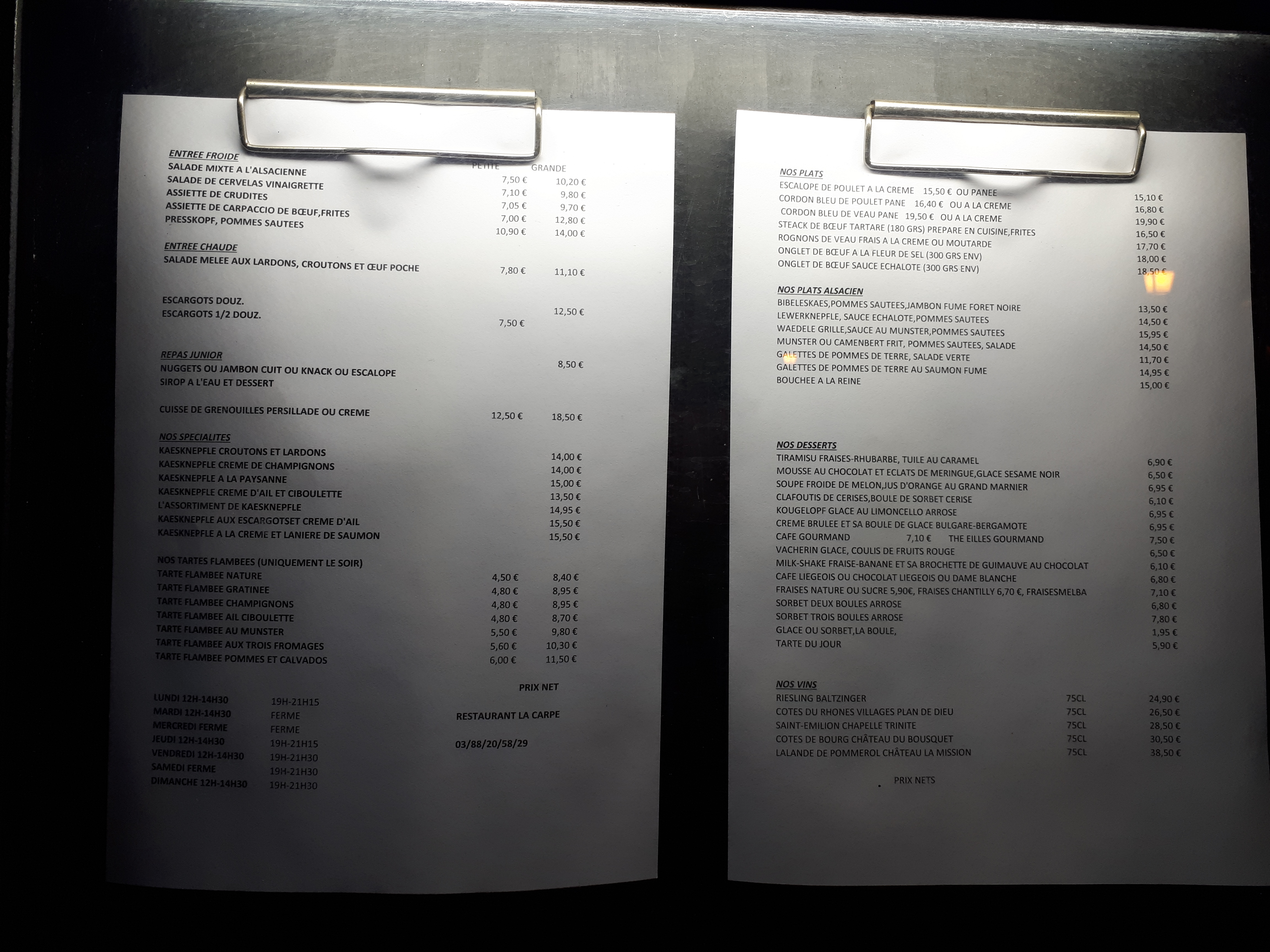 Plats alsaciens très bons Accueil toujours sympathique avec le sourire Je recommande les kaesknepfle....les tartes flambees...toute la carte en fait. À chaque fois que je m'y rends l cuisine est top. Tout le personnel est plus que serviable. Toujours un plaisir d'aller à la Carpe et de faire découvrir ce restaurant à nos amis de passage dans la région. Toujours un plaisir de venir à La Carpe...