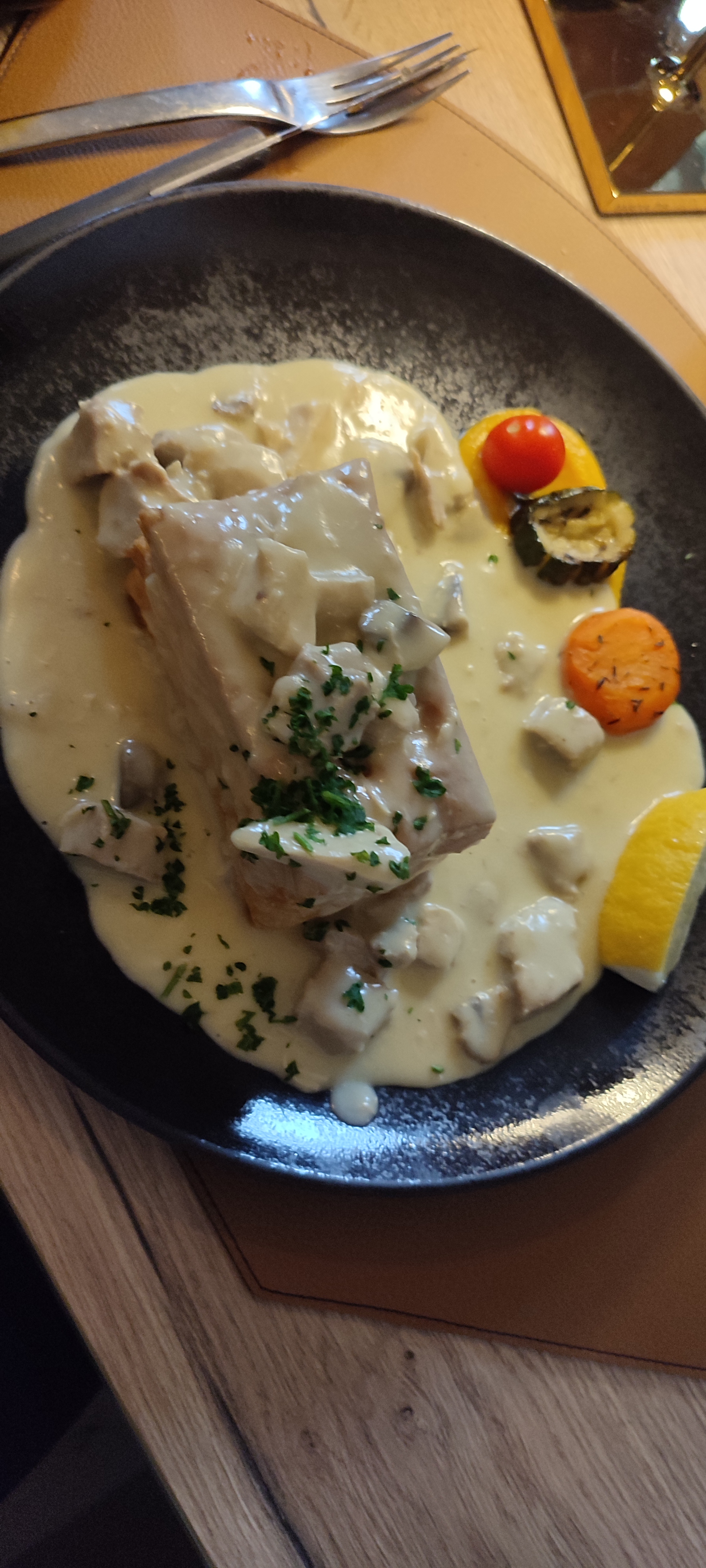 J'avais envie de manger des rognons à la crème. Quel dommage ils étaient durs ainsi que les pommes de terre sautées. Mes amis sont déçus également leurs cordons bleus étaient sec