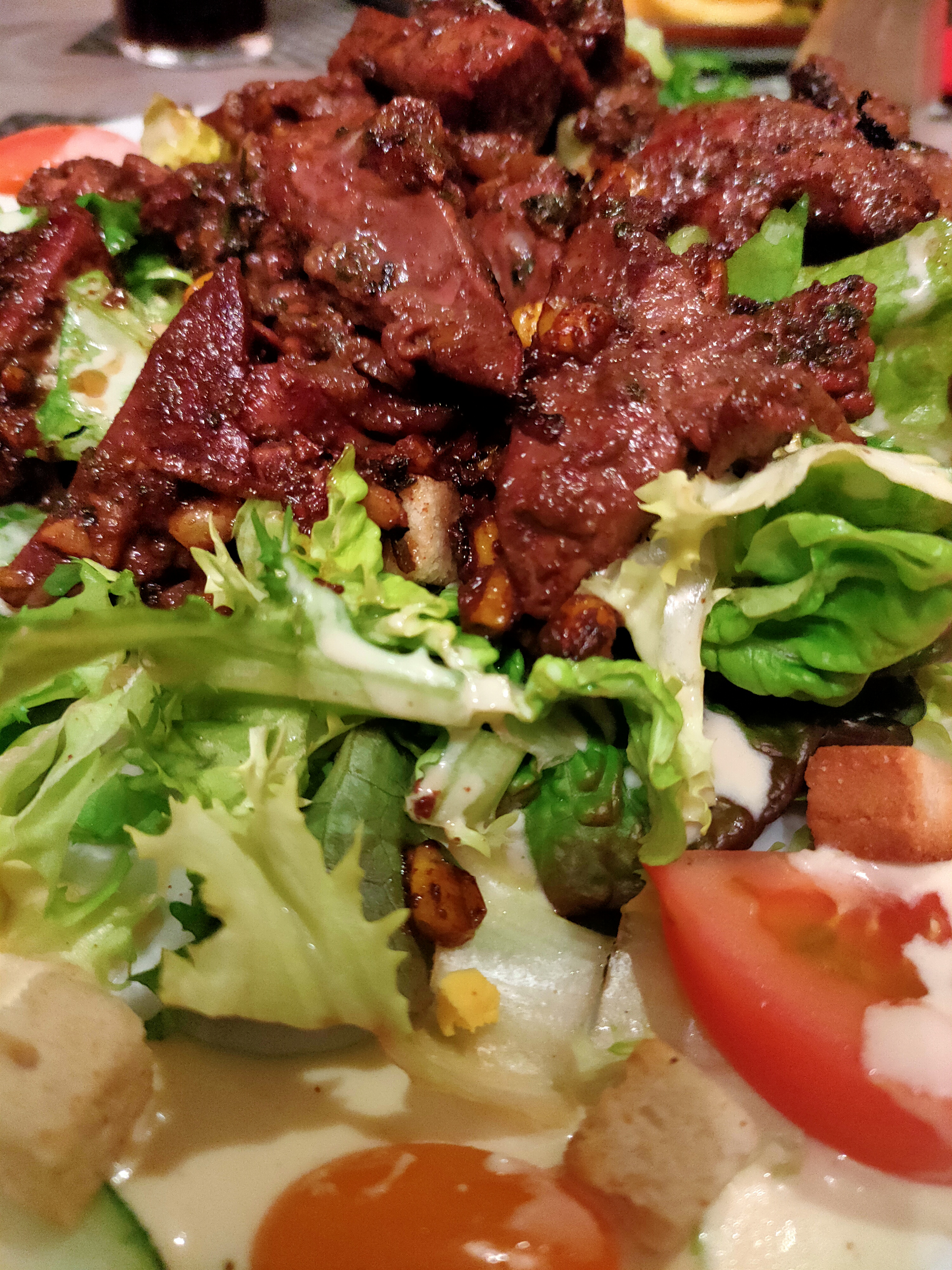 Super salade de gambas et st Jacques ... Foie de veau très bon ... Et la dernière salade César de la saison excellente... Bon cuistot et bon serveur et donc bonne soirée ! Merci