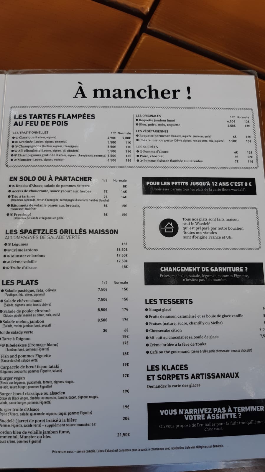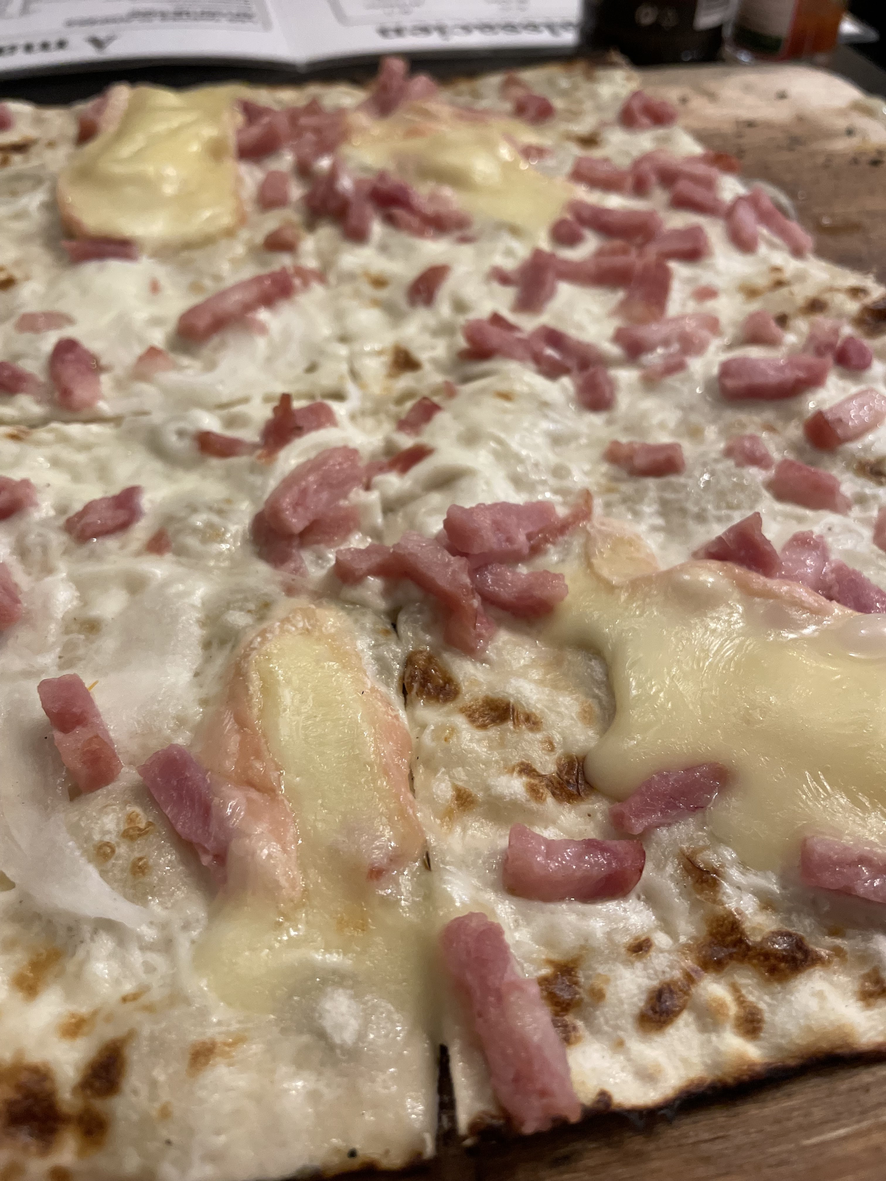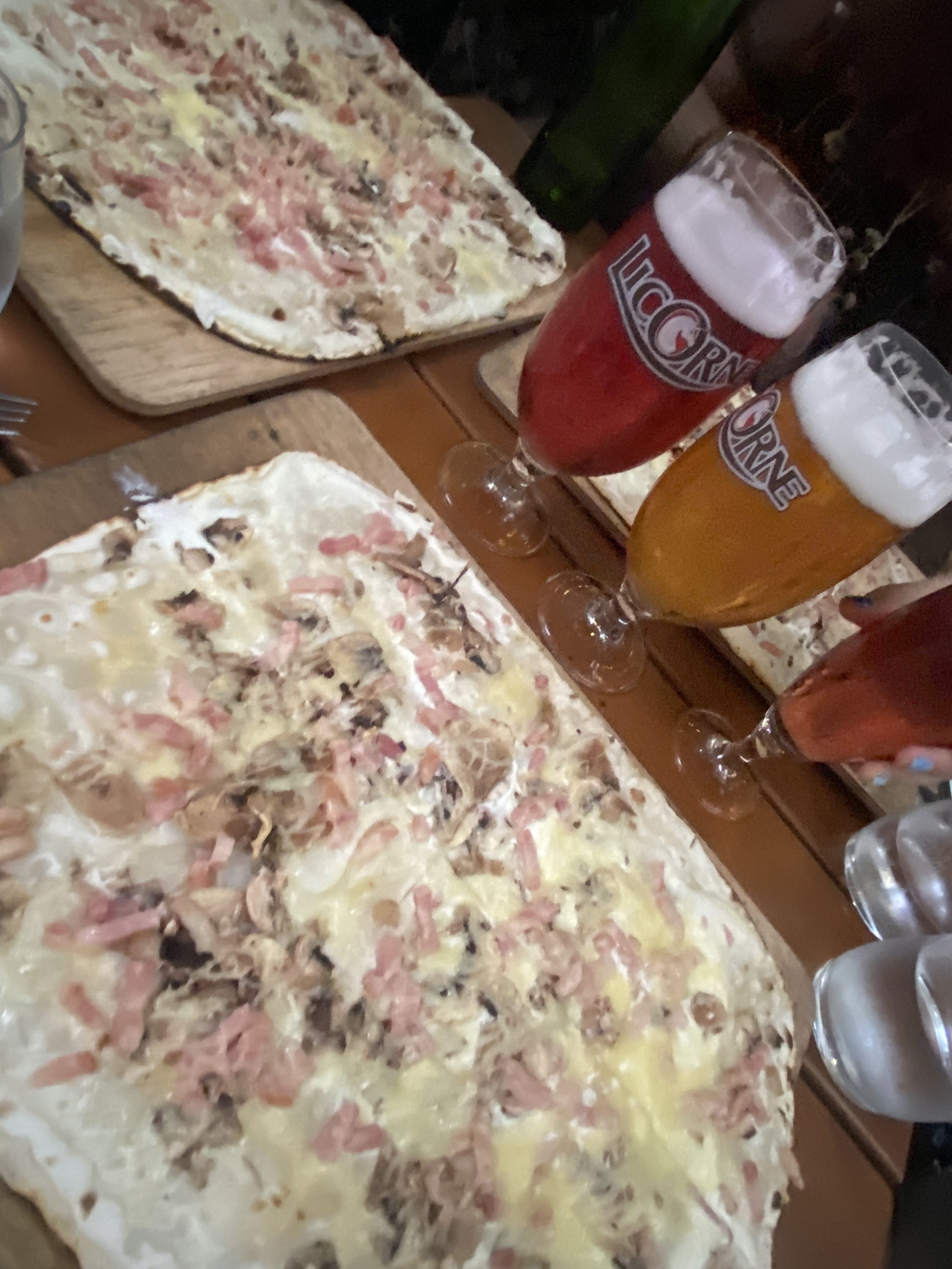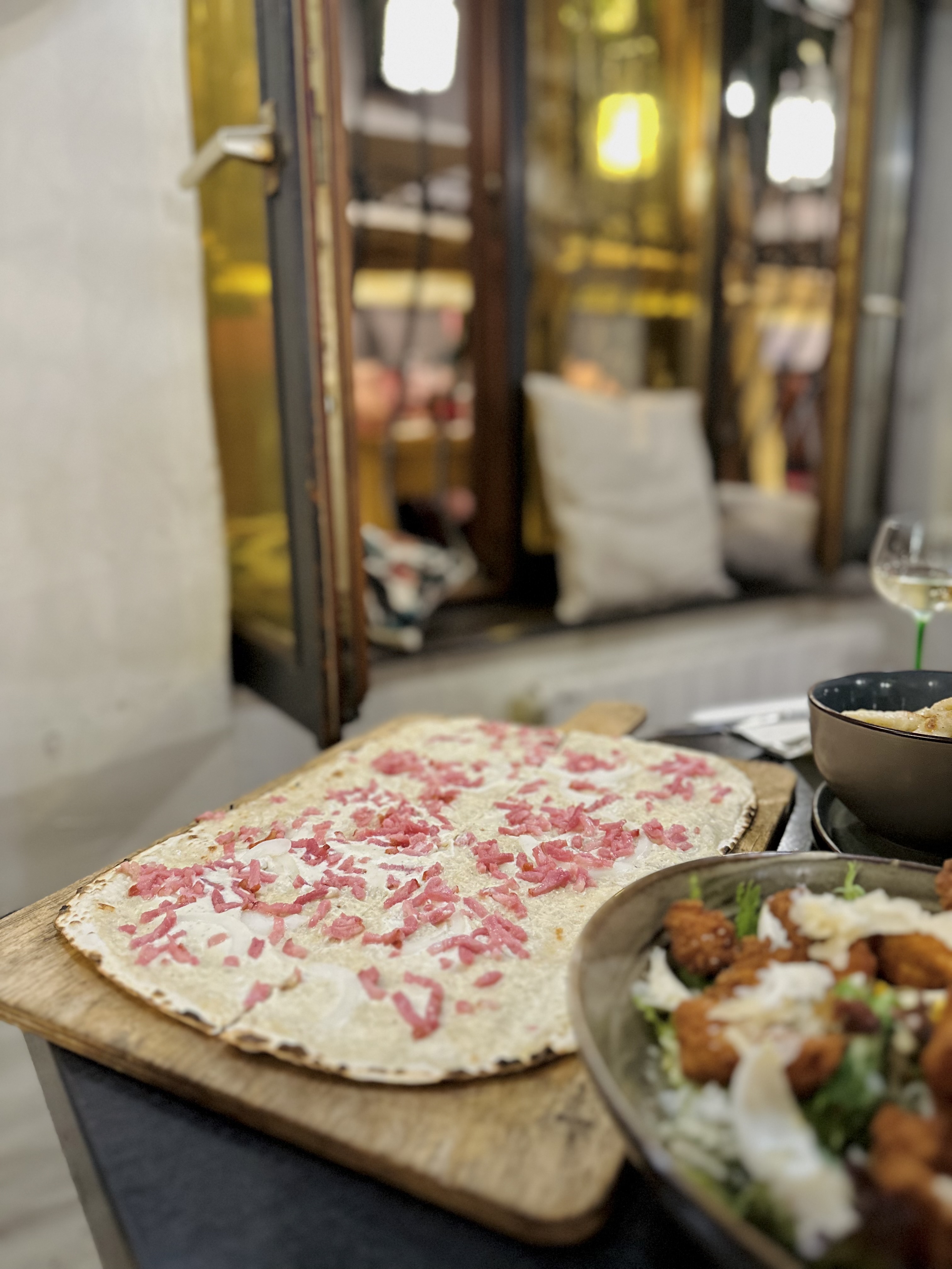 Très bon restaurant, je l’avais vu en recommandation sur tiktok et nous n’avons vraiment pas été déçus!! Nous avons prit un verre de vin blanc, une bière de Noël, deux tartes flambées gratinées (énormeeeeee) et une boule de glace chacun avec de la chantilly et nous en avons eu pour 37€ Les serveurs étaient très agréables et accueillants !!!! La nourriture était extra ! Nous avons attendu seulement 10 petites minutes avant de rentrer mais ça valait le coup !! Je recommande !