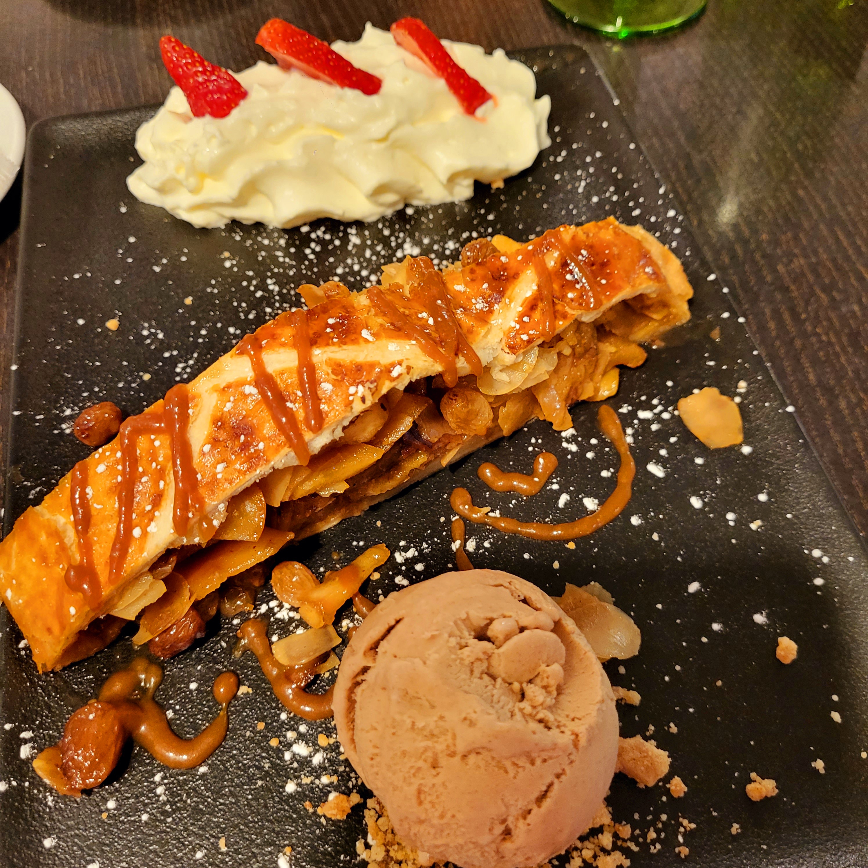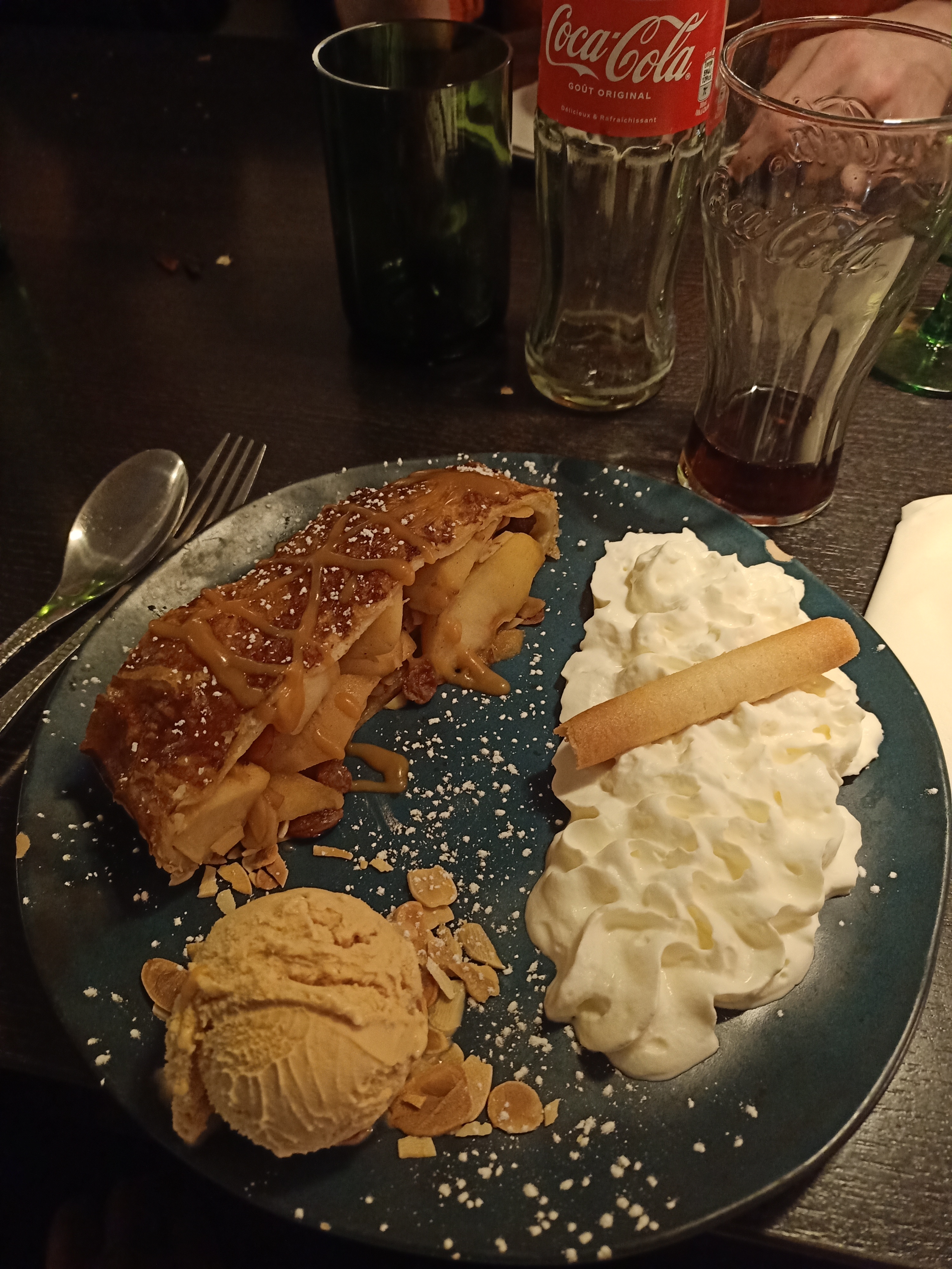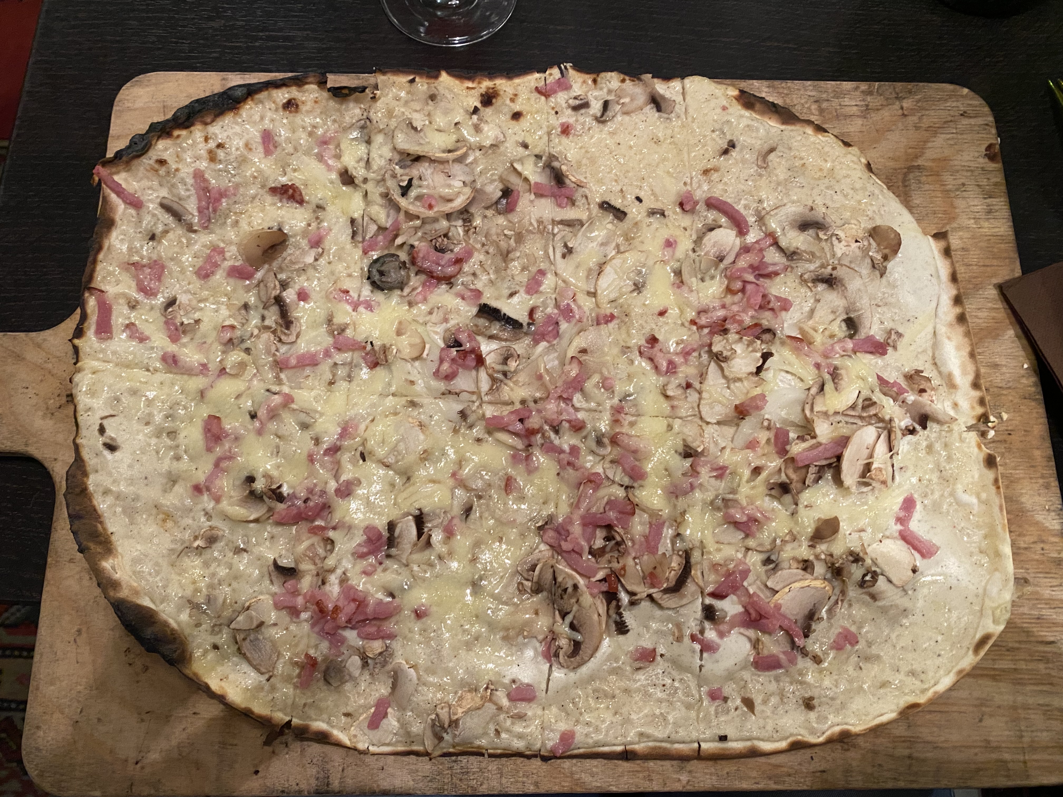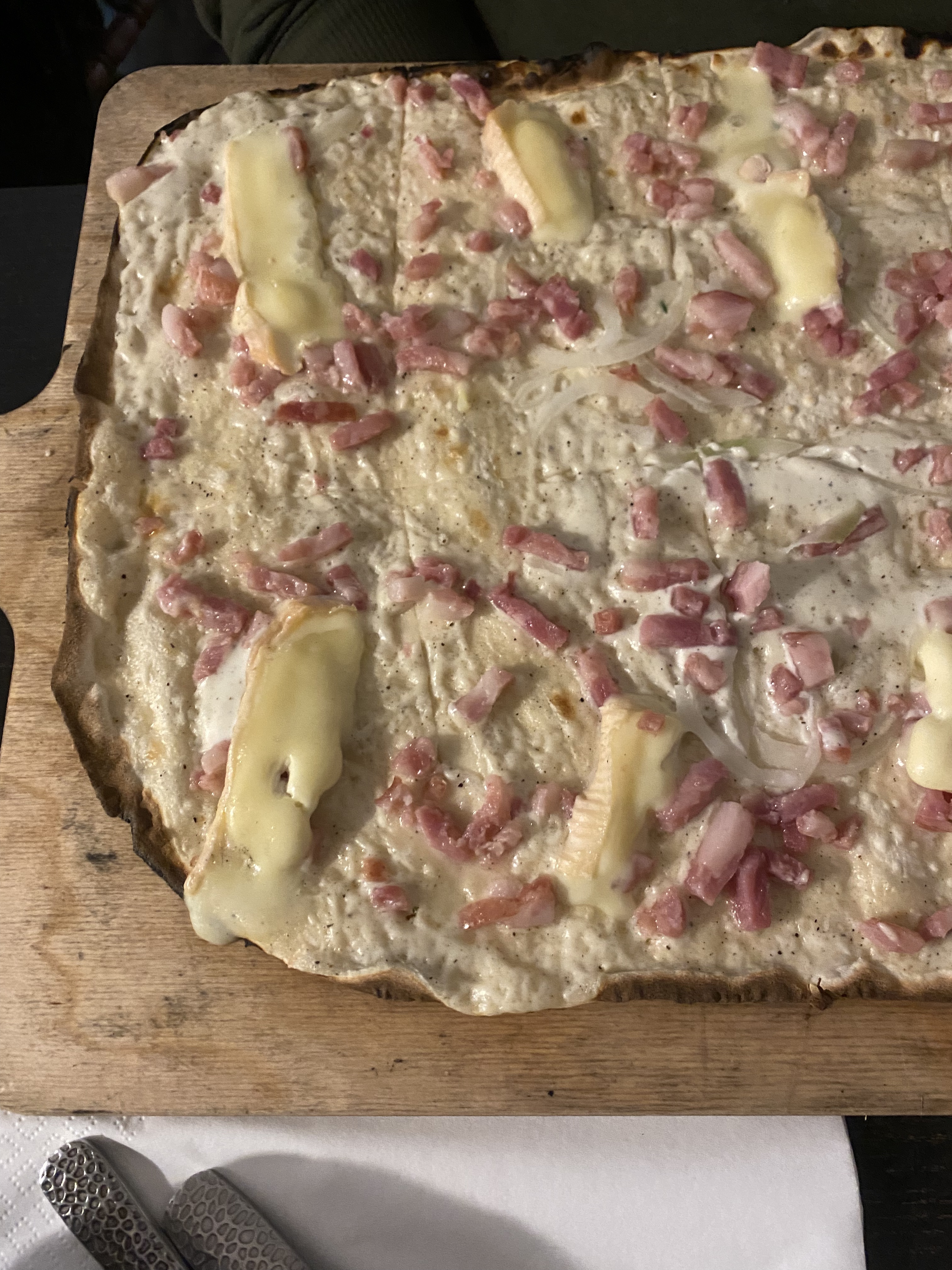 Très bon restaurant, je l’avais vu en recommandation sur tiktok et nous n’avons vraiment pas été déçus!! Nous avons prit un verre de vin blanc, une bière de Noël, deux tartes flambées gratinées (énormeeeeee) et une boule de glace chacun avec de la chantilly et nous en avons eu pour 37€ Les serveurs étaient très agréables et accueillants !!!! La nourriture était extra ! Nous avons attendu seulement 10 petites minutes avant de rentrer mais ça valait le coup !! Je recommande !