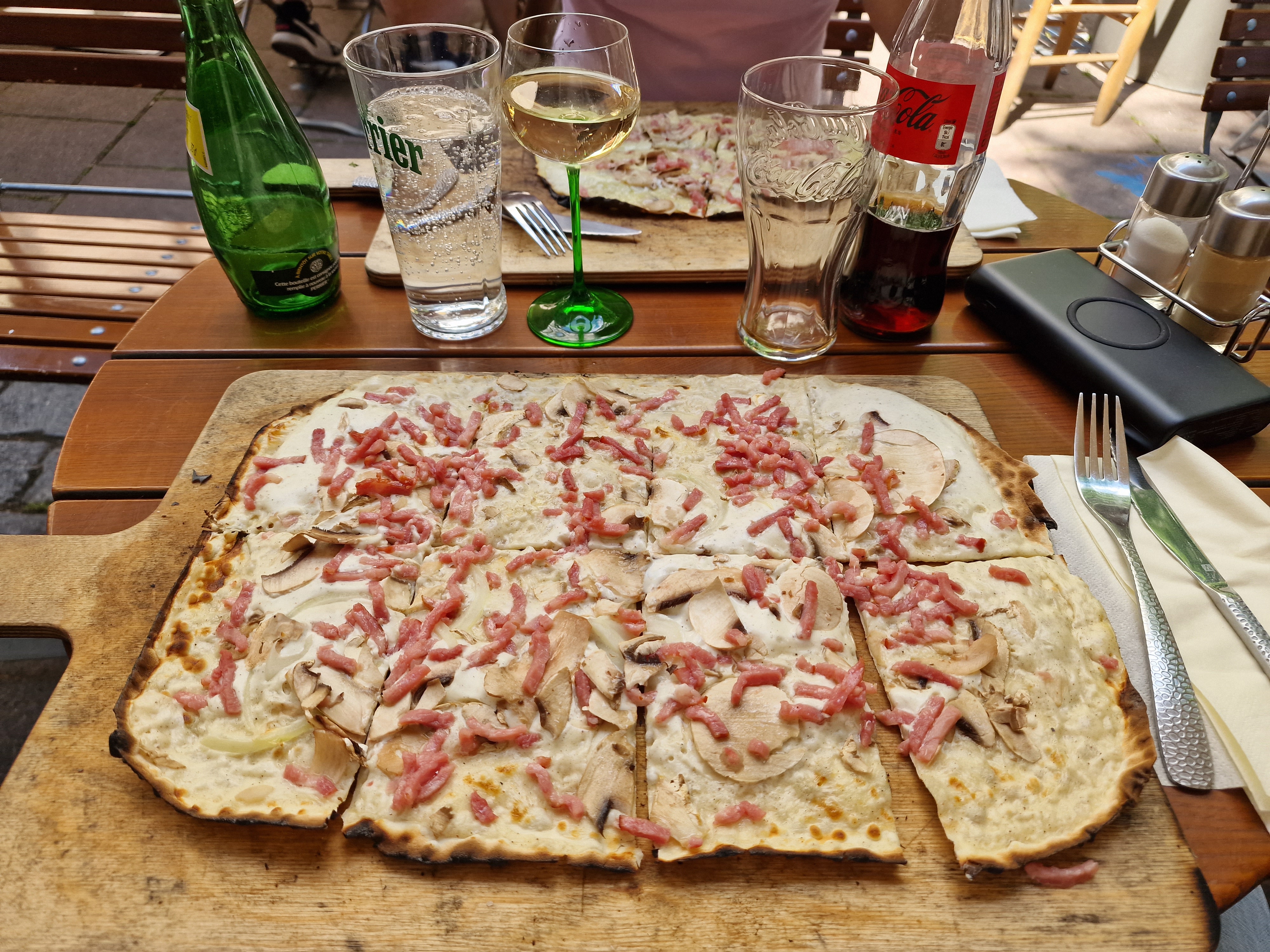 Établissement très populaire qui est parfois victime de son succès, il vaut mieux réserver en avance. Nous sommes venus sans réservation mais avons tout de même pu avoir une table (mais il n'y en avait plus pour les personnes juste derrière nous). Nous avons attendu pas mal de temps entre le moment où nous avons eu notre table et la première prise de commande mais après tout était fluide et rapide. Nous avons mangé des tartes flambées qui étaient bonnes.