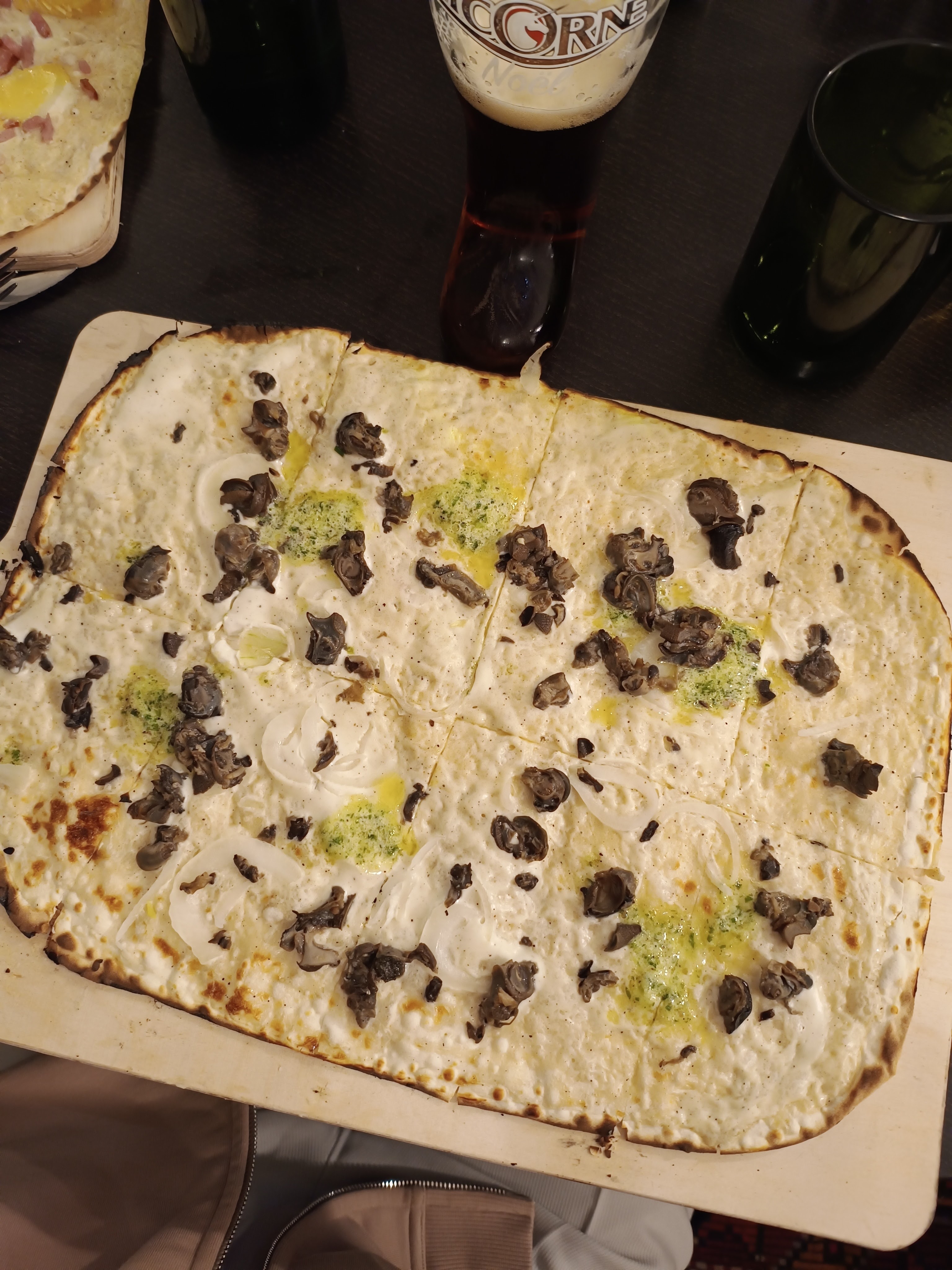 Excellentes tartes flambées ! J'ai adoré celle aux escargots qui était originale. La fondue alsacienne était très bonne également (les pommes de terre étaient fabuleuses). Merci à Bryan pour son service !