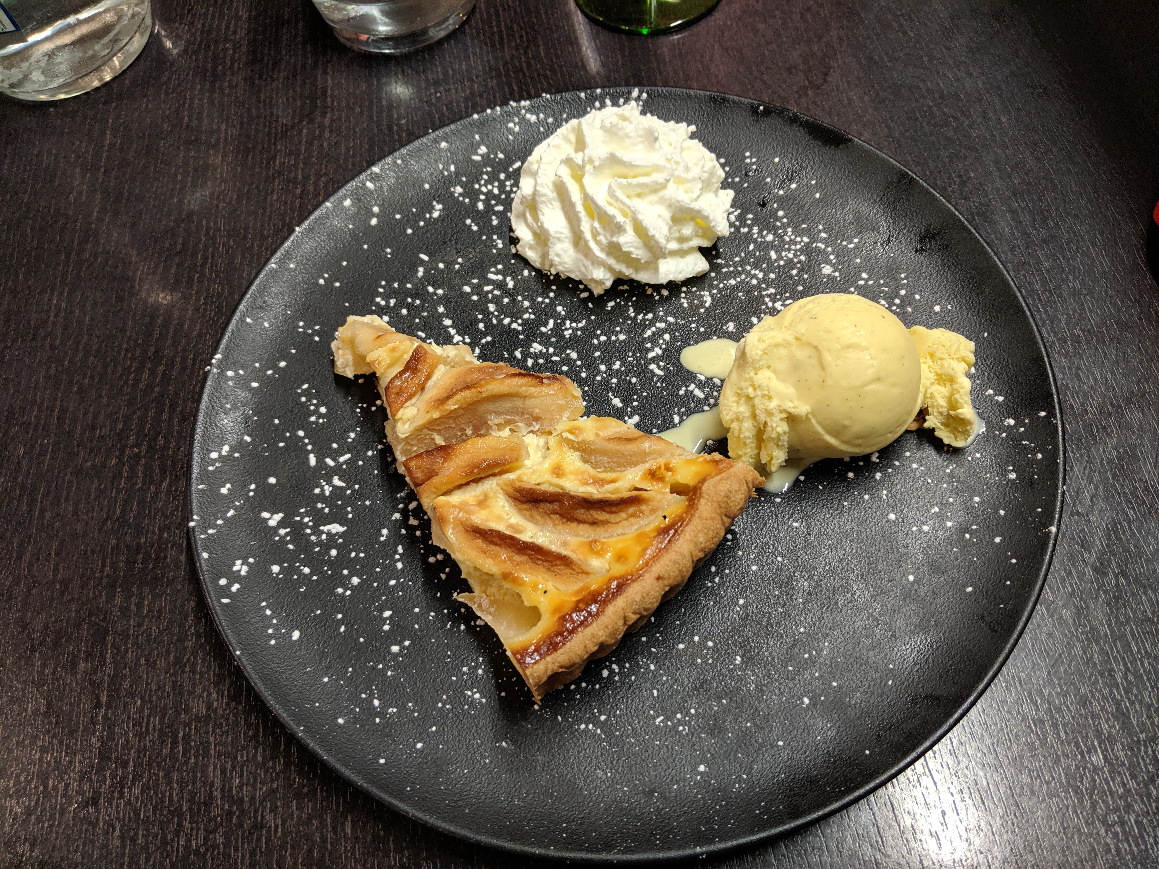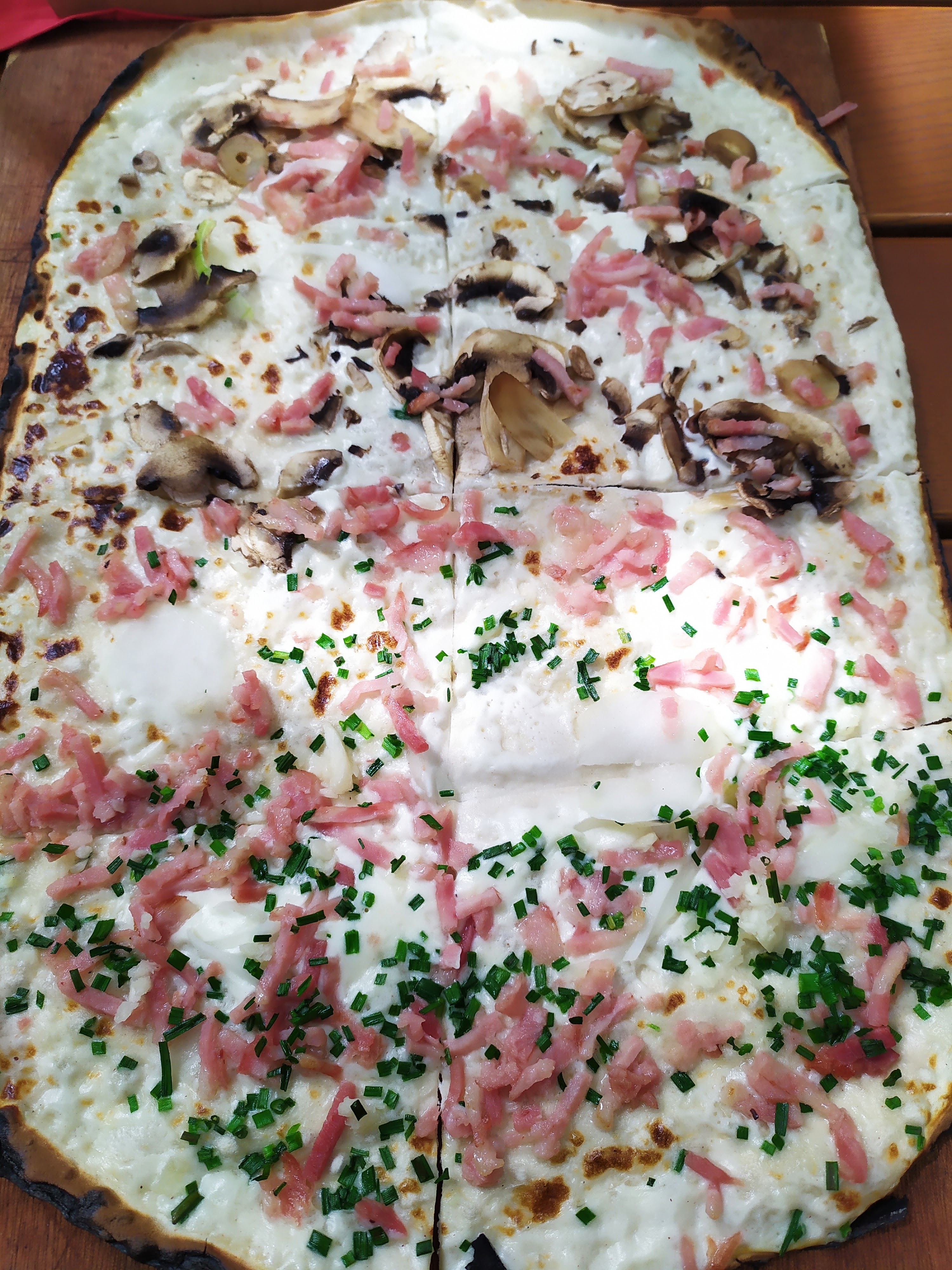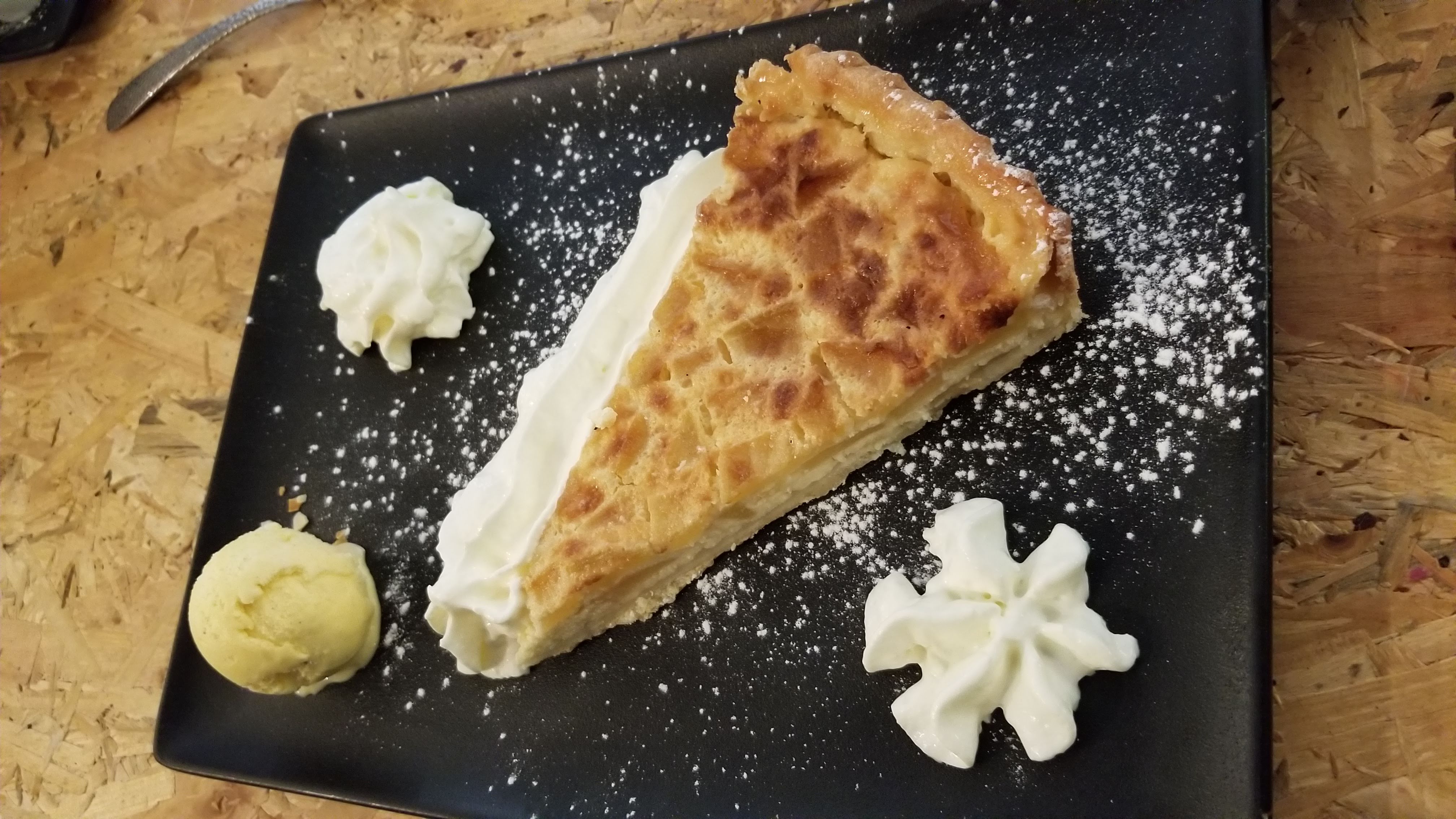 Très bien, j'ai fait un repas full flamenkuche : plat et dessert. Possibilité de prendre 2 demi flamenkuche avec des parfums différents pour tester c'est vraiment top. Et c'est copieux.
