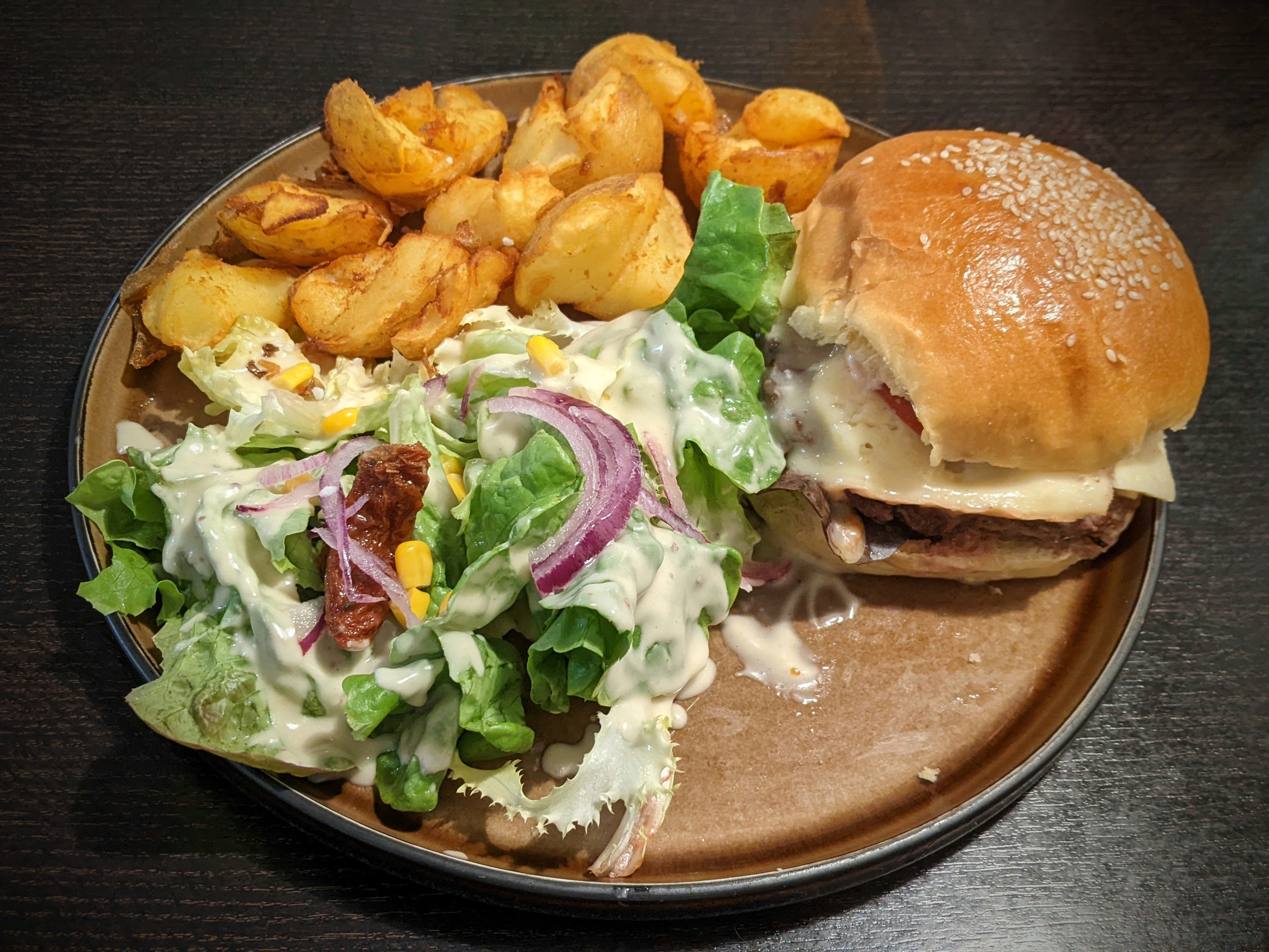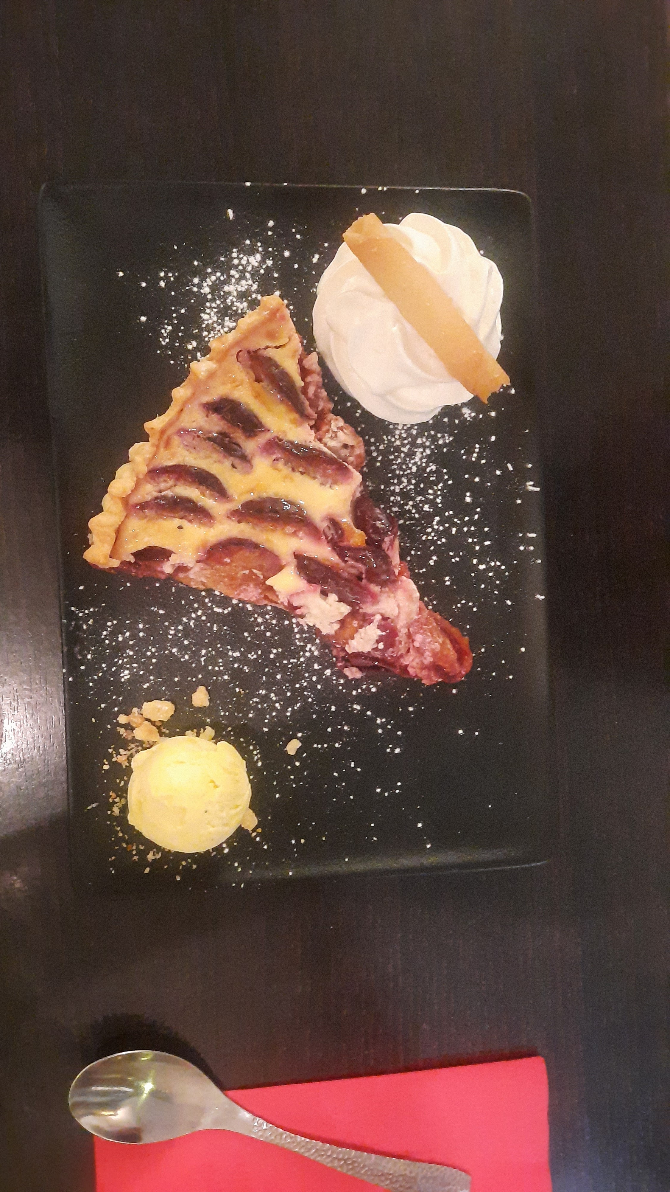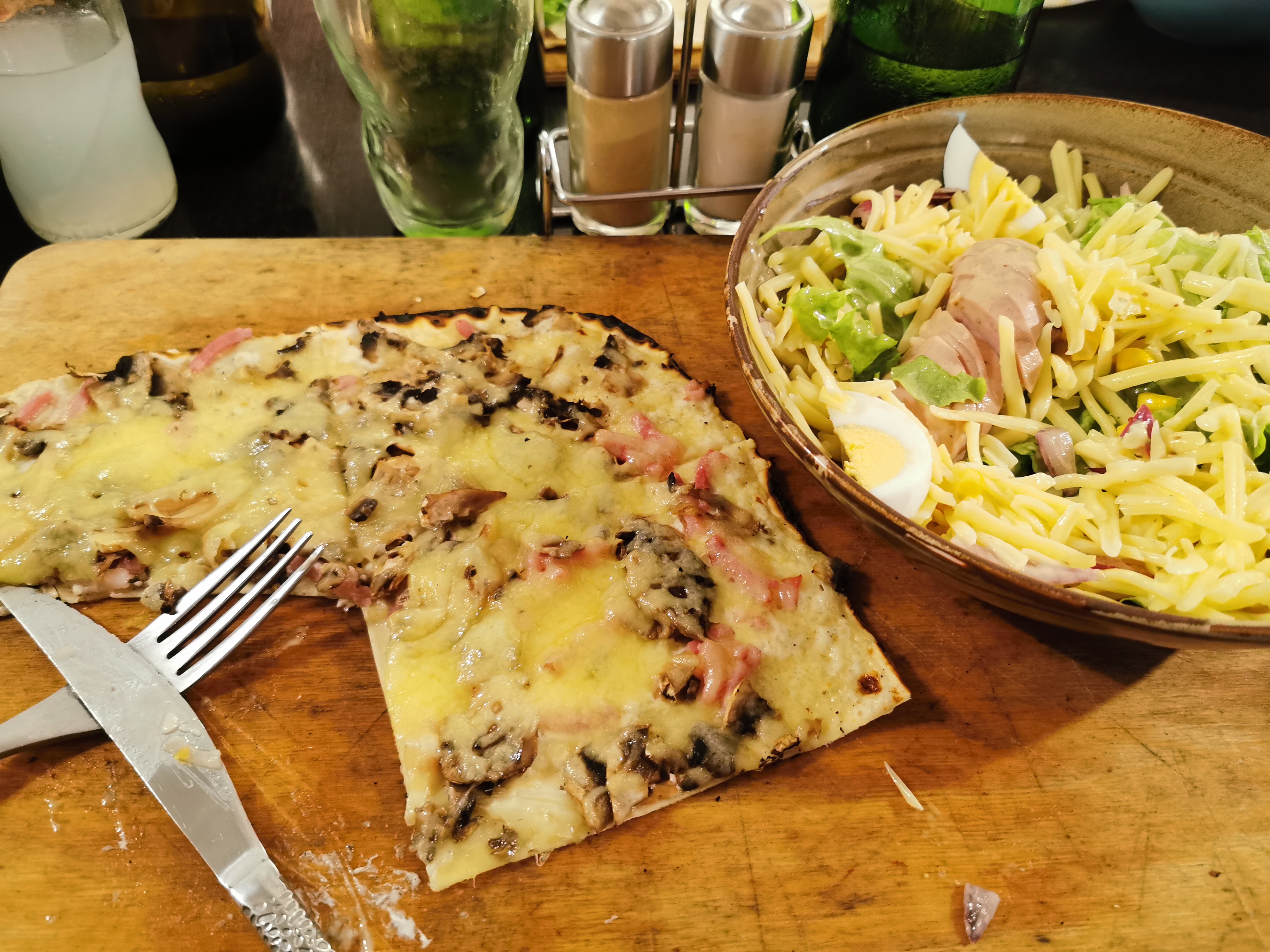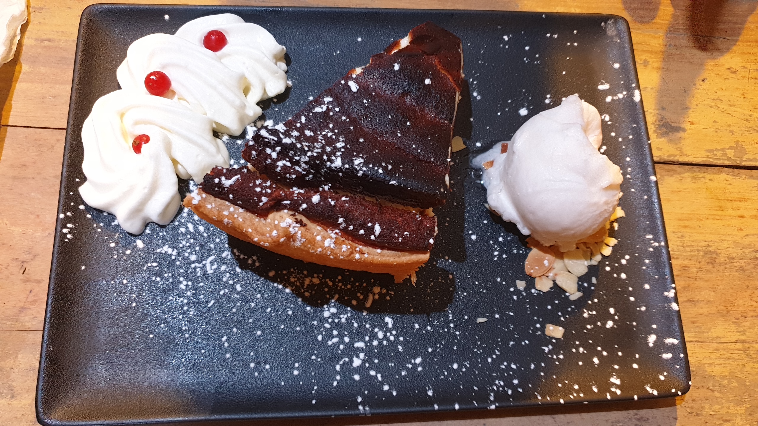 Très bien, j'ai fait un repas full flamenkuche : plat et dessert. Possibilité de prendre 2 demi flamenkuche avec des parfums différents pour tester c'est vraiment top. Et c'est copieux.